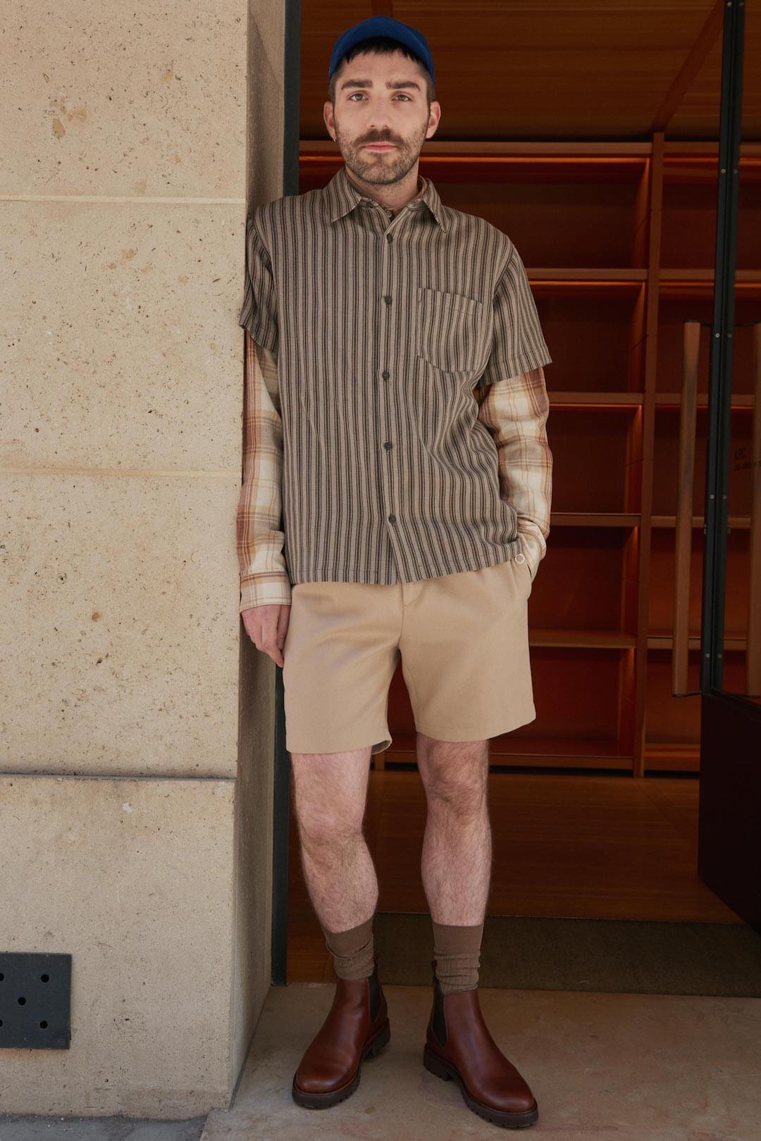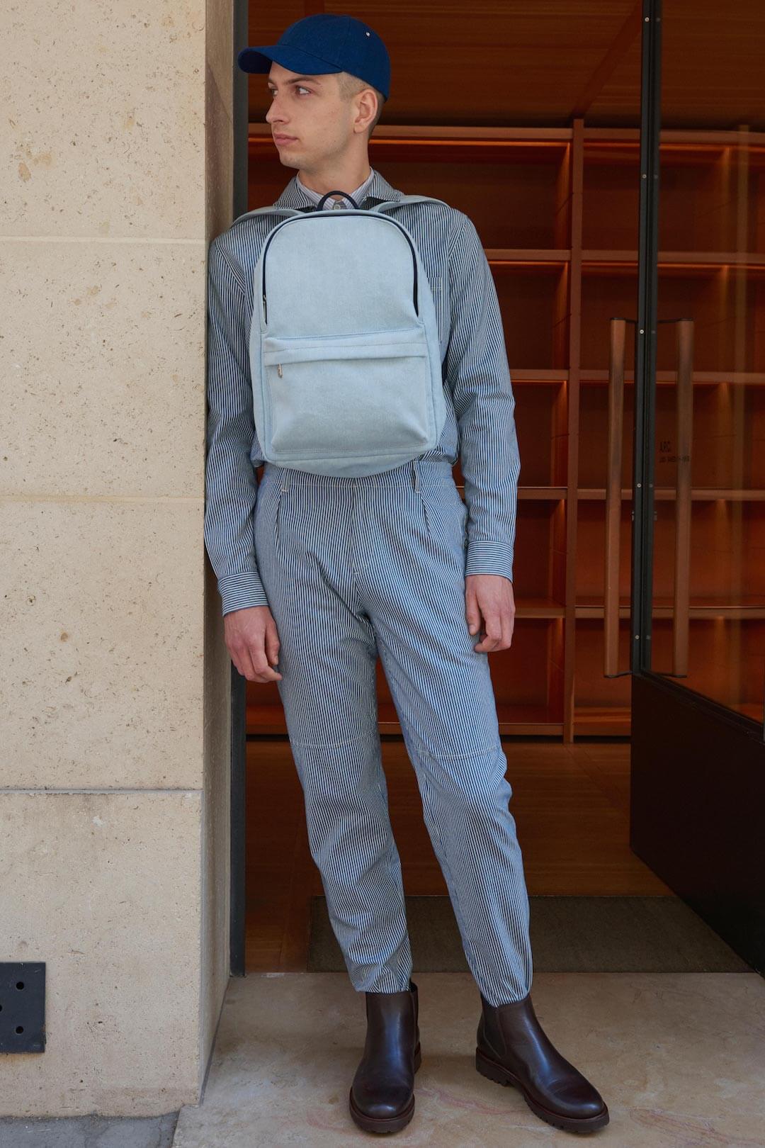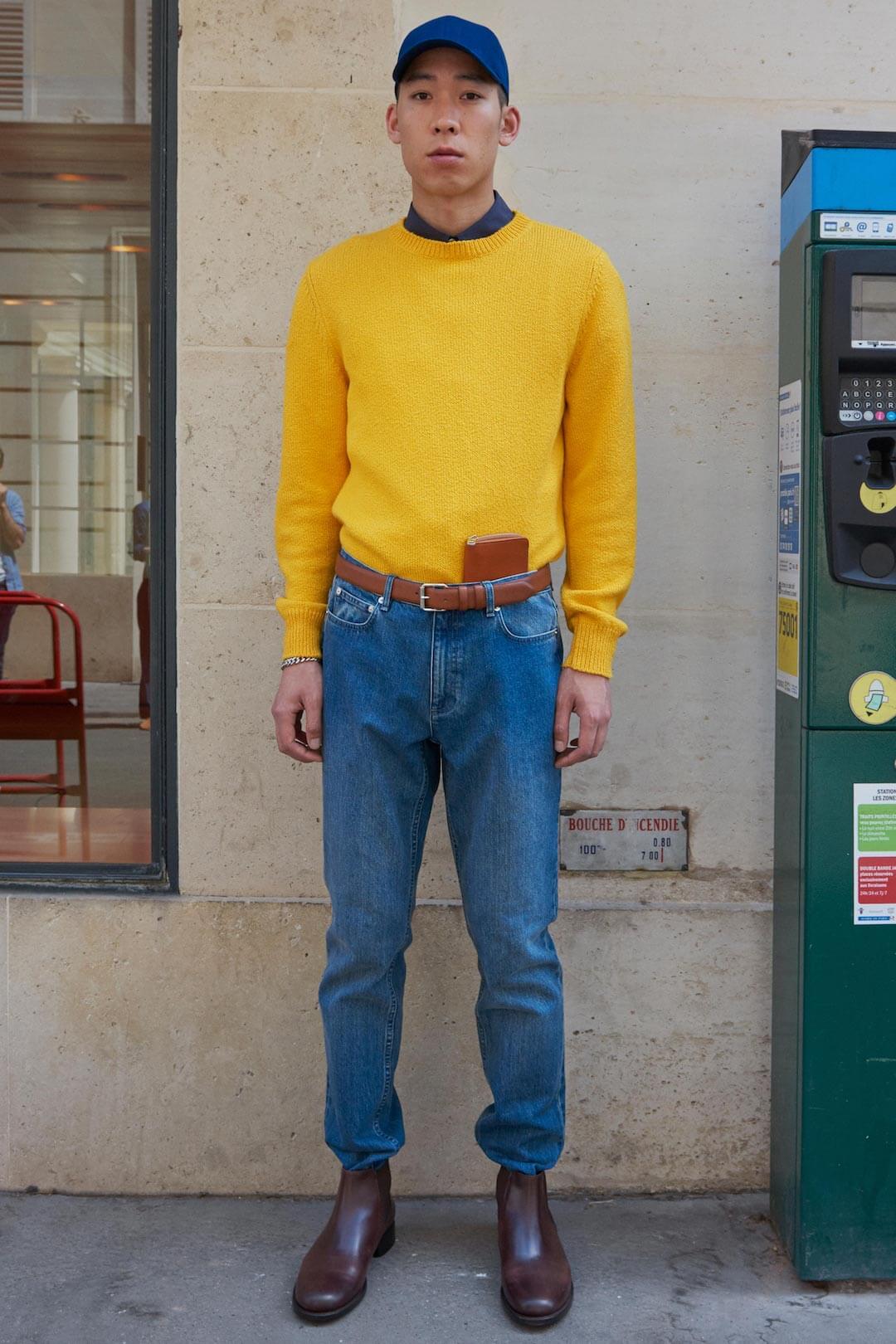 For his Spring 2018 collection, Jean Touitou brought the runway to him – more specifically, his A.P.C. store just off Rue Saint-Honoré in Paris. Smart. And the models? Who needs a casting agent when you have a shop full of strapping staff who know the clothes inside out? Also smart. Collection was smart too. Smart in the sense of scrubbed up, preppy. Edgy Ivy Leaguers? Shirts, some buttoned up to the top, sat under crew-neck knitwear or tucked into crisp, un-fussy tan trousers, sometimes with the aid of a belt, some with a wallet tucked into said belt.