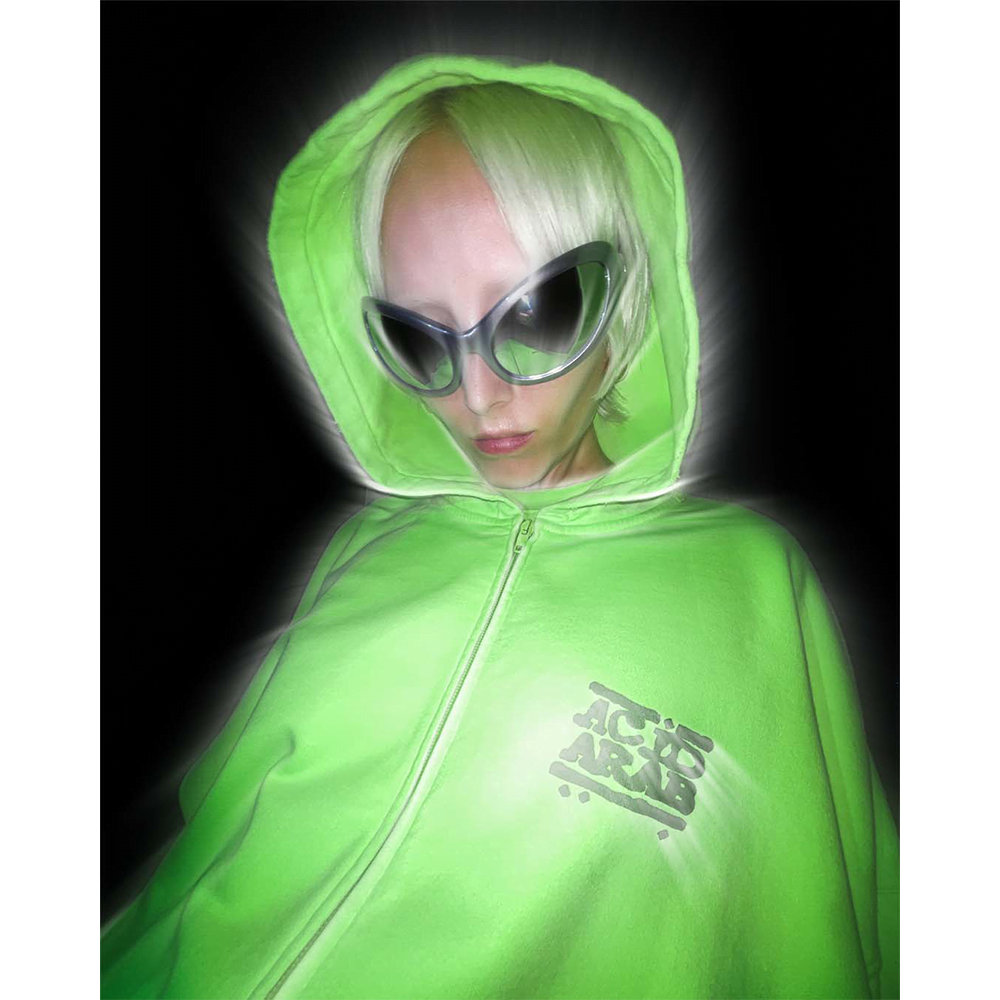 6. Why did the glowing, fluorescent green with simple prints and comfortable silhouettes feel like the right direction to go for the limited-edition Balenciaga x Acid Arab merch line associated with the collab?