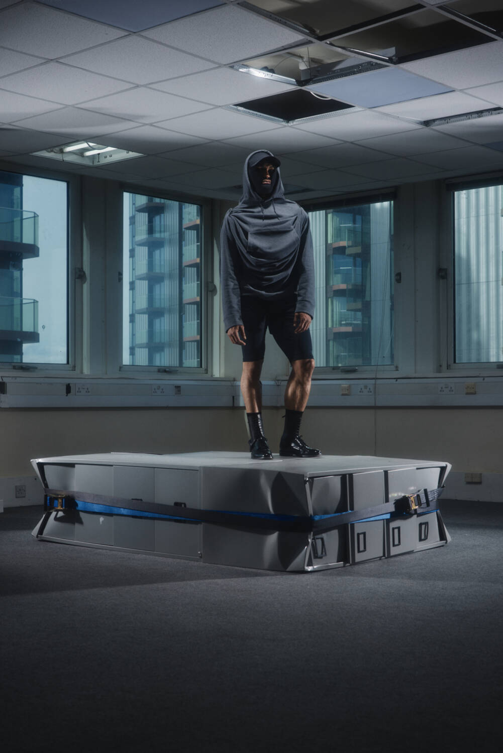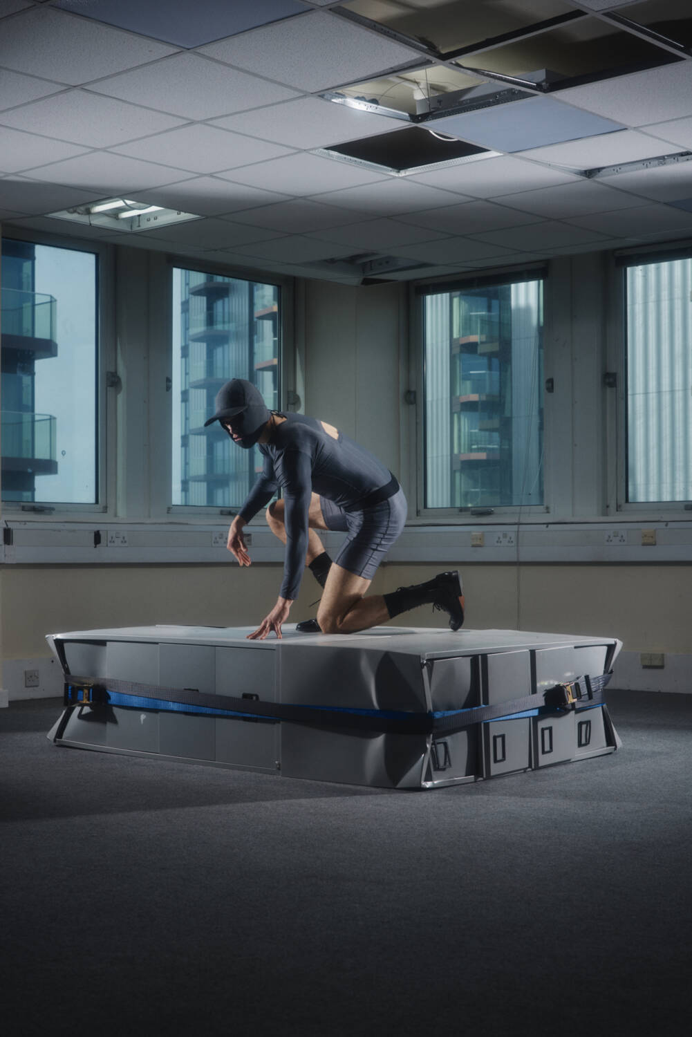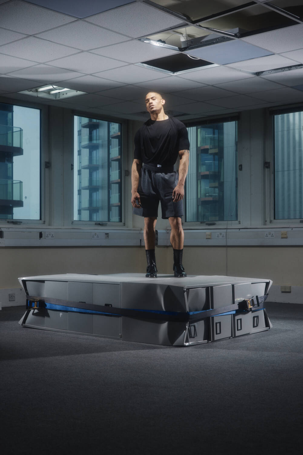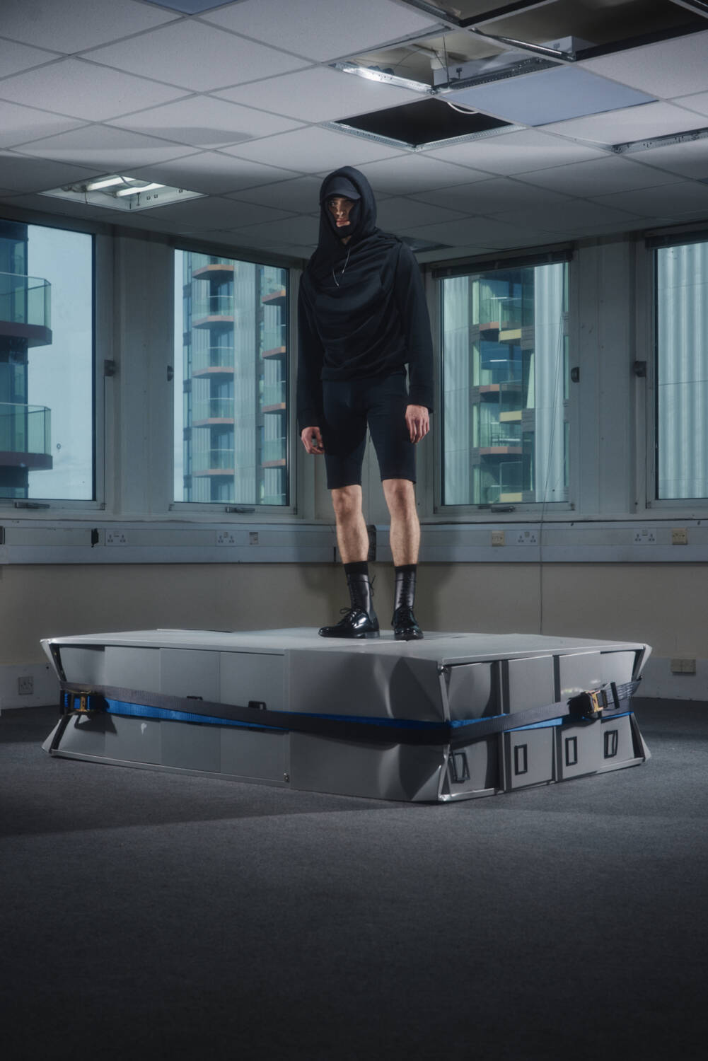 The lookbook, shot by 10 Magazine contributor Josh Hight, was the perfect visualiser for this. The unconventional SS25 silhouettes were backdropped by a starkly carpeted office space, seemingly abandoned, that narrated a tale of rigid conformity fighting against a playful sense of liberation. Across the board, the offering suggested a new uniform for the nine to fivers who long for absurdity in their everyday life, from the boardroom to the nightclub.