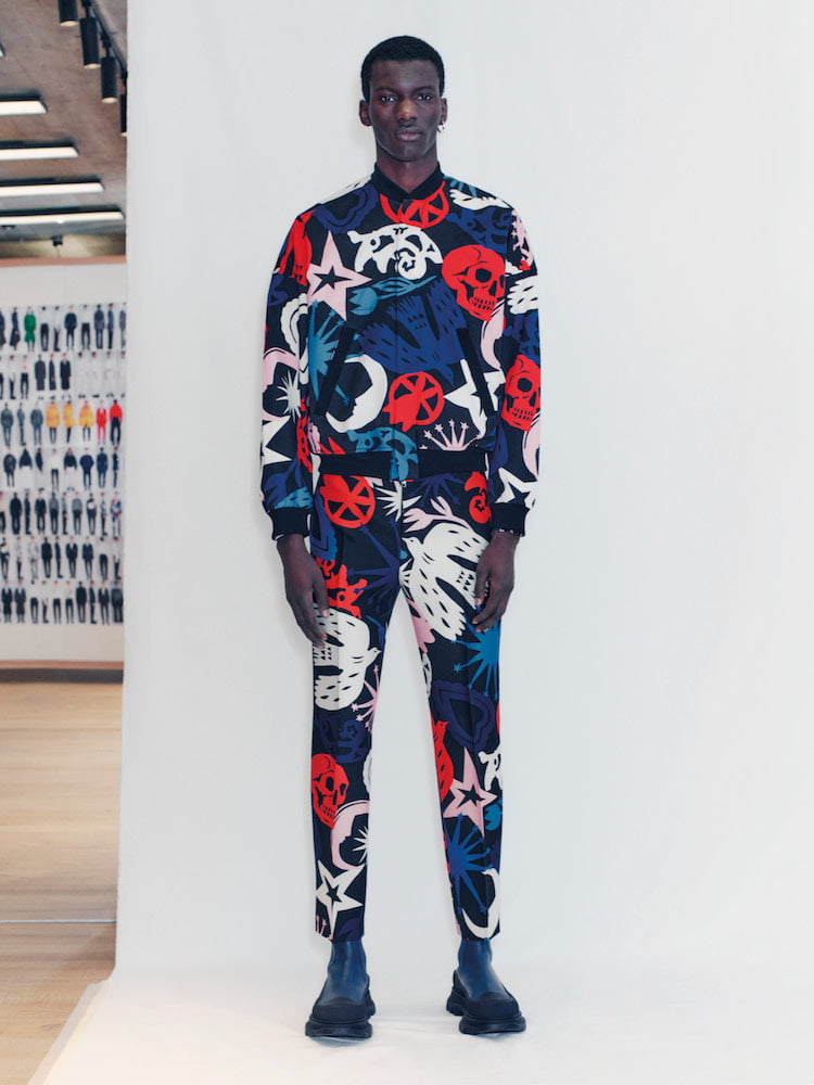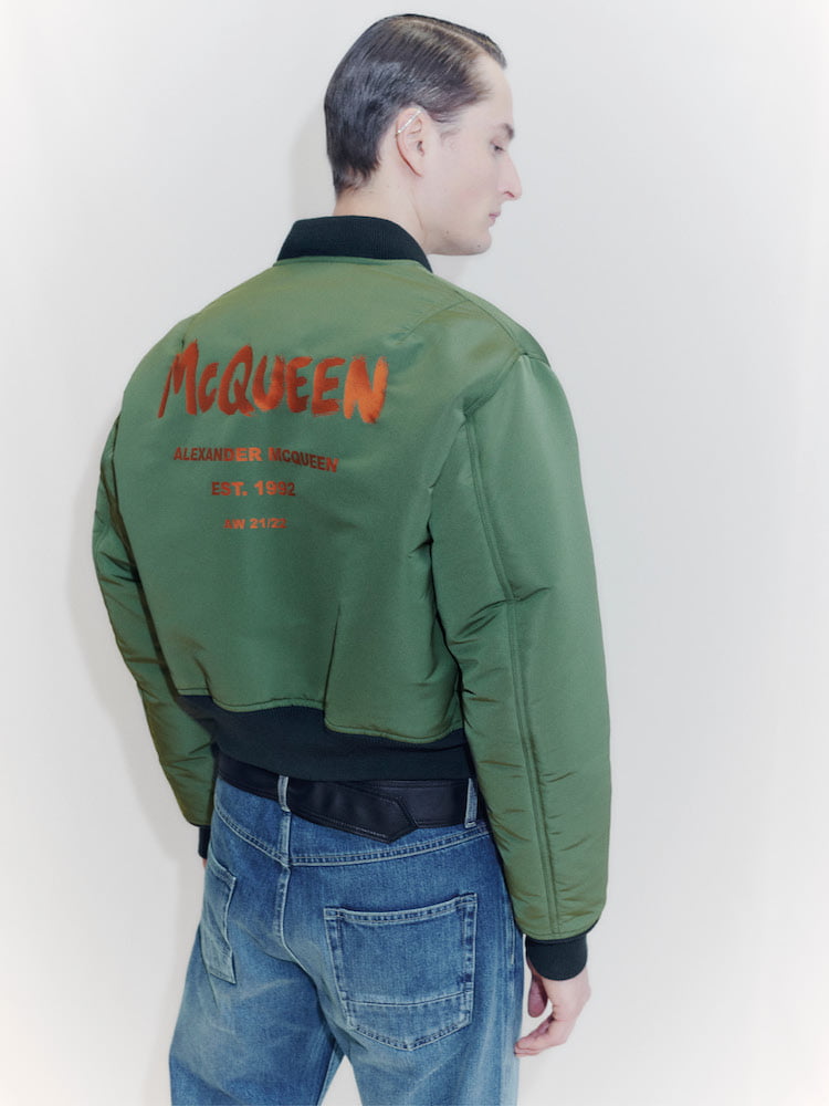 Similar to the brand’s pre-fall 2021 collection, which was unveiled last week, Burton has hybridised a cohort of looks, most notably a classic denim jacket merged with a khaki workwear jacket. As always, outwear is particularly strong, with a cropped MA1 bomber stamped with a graffitied “McQueen” on the back proving to be a collection highlight. For those looking to dress up and show off once we’ve unleashed out into the normal world again, a Klein blue twinset is your best bet, which comes with a matching crossbody bag, too. Au revoir loungewear, you won’t be missed.