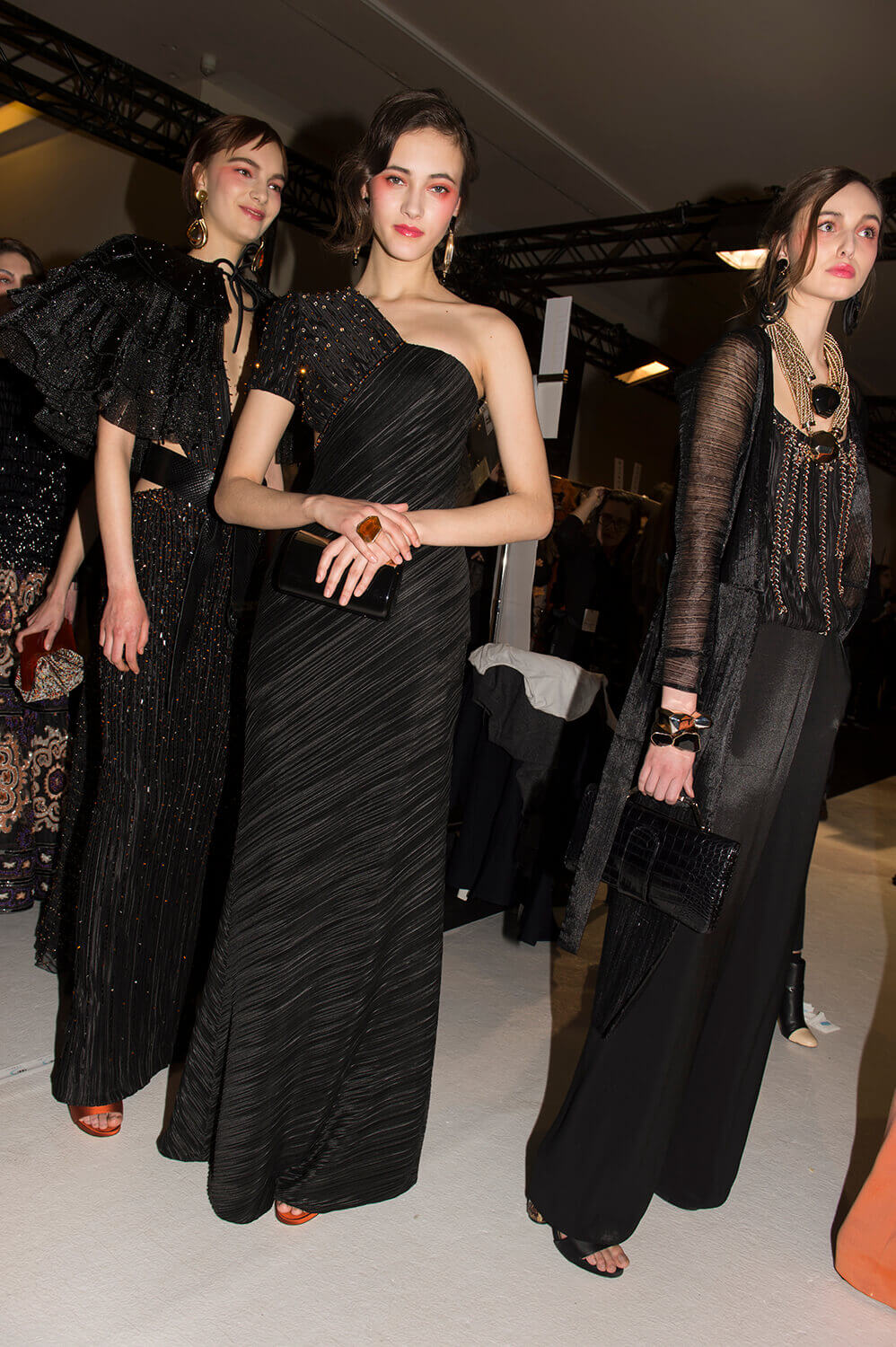 To quote those really quite annoying adverts that used to come on just before a film in the cinema: the future’s bright, the future’s orange. They, of course, were referring to the mobile phone network, but here, we are referring to Mr Armani’s latest Armani Privé offering. Which, unlike those, was neither annoying, nor has anything to do with mobile telecommunications. But it was certainly orange. Glorious, glorious orange, in shades of – let’s call it Moroccan sunset. A declaration, once and for all, that he’s not just the master of greige. Talking of Moroccan, there was something of the world traveller about this. Jet-set, first class passenger obviously – wide-leg silk trousers, almost kaftan-esque gowns, touches of animal print, all combined with the treasures she might find there – shimmering crystal bibs, chunky jewellery. And, as it unfolded it became a bit of a world tour – a shimmering jacket with Eastern-style buttoning sat next to flamenco frills, embellishments that veered towards Indian and, naturally, a touch of the Italian Amalfi-coast gentlewoman. Tis’ Armani, after all. To finish, a selection of gowns to get those couture customers on the front town applauding – delicious concoctions of plisse pleats and incredible, rich embellishments. How do you say more, more, more in Italian?