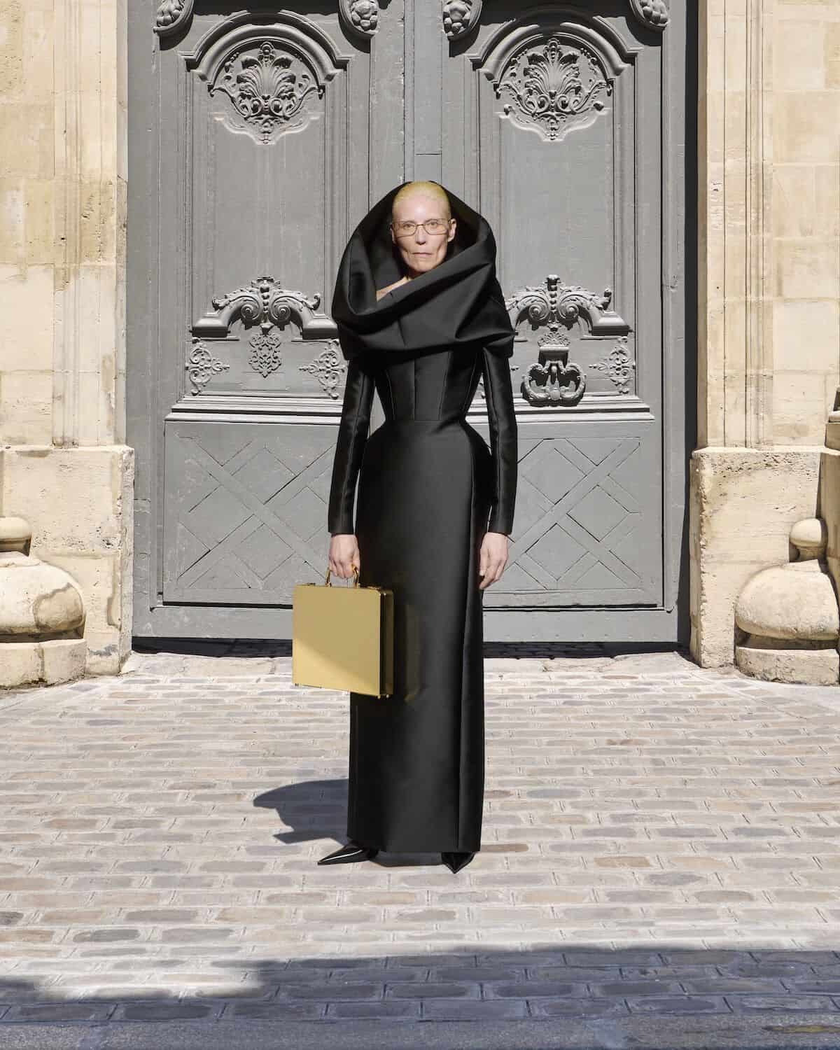 It feels apt, though, that the boundary-shattering designer – whose collections have continuously challenged the notions of luxury with a wink and a nudge, celebrating style born on the street with blazing, uncompromising glory – chose to close his chapter at the house in a quieter setting, inside the confines of the maison’s couture salon at 10-12 Avenue George V. It was Demna, after all, who resurrected the house’s couture studios in 2021; the first designer to pick up the mantle from Cristóbal Balenciaga himself, who shuttered his couture salon in 1968. He stripped back the salon’s exterior, dirtying its white walls and laying down a greyed carpet as if the space had been untouched since Cristóbal’s departure, like Demna was picking up where the couturier had left off.