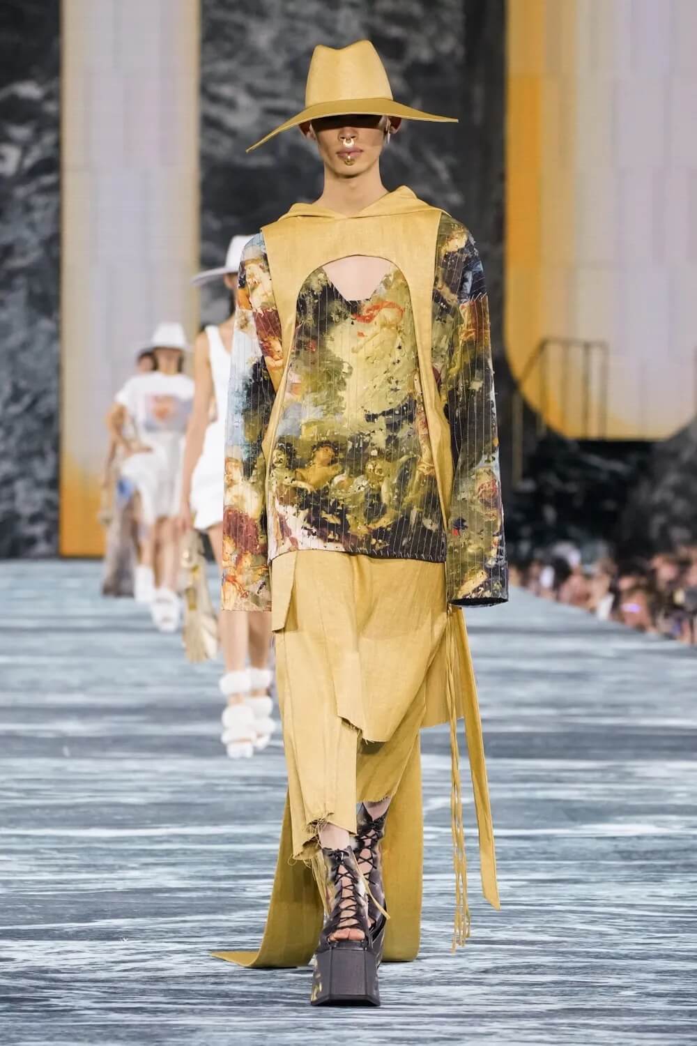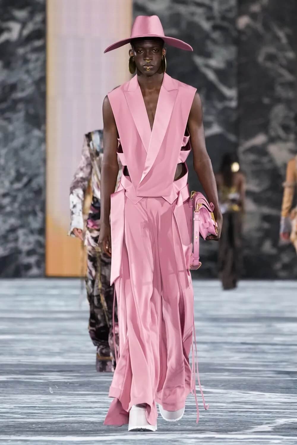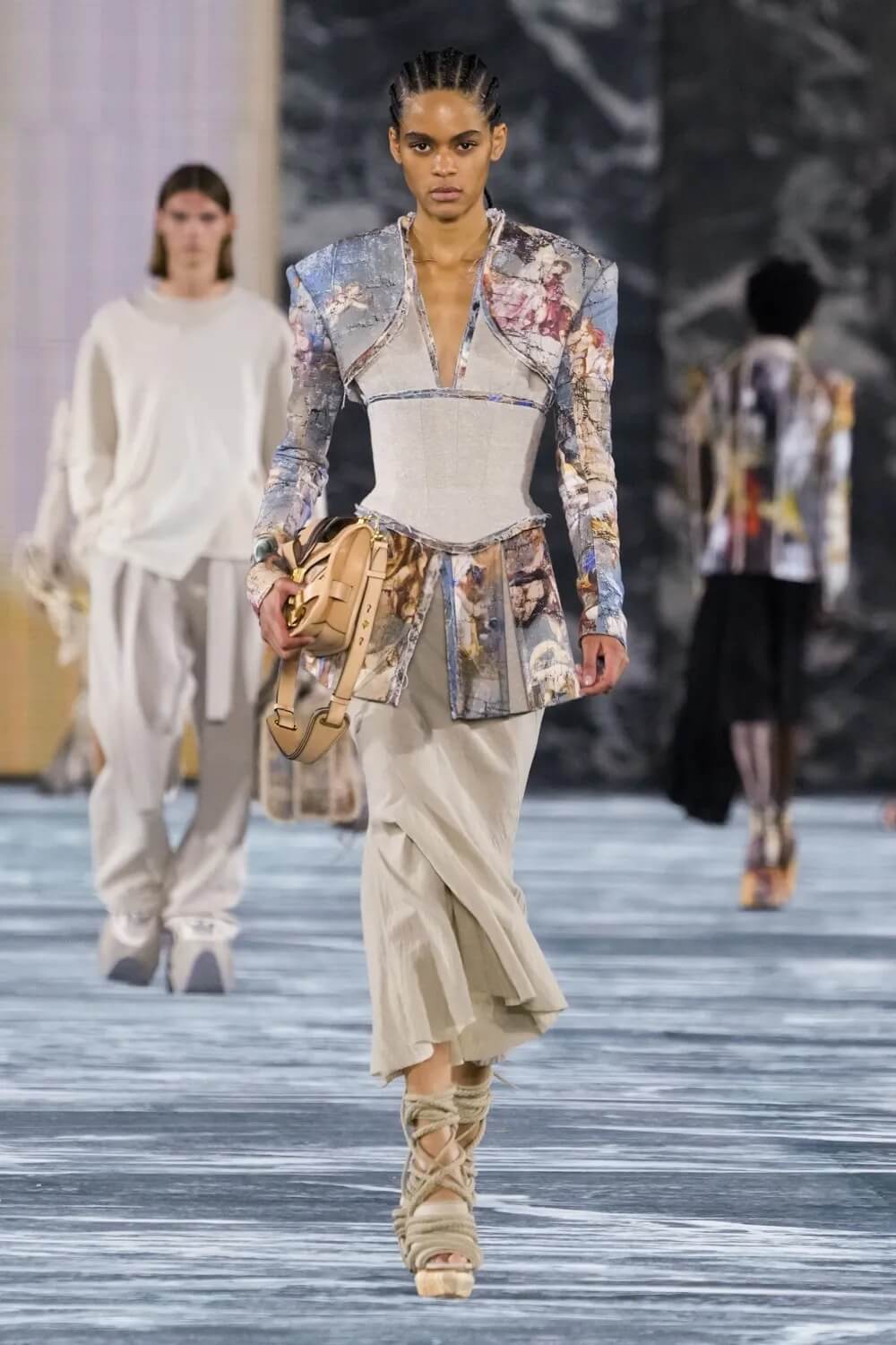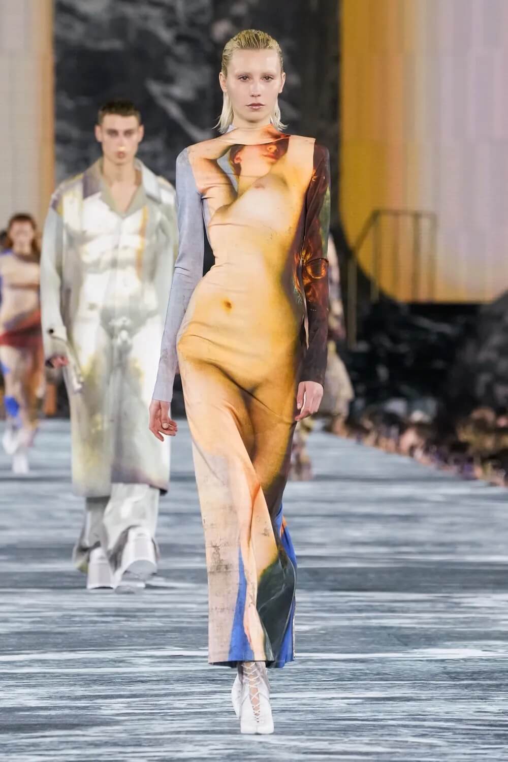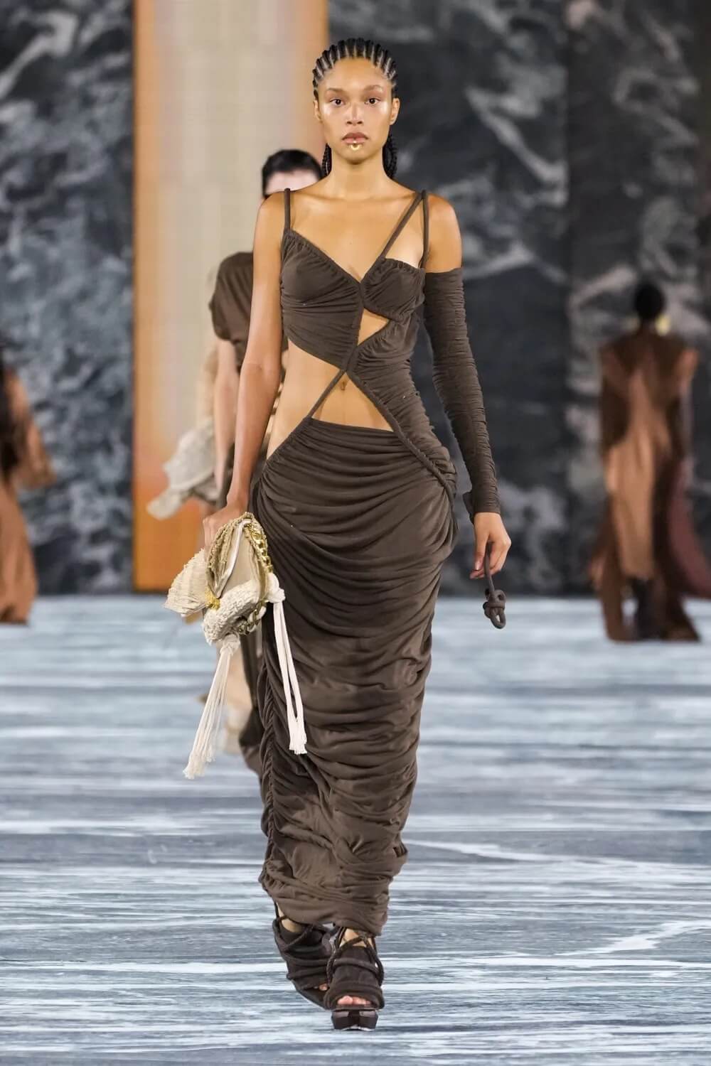 The designer played also with Renaissance motifs for stretch jersey tube and corseted dresses. It was a time in human history when an explosion of progressive thought changed society and Rousteing suggested we need a new renaissance to survive the climate crisis.