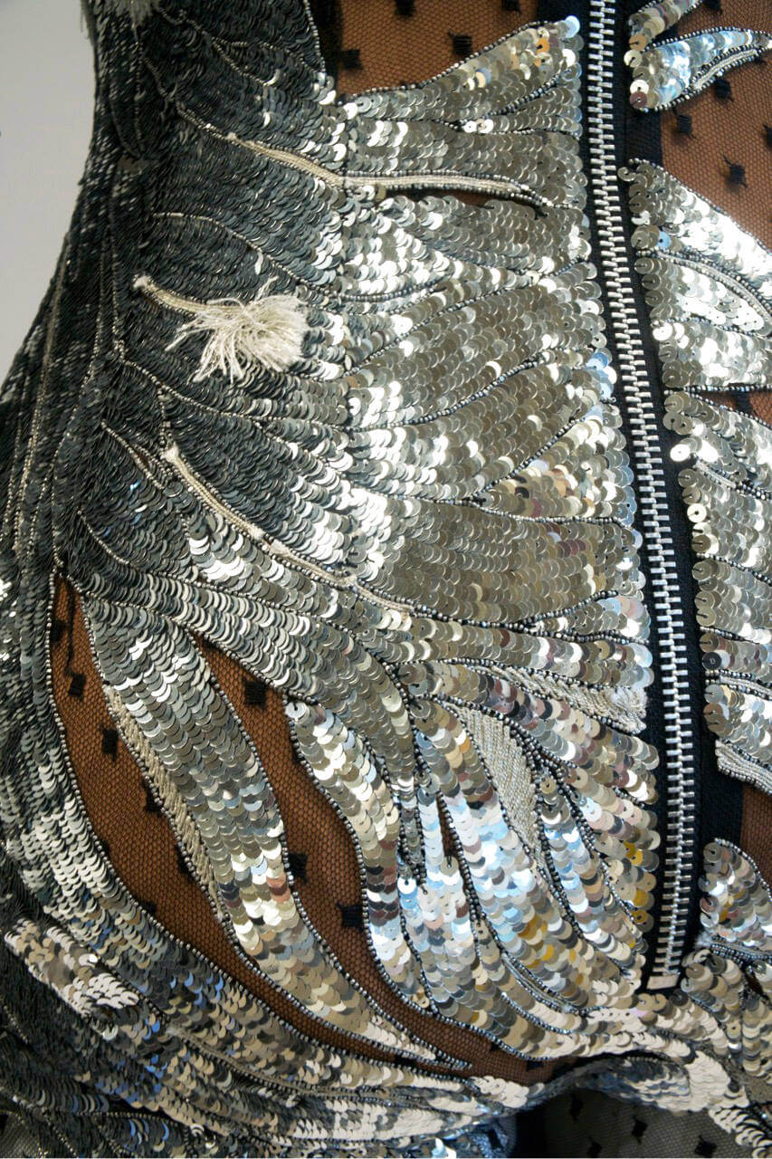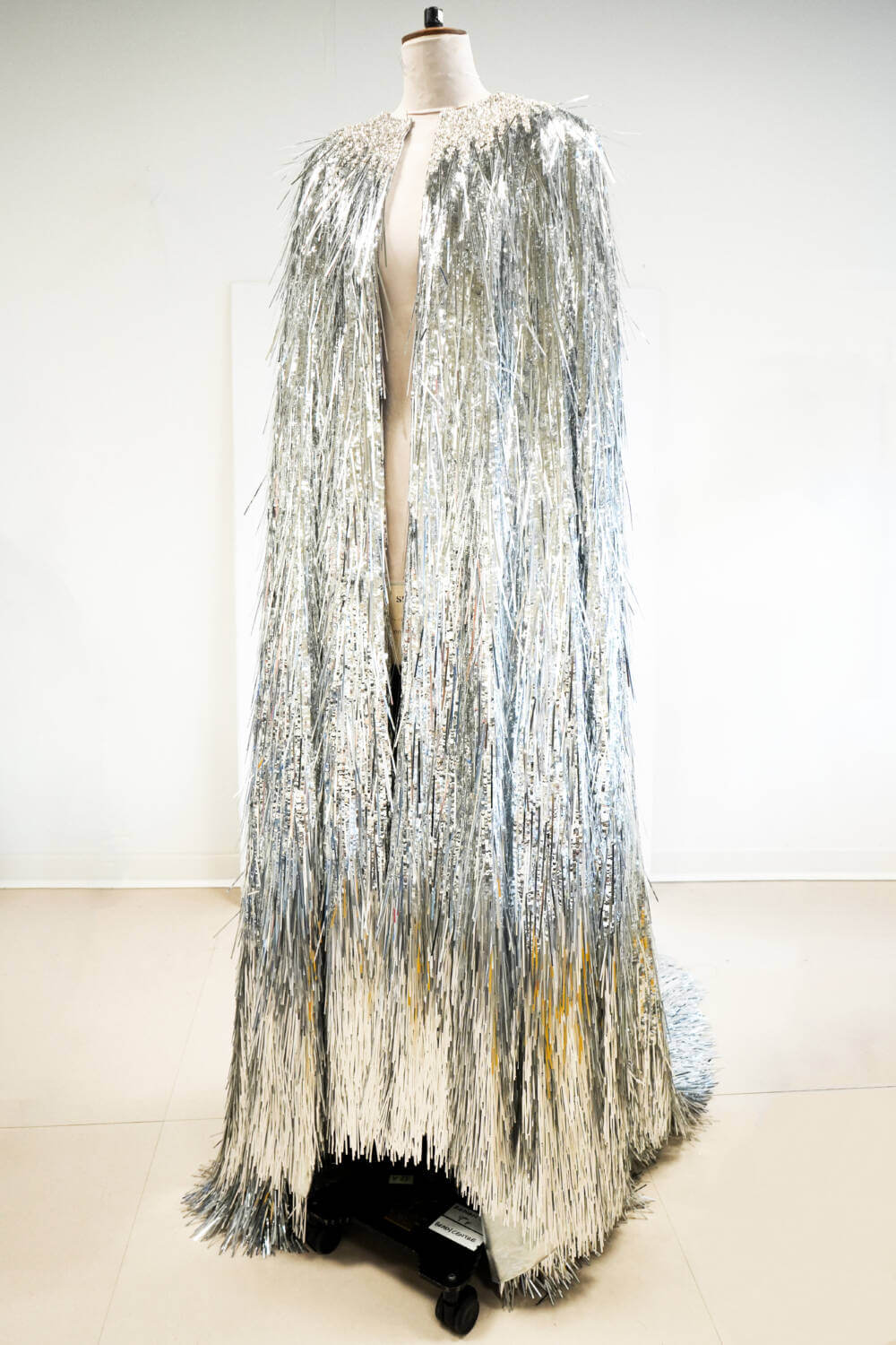 Beyonce’s no stranger to wearing Alexander McQueen on tour. Her 5 nights in Londo included a red minidress inspired by a look from the brand’s AW23 collection. Later in Nashville, she opted for a lustrous silver bodysuit, complete with matching gloves and thigh-high boots. And most recently in Chicago, Beyoncé wore a tulle catsuit that featured a sequin horse – a nod to the Renaissance album cover. When it came to her New York City stop, the team knew they had to go big. Taking a cue from Beyonce’s Chicago outfit, the atelier opted to highlight the horse motif again. Consisting of hand sewn sequins and faceted beads, each panel was laid flat and checked against the pattern before assembly. To finish it off, the brand made a dramatic floor length cape consisting of silver shard sequin embroidery .