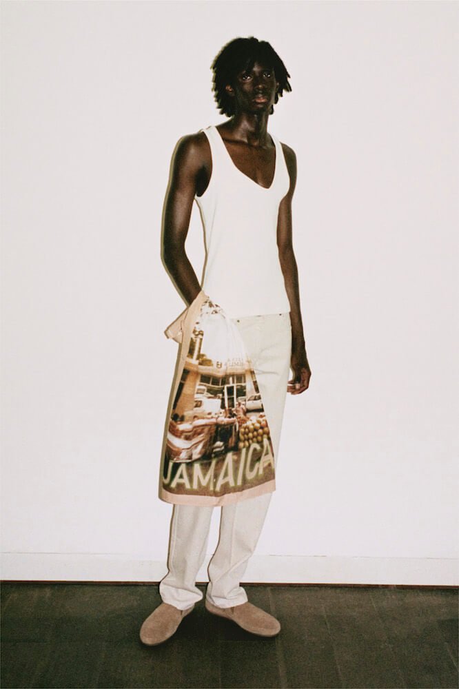 For London-based menswear maven Bianca Saunders, tapping into her Caribbean roots has often been a source of inspiration for her collections. Yet her SS22 offering could be her most personal yet. In her first outing since bagging the ANDAM award, a prize previously won by the likes of Martin Margiela, Anthony Vaccarello and Marine Serre, Saunders was drawn to a series of photographs her mother took on a trip to Jamaica when she was 18. The designer was particularly fascinated by the way casual wear and tailoring became morphed into one handsome look, where vibrant hues of green and blue punctuated through the film camera grain.