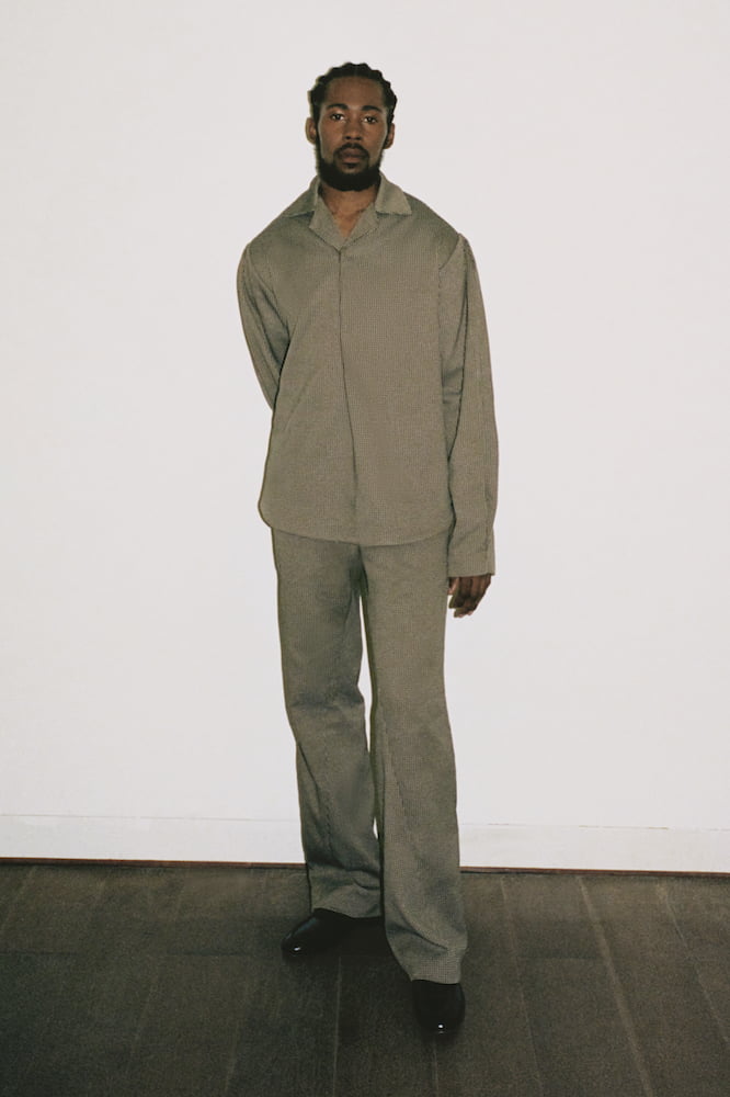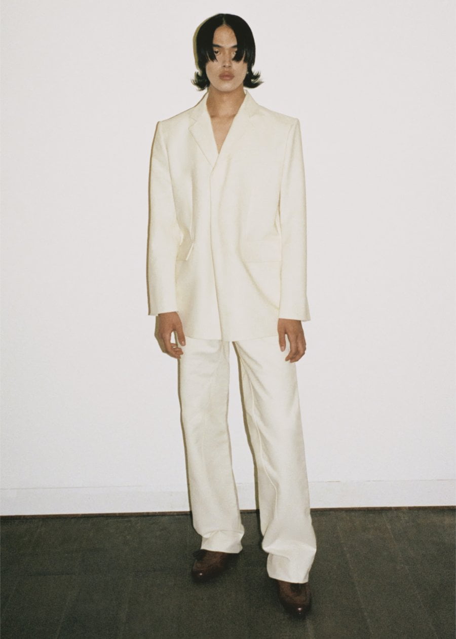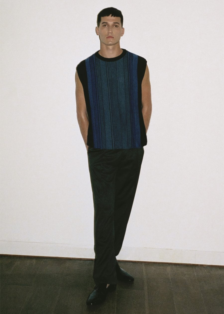 Saunders turned her eye to muscle men, too, crafting distorted prints which look as if they’ve been stretched across chiselled pecs, and cutting arms in a curved motion like they would circle muscly biceps. It’s another solid collection from Saunders, who is cementing herself as one of London’s brightest names. And with a more personal turn, with a collection modelled here by her own brother and cousin, we’re getting a clearer view into the world Saunders desires to create. What a wonderful place to be.