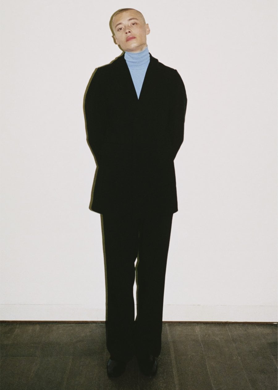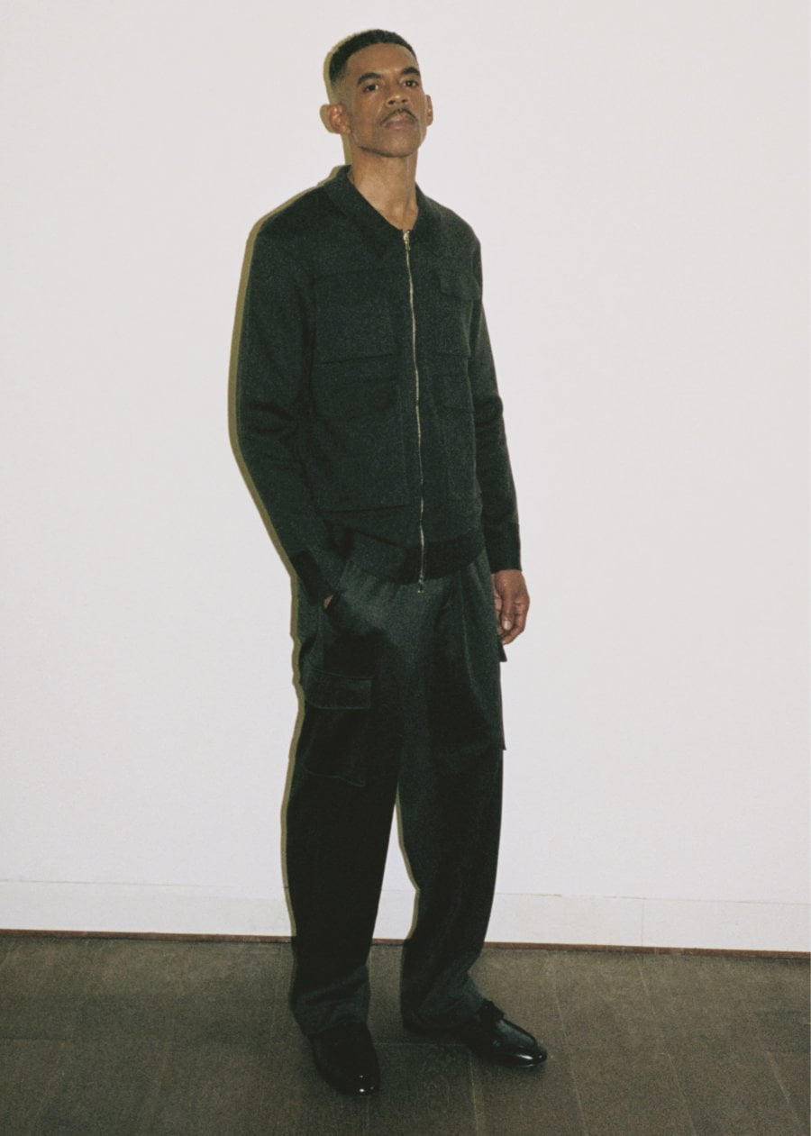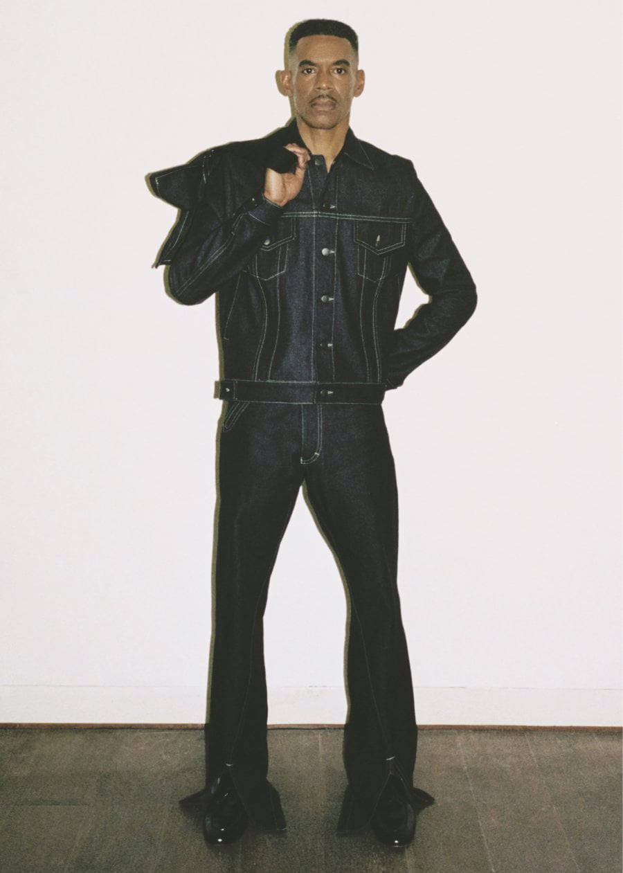 In response, she adapted her traditional twisted shapes and silhouettes. Gone are crinkled office shirts and ruched trousers, making way for pullover jackets and polo shirts that can be put on with one swift movement. This season the brand works in viscose, lightweight cotton and upcycled indigo denim courtesy of an ongoing collaboration with ISKO, also working alongside Farah to create a wardrobe that can be worn all summer long.