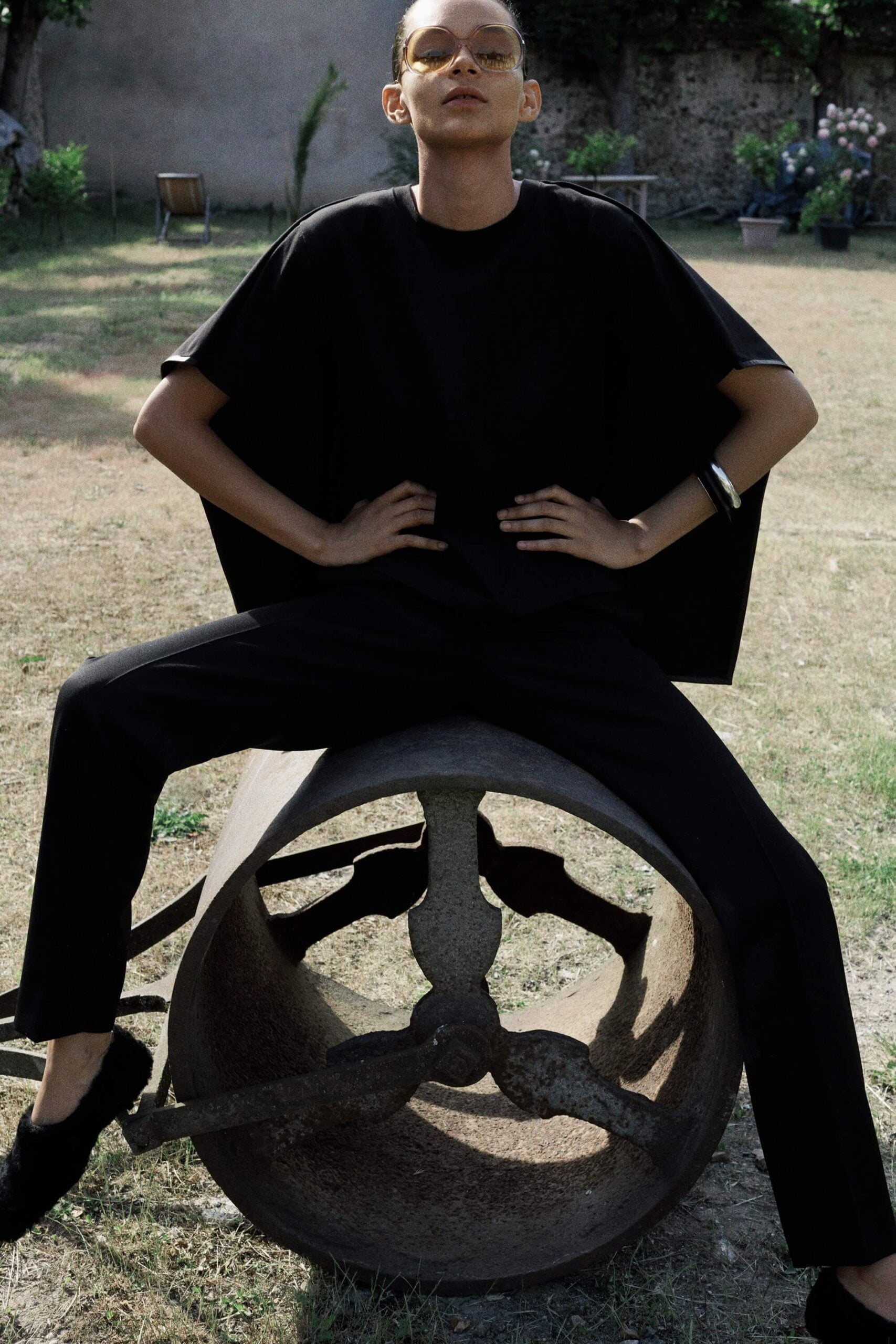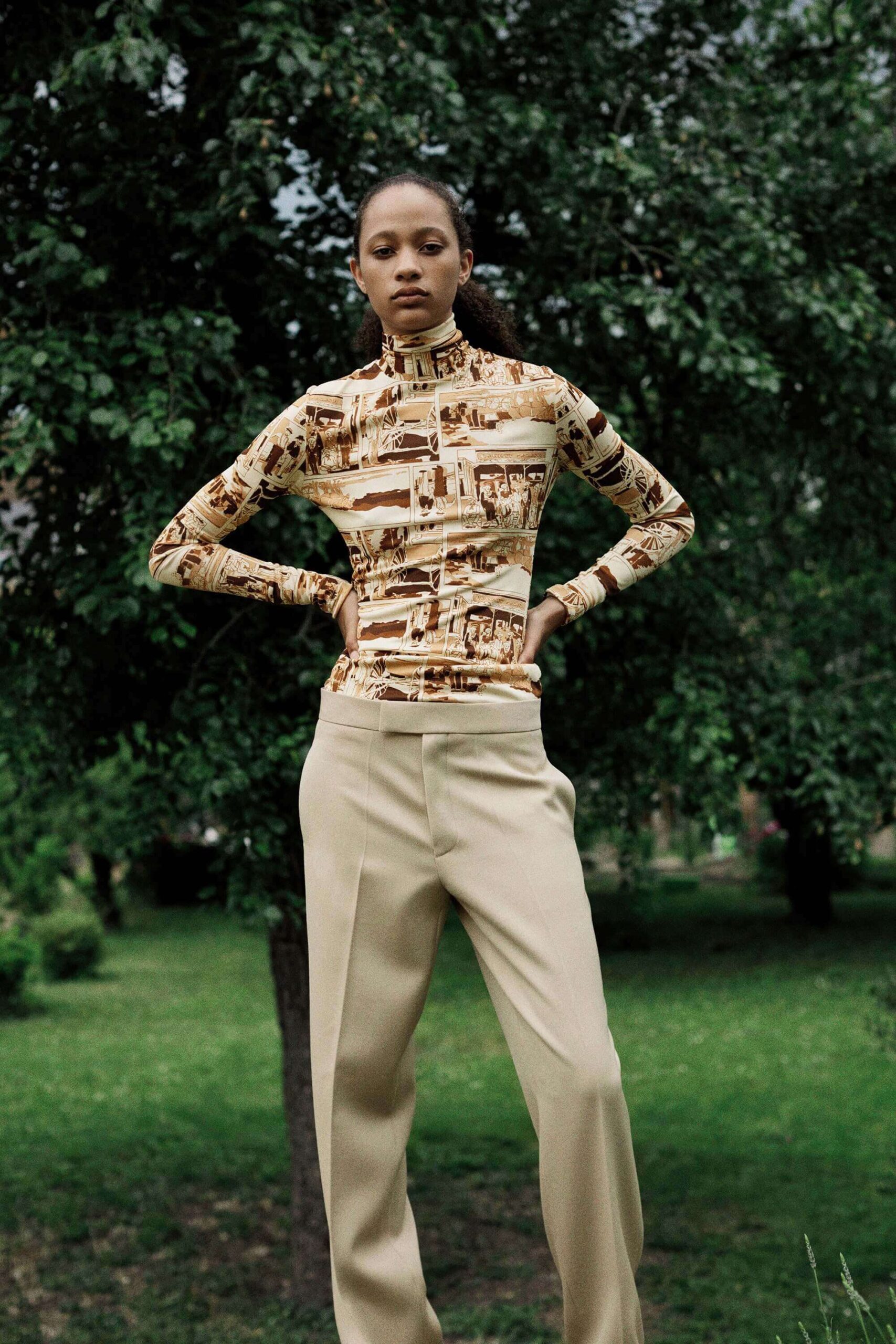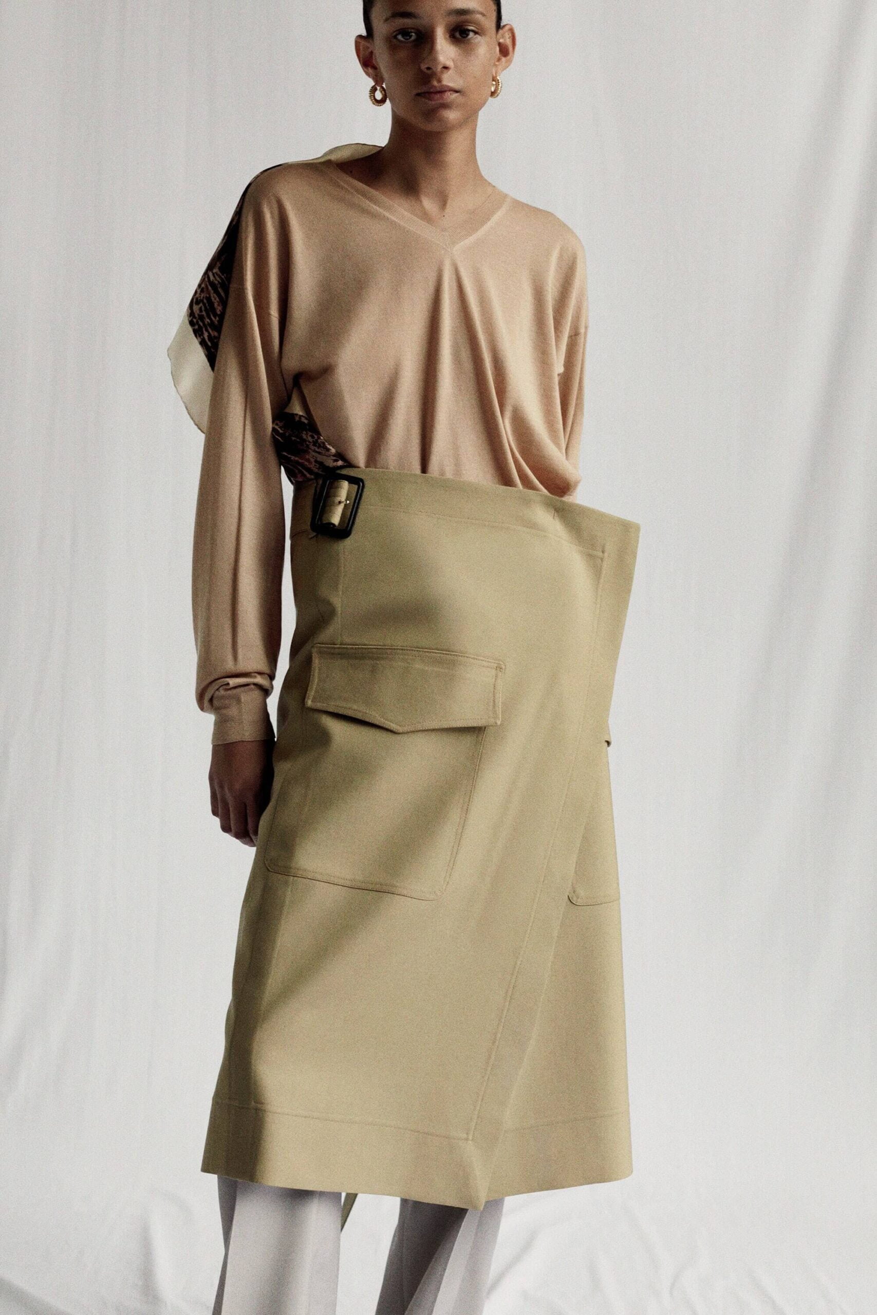 We would start this by discussing the rumours that a certain Ms Philo is leaving the Céline building but we won’t go there because, quite frankly, the thought is making us far too emotional. And besides, we have an entirely new Resort collection to paw over above, which is an entirely nicer thing to think about. So on with that. Where do we start? Stop me if you’ve heard this one before – these are clothes that women want. We know we bang on about it but it really is Phoebe’s unnerving talent to predict exactly what we want to wear next season. It’s chic. Tailoring that literally makes your stomach flop in a I-think-it’s-love kind of way. Grandma-y printed turtle-necks made totally modern. Even sexy. Slinky negligees, draped jersey dresses, lots of very good, roomy bags. But it’s look two in particular that I can’t quite stop thinking about – a shearling coat with knit collar and pockets so fuzzy, so fabulous we can’t imagine life without it. Like, really. We NEED it. We might die without it.