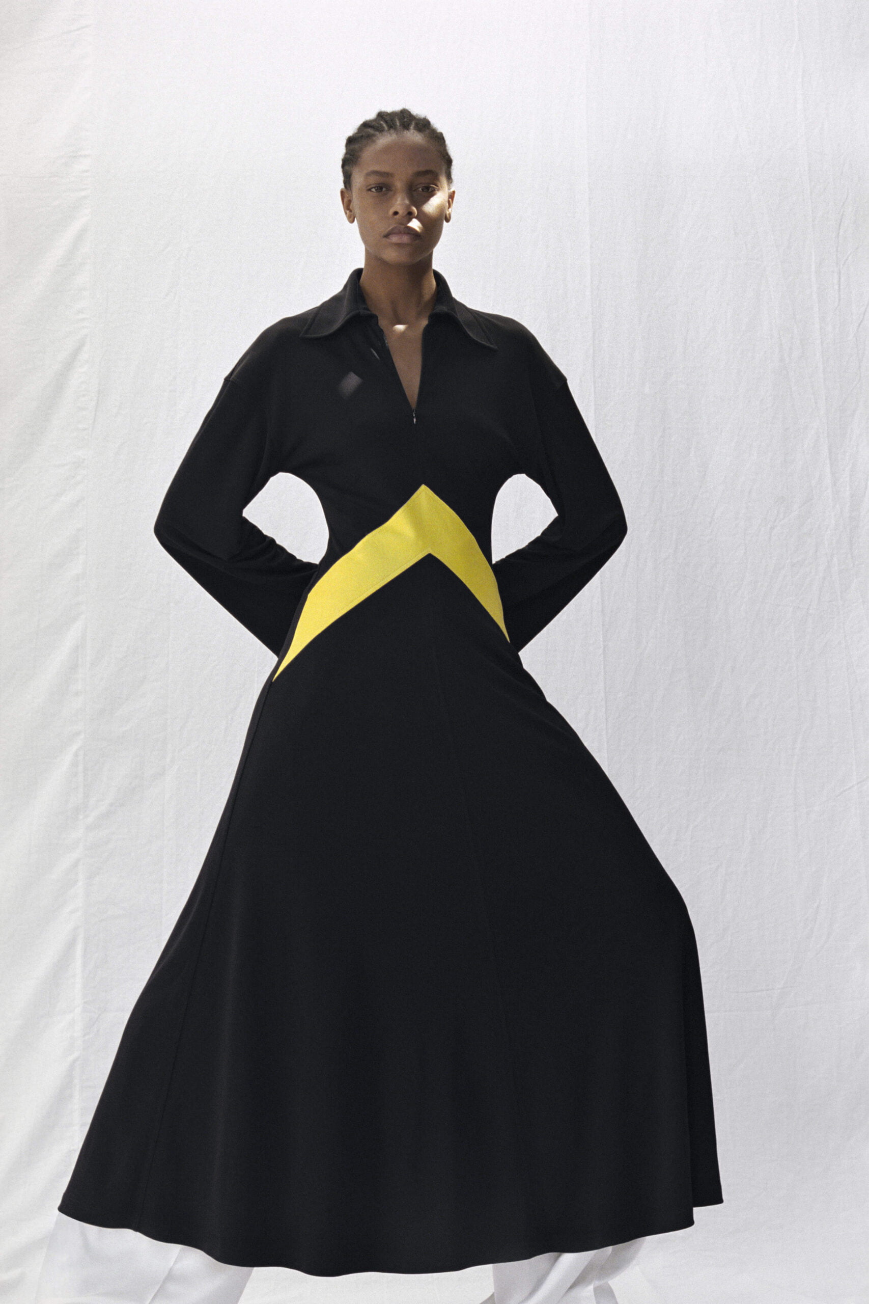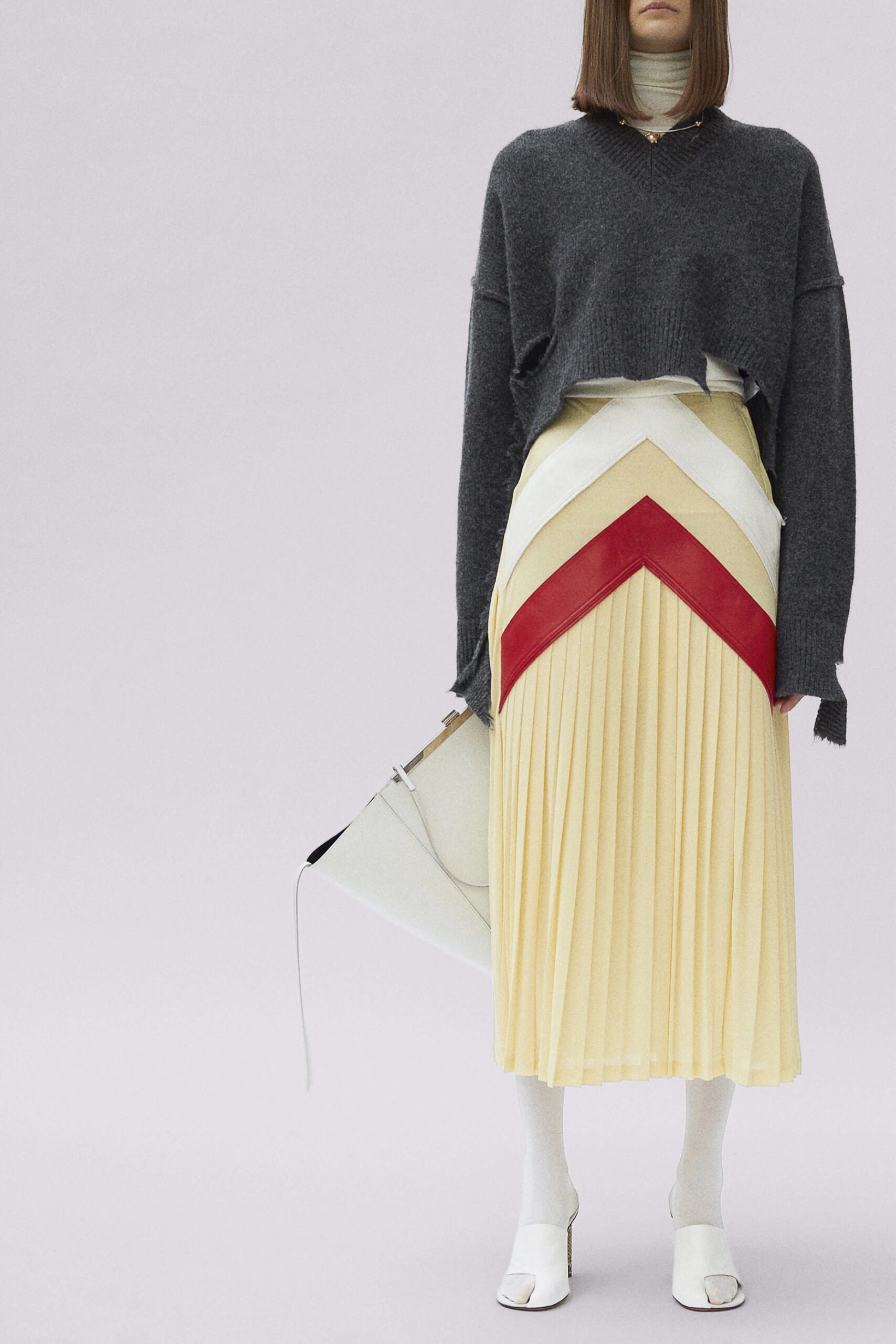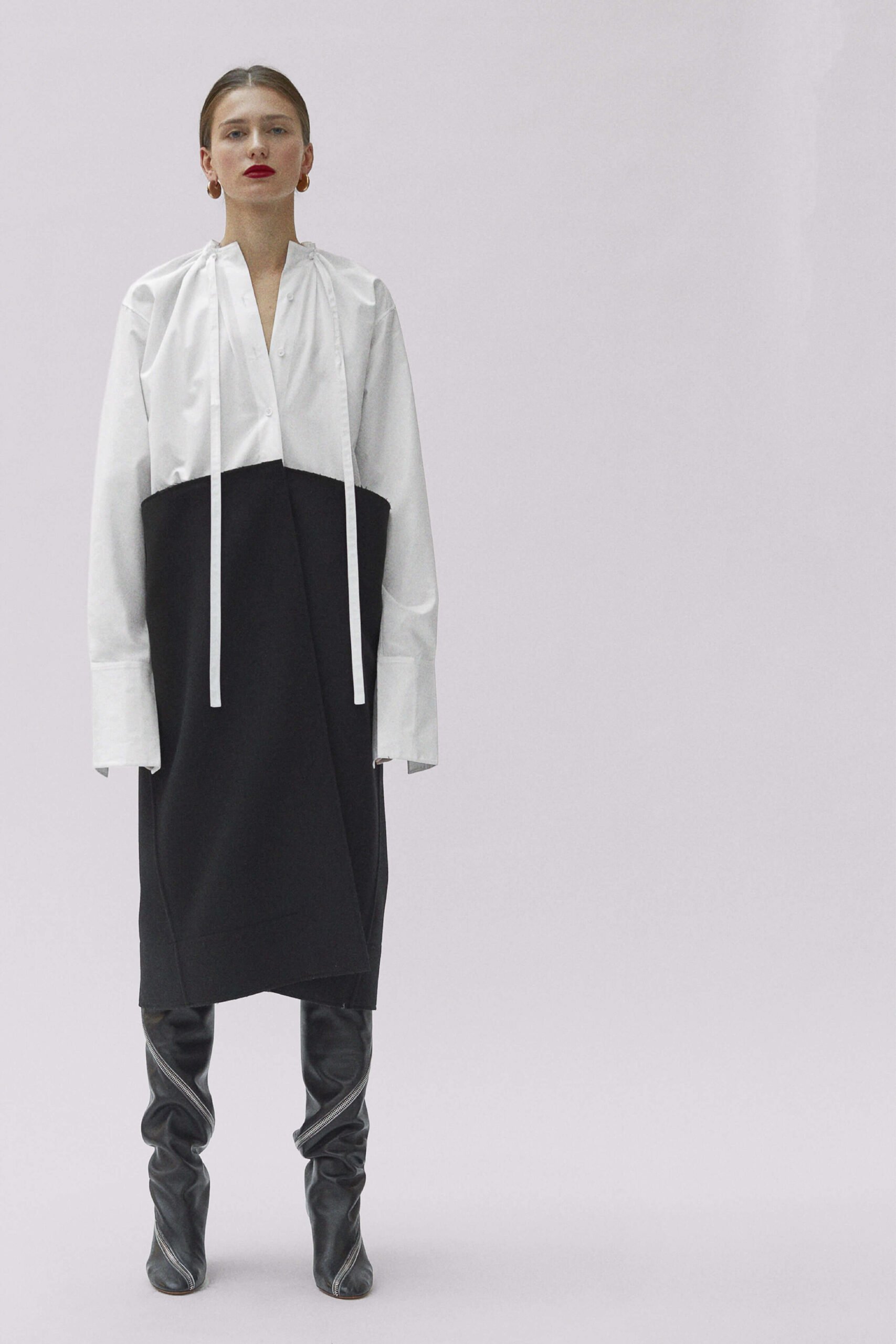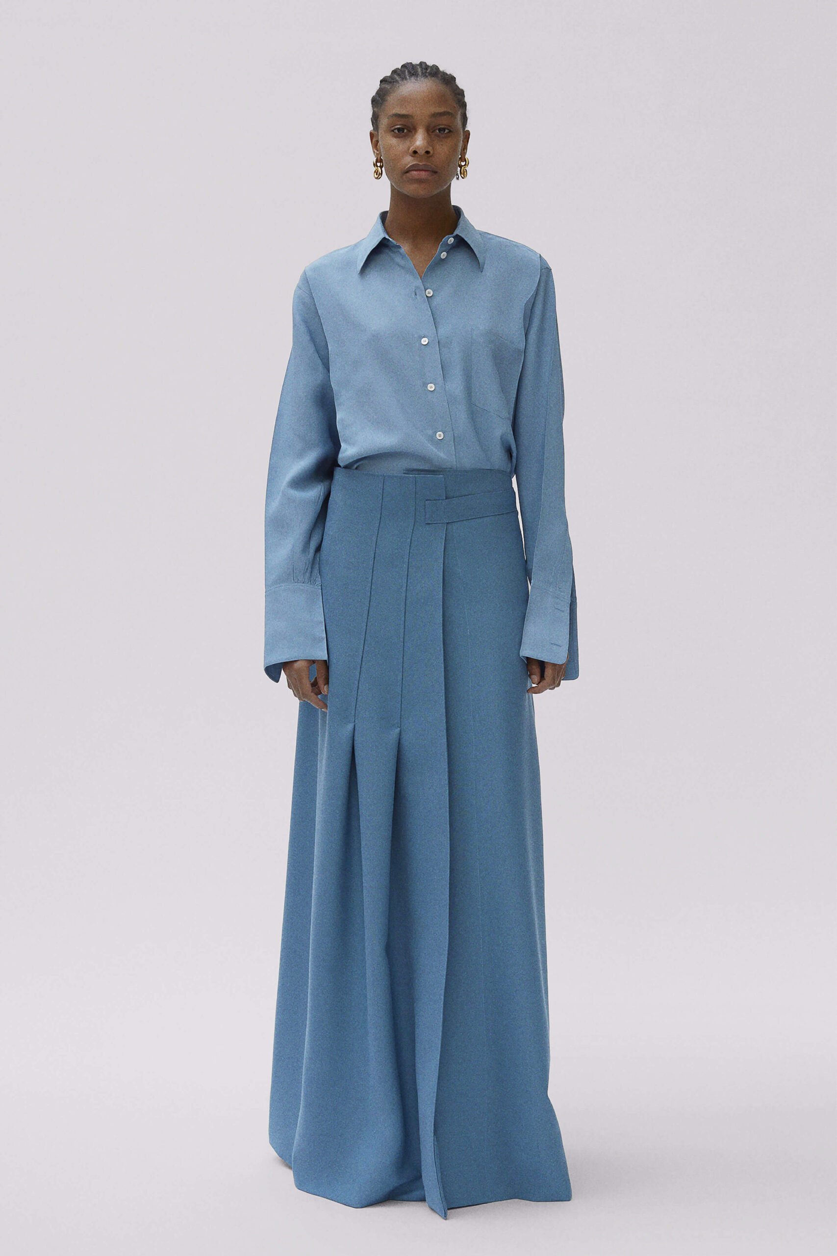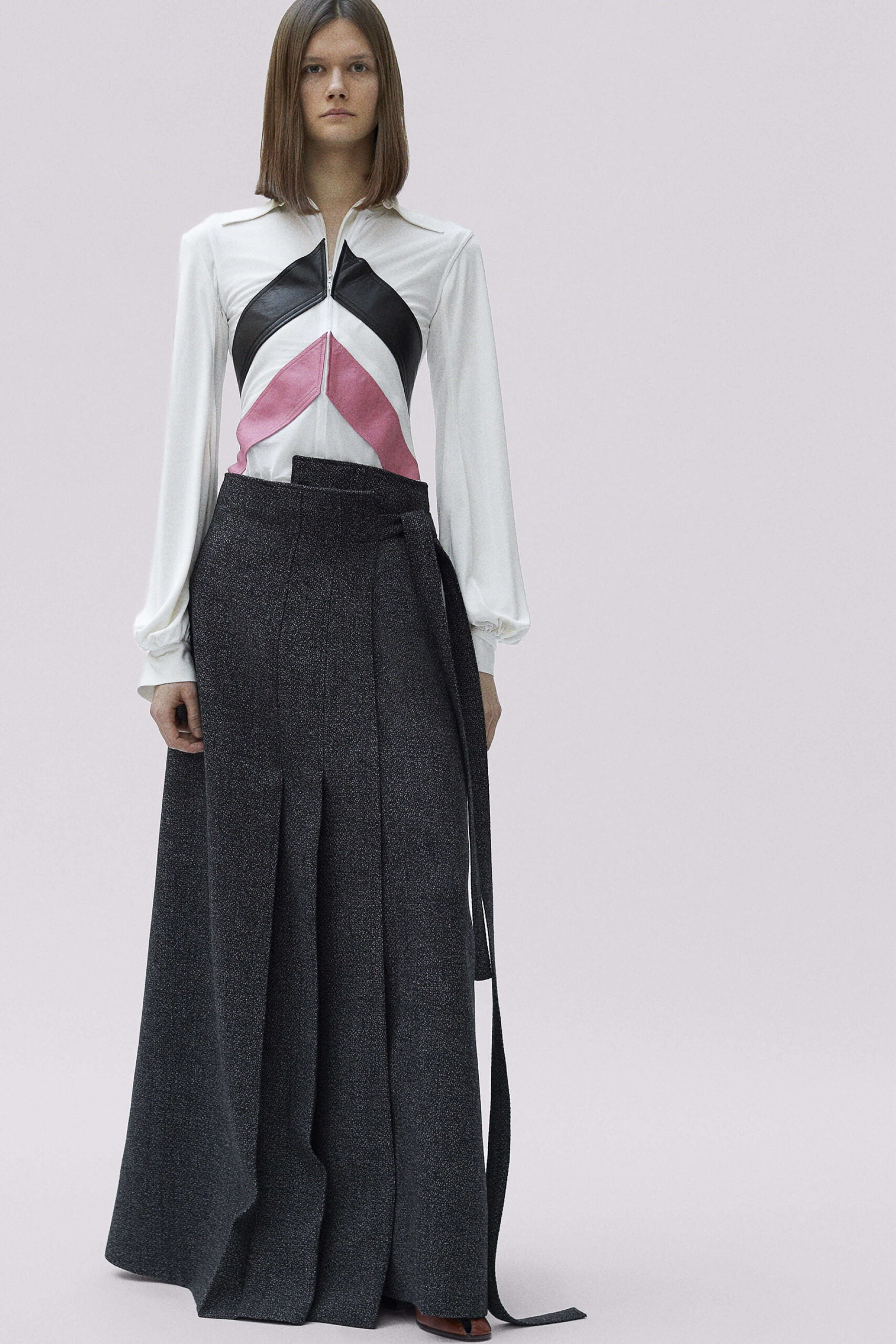 I often say that the two qualifications for enjoying Phoebe Philo’s work at the house of Céline are 1) being a woman and 2) having a pulse. However, I would like to add that, certainly amongst Ten Towers at least, there are a number of fashionistos (that’s the boy version) who also are partial to Ms Philo’s clothing and, as I plan to be buried in full-look Céline, who needs a pulse either? It’s really easy to wax lyrical about a Céline collection, mainly because they are always very very good, but on receipt of these images last week (embargoed until today) I must say that we’re extra partial to this latest offering – Philo’s Fall 2017 (a Céline-ism for Pre-Fall) collection for the house. There’s something hearty about this. A kilt says hearty, especially when it’s floor-length, and there are six of them here, pointing to this fullness of fabric throughout – heavy mannish overcoats or roomy shirts, some checkered, or those trousers that rise up far beyond the waist and fasten with an extra-long fly. But Philo’s vision at Céline has long taken the hard with the soft and here, that heaviness is offset with a strong femininity, a sense of womanliness. It’s found in the way that ties of silk loosely cinch the waist and fabrics gently drape on the body, subtly pointing to the female form beneath or in those flashes of red, on the clothes and slashed across the model’s lips. Because yes, Céline may be intellectual but that doesn’t mean it’s sexless – there’s a fluidity to it, a languid sensuality. Philo really does know how women woman to dress – design without agenda or suggestion – just beautiful, intelligent clothes.