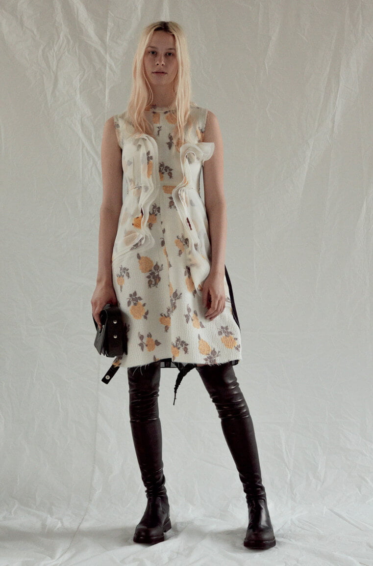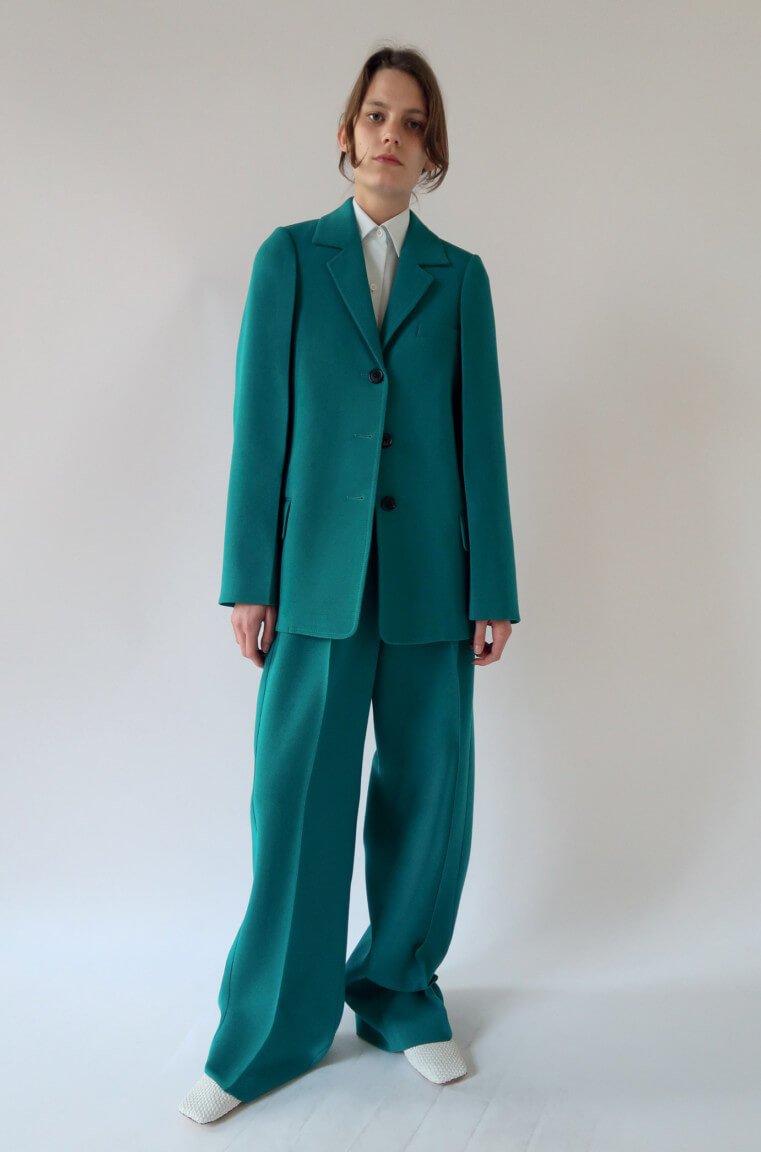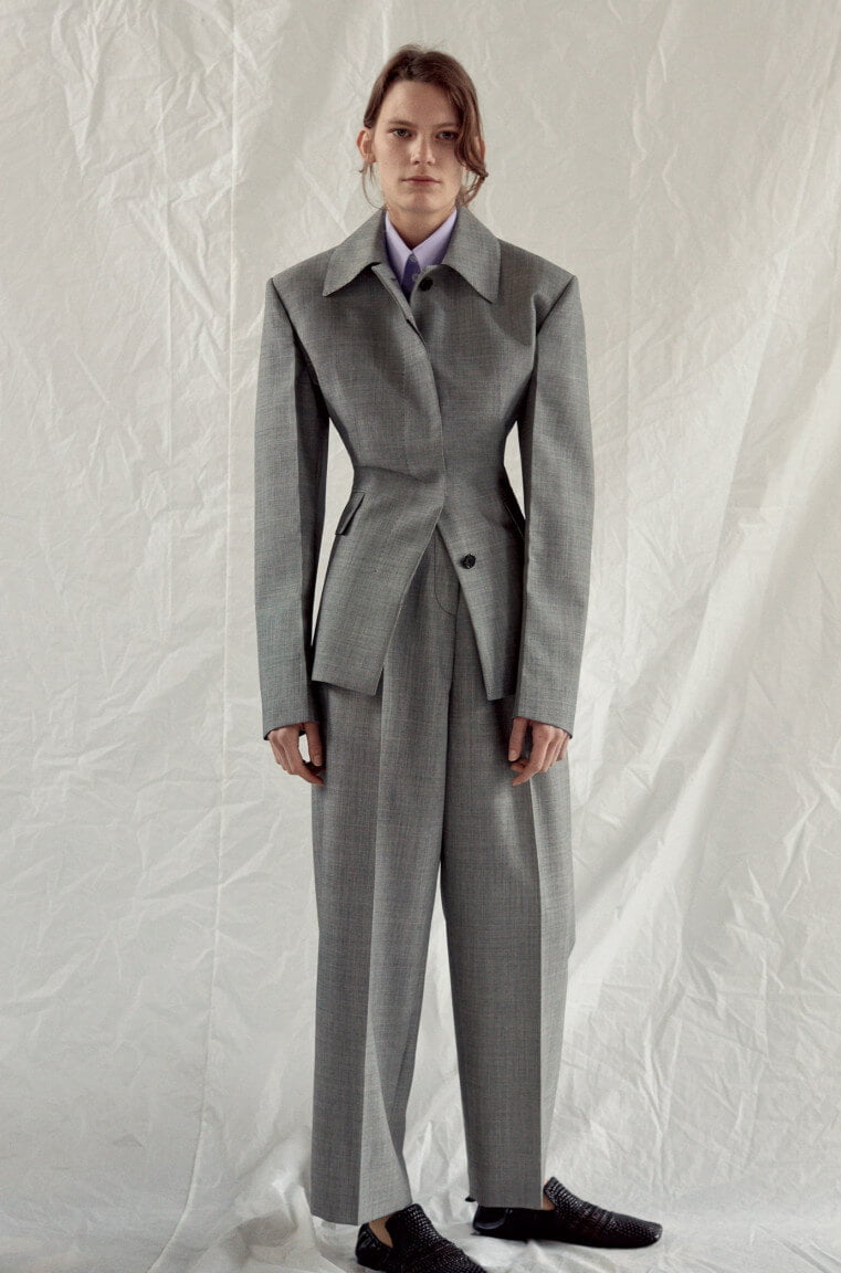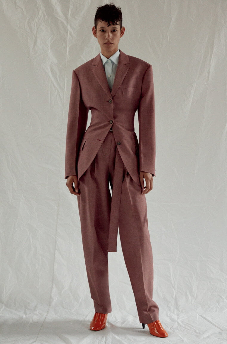 Ah – finally. Seems like forevs since we first laid eyes upon these beauties in the far more pleasant setting of Céline’s shiny HQ in Paris rather than, as we find ourselves now, looking at them via a computer screen in our slightly less shiny and currently Baltic offices in Soho. But, alas, as they say: true beauty shines through. So, to warm your various cockles, here is every look from Phoebe Philo’s Spring 2017 collection. Which weirdly makes me think about that episode of SATC where Charlotte dresses up as a man, tash and all, for her artist boyf. Not that this is drag king territory, per se, but there’s something about the tailoring (which, coincidentally, makes up a large portion of the collection) that has the feeling of what a woman’s body would look like in a man’s suit – wide on the shoulders, loose on the leg but then cinched at the waist, as if someone has pulled the fabric from behind. Let’s call it Phoebe’s take on the power suit. And, of course, utterly fabulous. That masc/femme thing is at play throughout – veering from the tailoring to a kind of girlish softness, playing on what can be seen and what can’t – lightweight layers of transparent fabric, semi-sheer wallpaper-esque florals or peek-a-boo cut-outs that that reveal teases of underwear beneath. A colour palette of washed-out, faded pastels. But it’s not in any way saccharine – long, ribbed-knit dresses lend a grown-up, and strangely sexy, air to proceedings, as too do those ah-mazing knee-high leather biker boots. Darling Phoebe – if I were able to squeeze my shapely (read: man’s) calves into them I’ll take a pair. Or two. Or, really, anything. We adored it all. Of course we did.