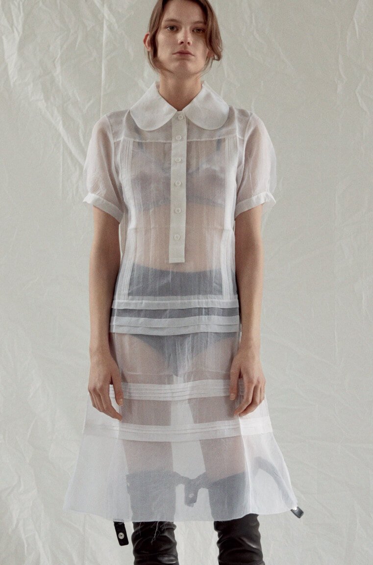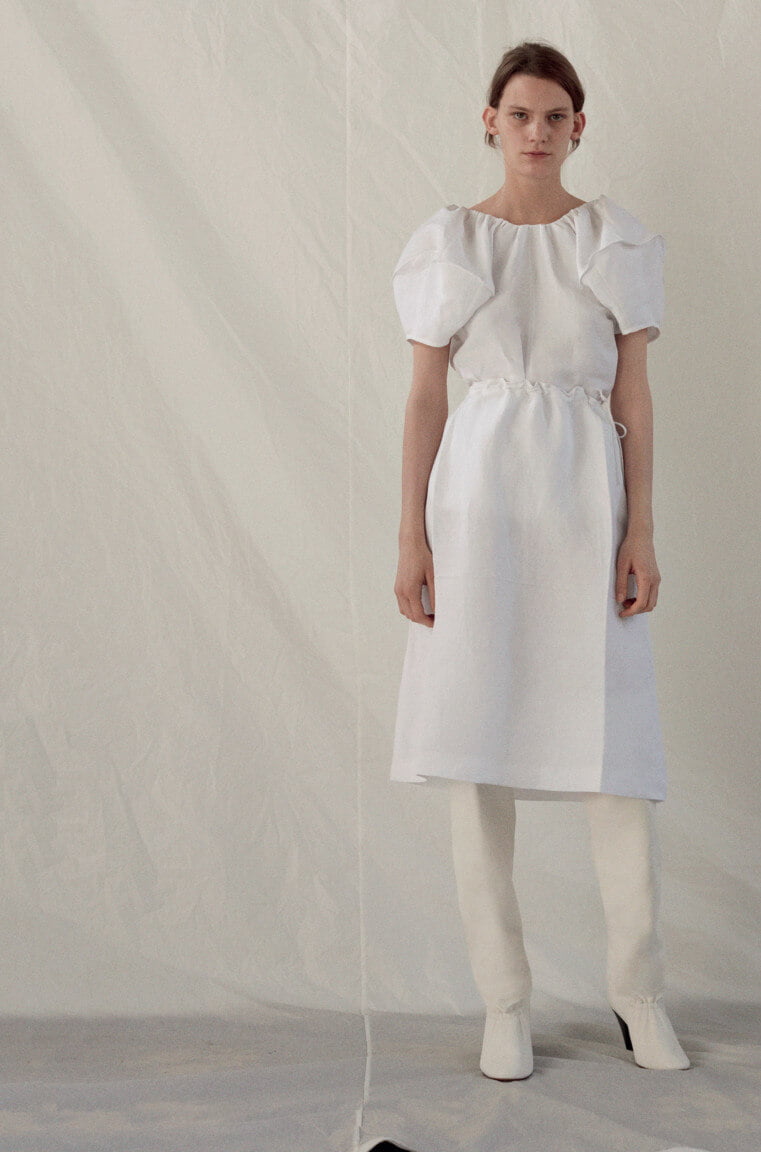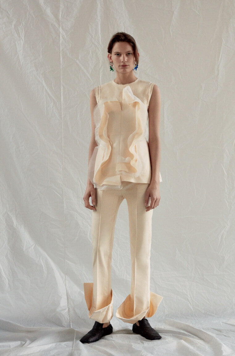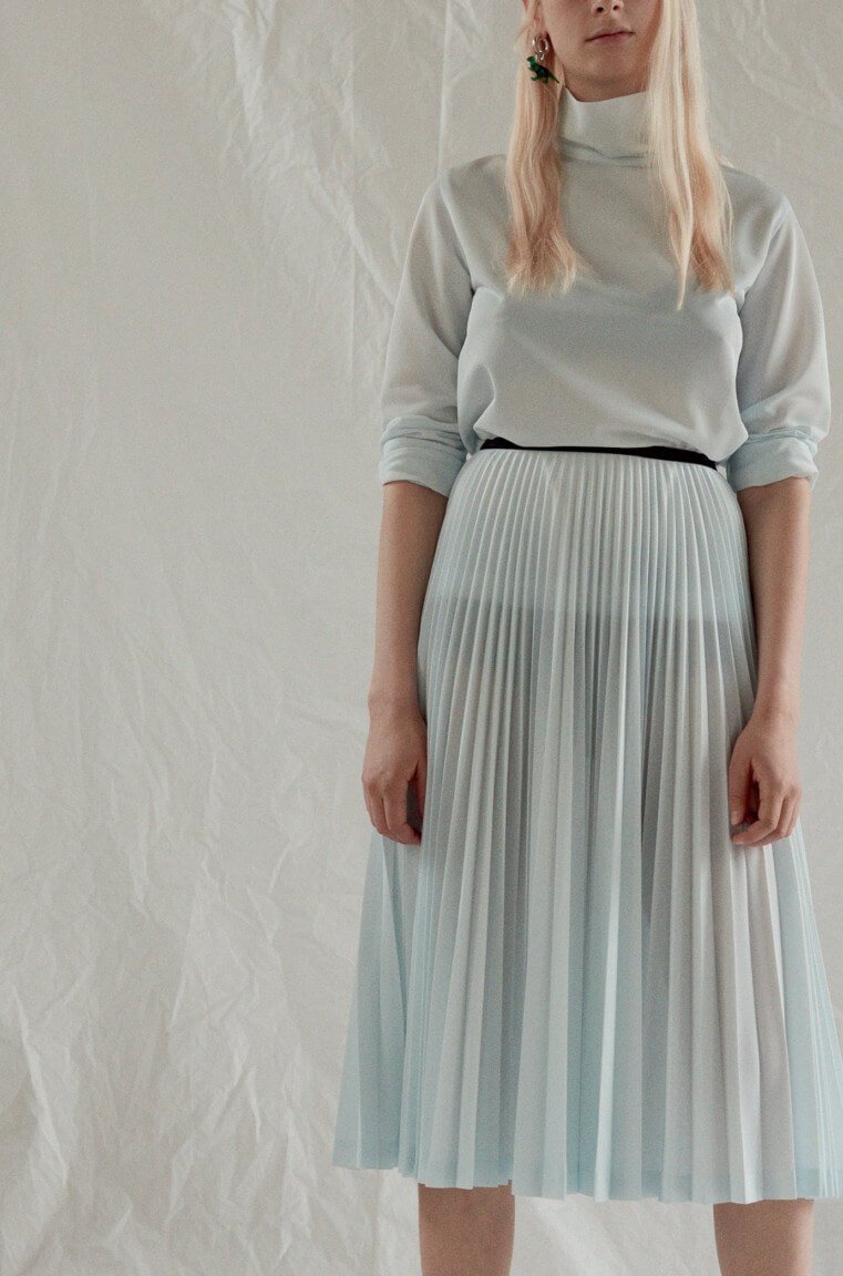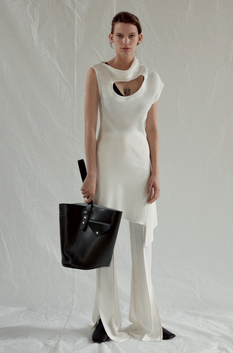 Ah – finally. Seems like forevs since we first laid eyes upon these beauties in the far more pleasant setting of Céline’s shiny HQ in Paris rather than, as we find ourselves now, looking at them via a computer screen in our slightly less shiny and currently Baltic offices in Soho. But, alas, as they say: true beauty shines through. So, to warm your various cockles, here is every look from Phoebe Philo’s Spring 2017 collection. Which weirdly makes me think about that episode of SATC where Charlotte dresses up as a man, tash and all, for her artist boyf. Not that this is drag king territory, per se, but there’s something about the tailoring (which, coincidentally, makes up a large portion of the collection) that has the feeling of what a woman’s body would look like in a man’s suit – wide on the shoulders, loose on the leg but then cinched at the waist, as if someone has pulled the fabric from behind. Let’s call it Phoebe’s take on the power suit. And, of course, utterly fabulous. That masc/femme thing is at play throughout – veering from the tailoring to a kind of girlish softness, playing on what can be seen and what can’t – lightweight layers of transparent fabric, semi-sheer wallpaper-esque florals or peek-a-boo cut-outs that that reveal teases of underwear beneath. A colour palette of washed-out, faded pastels. But it’s not in any way saccharine – long, ribbed-knit dresses lend a grown-up, and strangely sexy, air to proceedings, as too do those ah-mazing knee-high leather biker boots. Darling Phoebe – if I were able to squeeze my shapely (read: man’s) calves into them I’ll take a pair. Or two. Or, really, anything. We adored it all. Of course we did.