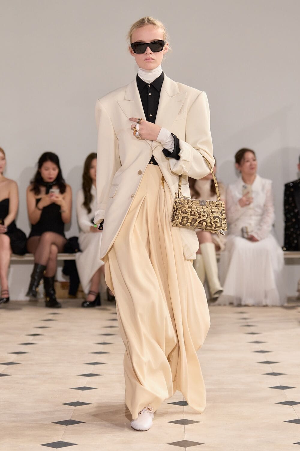 “I’ve always loved the idea of clothing that lives on, that becomes a part of the wearer’s life, that may capture a moment in time but also speaks to years and years of gestures and occasions and change,” writes Rider in the show notes, “of the past, the present and the future, of memories, of usefulness and of fantasy, of life really.” This meant Rider’s coats were tailored with a touch of tenderness, built to last and to be loved across generations. That idea of heirloom dressing permeated the collection like a gentle insistence.