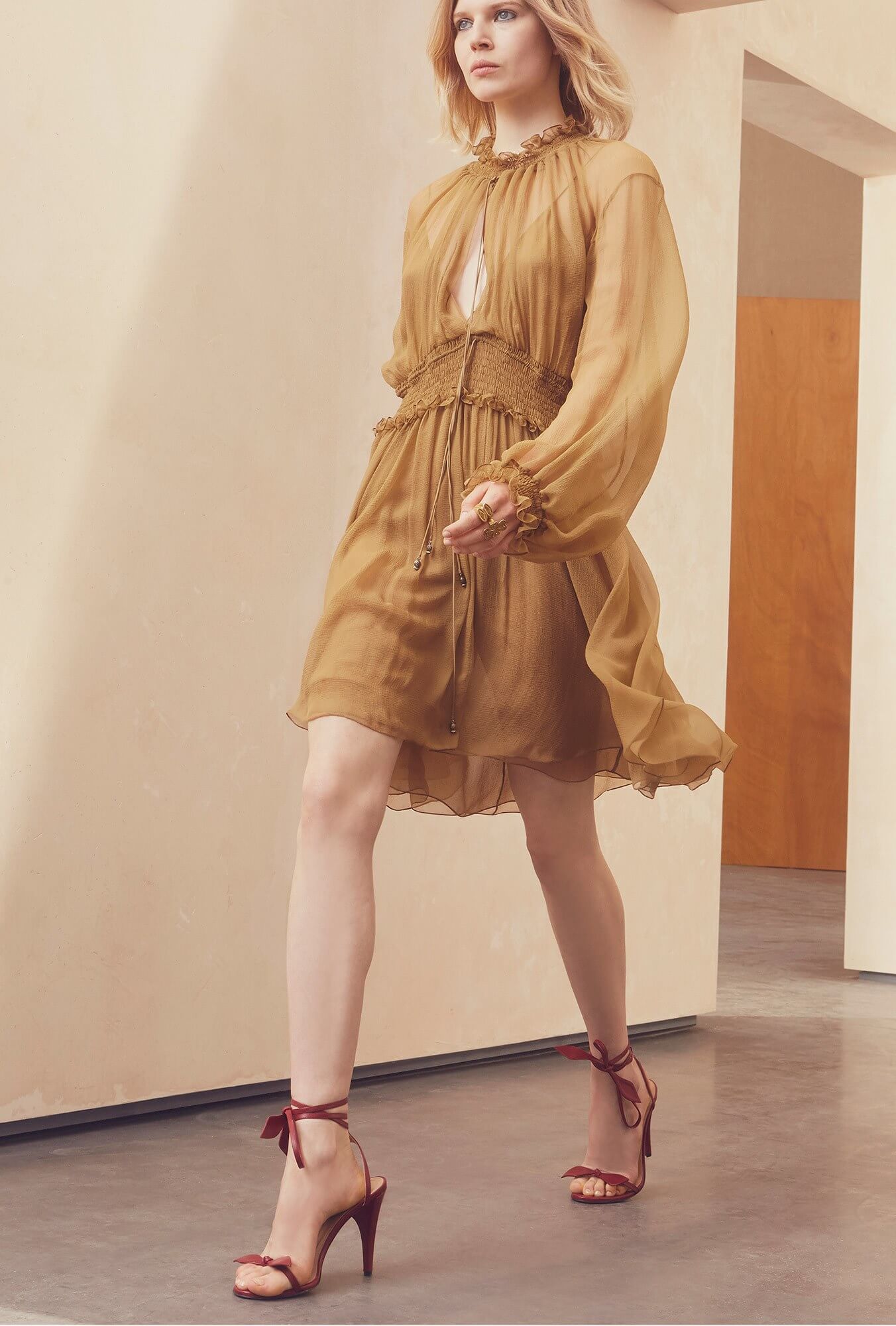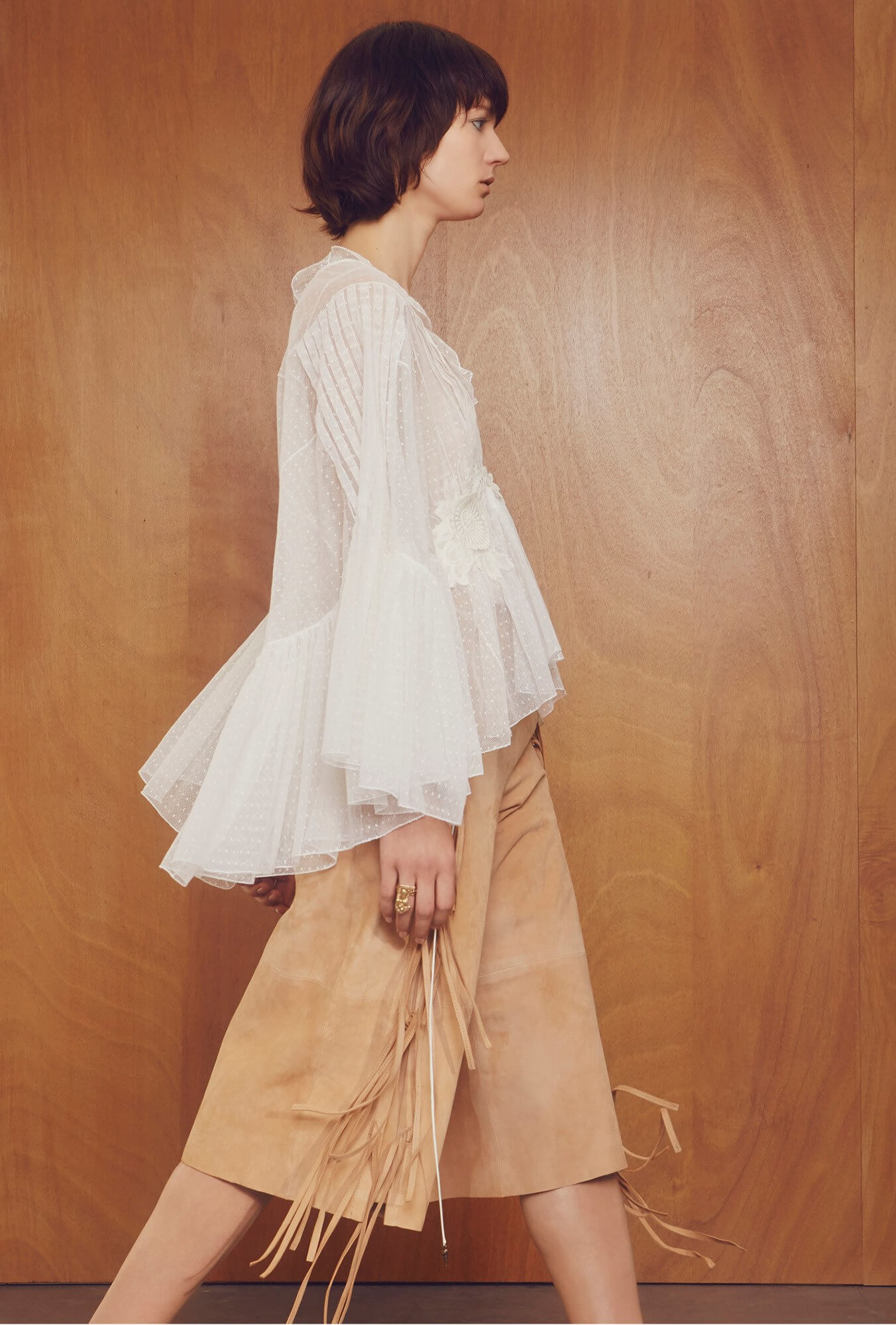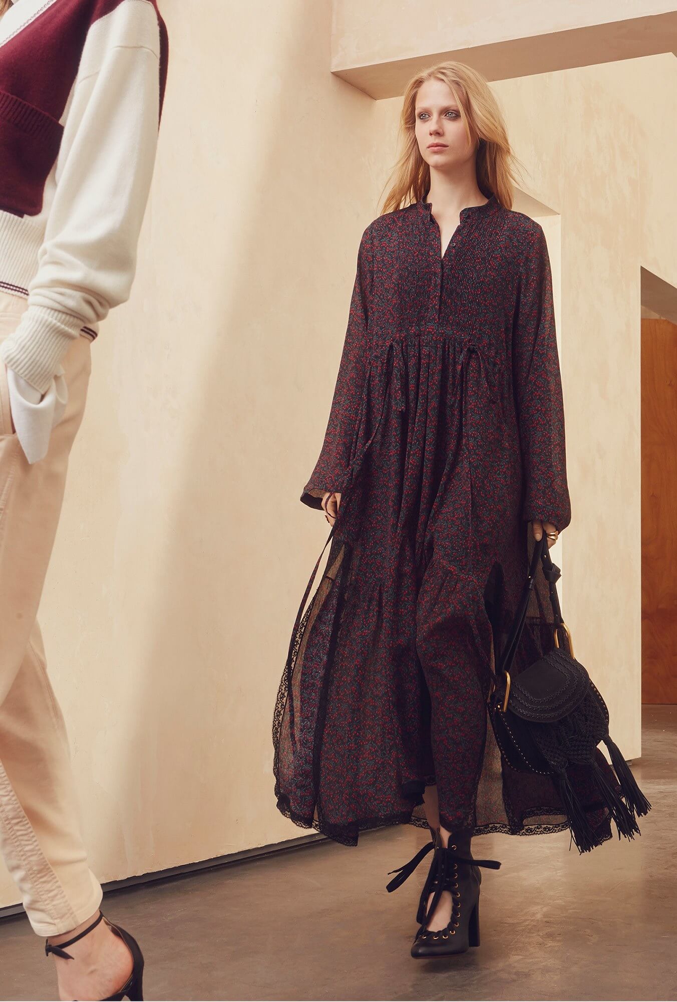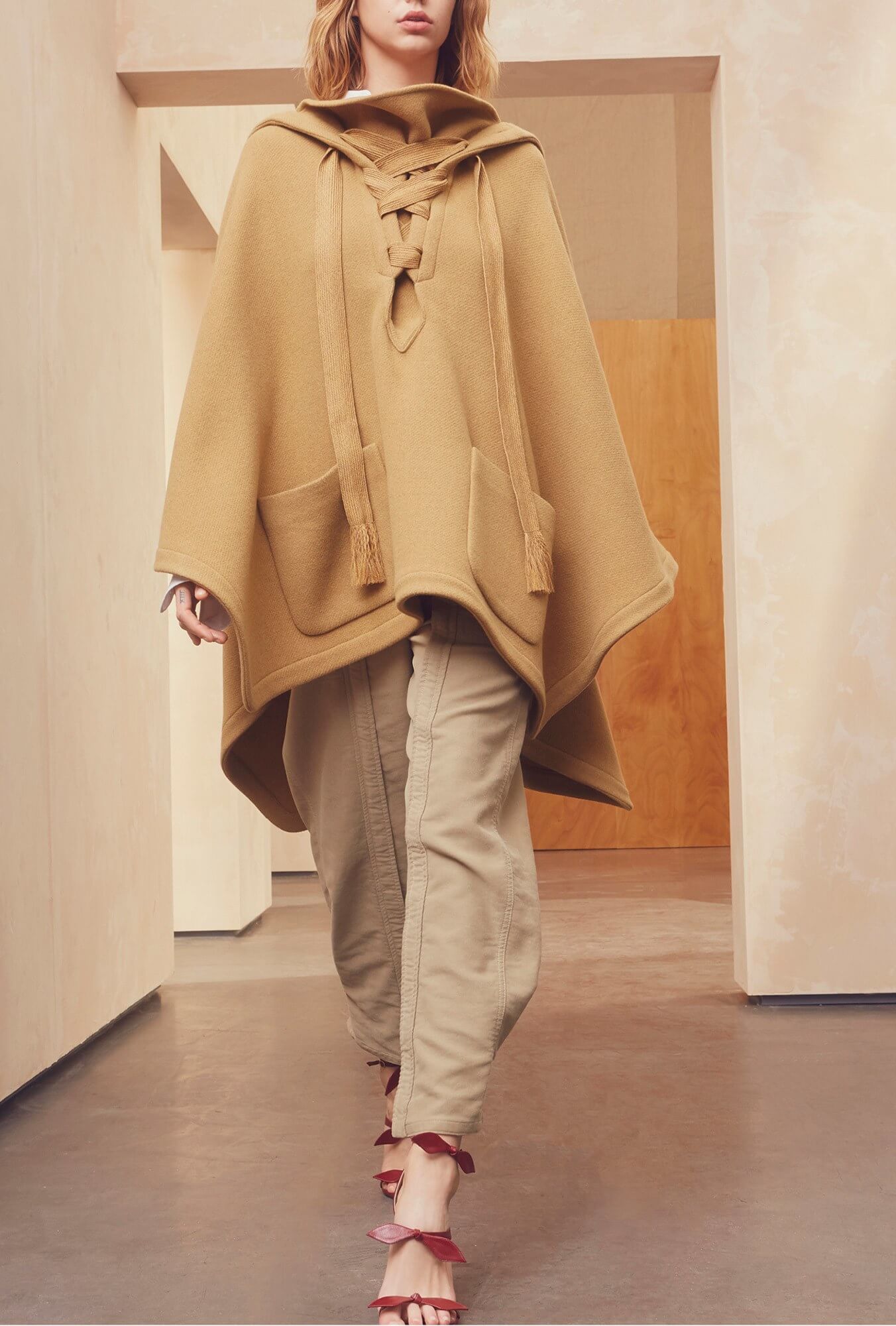 Remember when Joni Mitchell sang about the Ladies of the Canyon? Us neither. Even describing ourselves as barely foetal when that was released would be a stretch. But that doesn’t mean it can’t be experienced via Spotify. Like most things, apart from Taylor Swift. Anyway, the ladies described in this canyon, always sounded rather glamorous, in that sort of hippie rock lady in a cloud of opium way. You don’t get to be Estrella, the circus girl and be wrapped in gypsy shawls, or Trinna and be trimmed with antique lace without a cloud of opium smoke engulfing you. It just doesn’t work that way. In our heads anyway. What does work for a lady of the canyon though, rather well in fact, is the Chloé Resort 17 collection. There’s always a bit of a seventies hippy thing in mustard about a Chloe collection which seems rather fitting for a Joni Mitchell heroine. Gaucho trousers and oversized ponchos were striped in that Mexican blanket stripe but more subdued in colour, while sleeker, single hued offerings laced up at the neck, Robin Hood style, giving them a slight outlaw vibe, and what is a lady of the canyon if not a modern day outlaw?