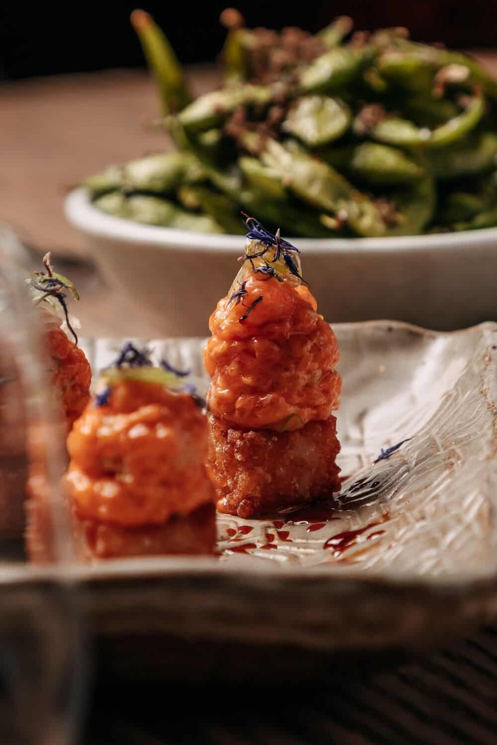 As for the main attraction, the food – which comes courtesy of French culinary director and chef Renald Epie – is eclectic and beautifully done. Clap’s sampling menu, which highlights the best and brightest from its culinary catalogue, is diverse and notably light. Every dish served is of the highest quality, both in ingredients and execution, however, if particular standouts had to be selected these would include the Salmon Volcano tower, a stack of fresh salmon rolls topped with a smooth sauce that masters the balance of sweet and spicy, and the signature Black Cod Miso, its melt-in-the-mouth texture perfectly elevated by its delicately sweet coating. The Pistachio-Crusted Baby Chicken with yuzu daikon was another highlight, as was the Charred Cauliflower with soy aoili, toasted panko and parmesan. For dessert we had the Tira’Miso – a Japanese twist on the tiramisu – its fluffy vanilla mascarpone cream cutting through the syrupy miso-caramelia and espresso-soaked miso sponge to delectable effect.
