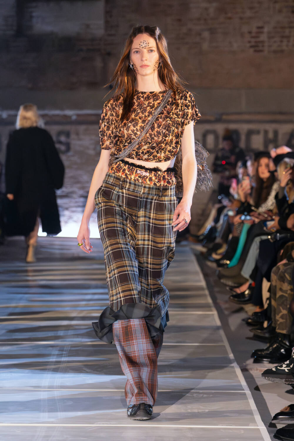 A few things are certain when you attend a Collina Strada show. You’ll see a creative cast of models walking the runway including perennial favourites Aaron Rose Phillips and Kathleen McCain Engman. The front row will be filled with a slew of cool kids including Ella Emhoff, Meg Donnelly, and King Princess. And lastly, founder Hillary Taymour will always have a creative soundtrack to set the tone. Last season it was a version of Ashlee Simpson’s iconic Y2K anthem Pieces of Me, with the lyrics rewritten to capture the brand’s eco-friendly ethos. This time around, it was a steady stream of familiar favourites, again adapted for Taymour’s message of sustainable living. Kicking off the show with a version of Enya’s Orinoco Flow before segueing into Destiny’s Child’s Independent Women, Part 1., the mood was decidedly upbeat for one of the first shows of a subdued New York Fashion Week.