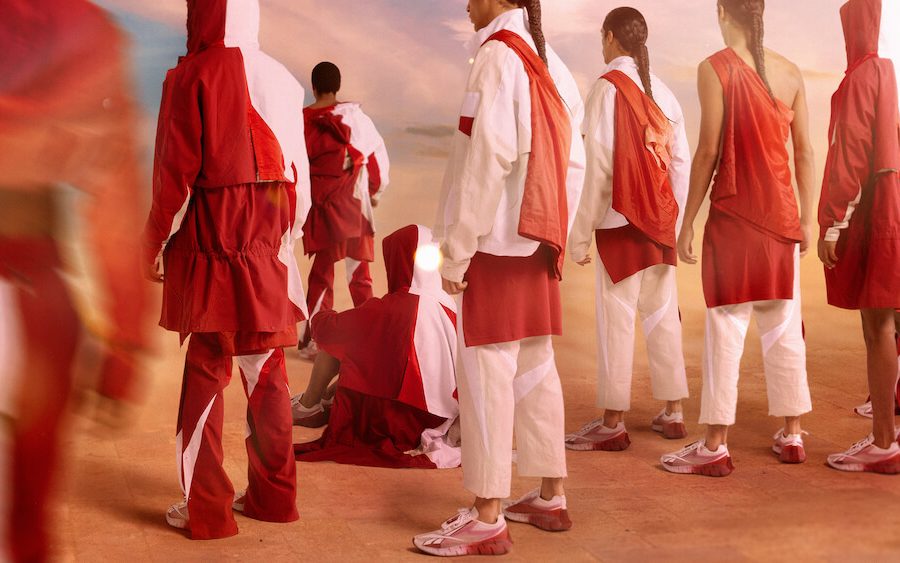 It was here where the brand first teased their latest collection for Reebok, which you can now finally get your hands on IRL. SS20 sees the brand re-imagine Reebok’s Zig Kinetica trainer to create the Zig 3D Storm, available in red, blue and black colourways. “Reebok asked us to develop the new Zig after we had initially worked on a re-release of the original style from 2010 for our SS19 collection,” Dainty explains. “We were both huge fans of the original Zig so it was really exciting to incorporate the new technology and to modernise the silhouette.” The Zig 3D Storm’s sleek structure mimics the reflection the sun leaves on the sand, equipped with a slanted sole shape that uses kinetic energy. The Zig Energy Bands on the outsole expand and contrast as you move, and when paired with the model’s lightweight foam cushioning, enables a spring in your step. It’s basically sneaker science.