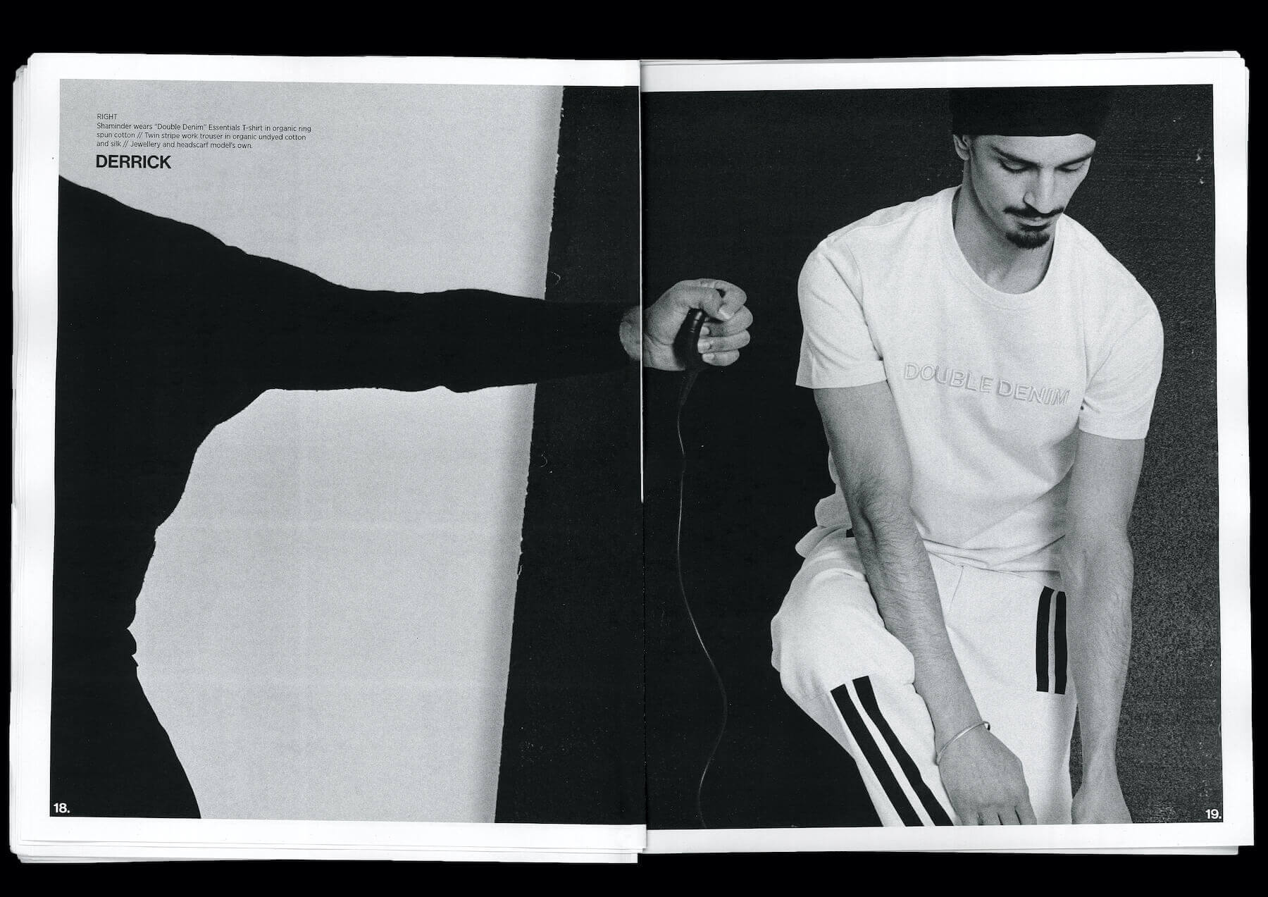 For the future, Derrick plans to continue taking “baby steps”, allowing his label to gain traction organically. “My brand is something that slowly grows and consistently reacts to the way we are living and those urban experiences and what garments are working on,” he says. “I’m the sort of person who spends a month on a jacket, rather than banging out six looks in 10 seconds – it takes time! I don’t think there is any point in rushing stuff. I’m just trying to enjoy the fact I’m not a mega global superstar yet; I’m just here in my box where I can experiment.”