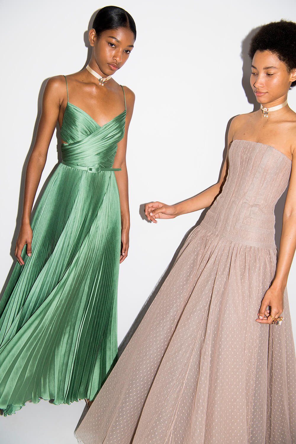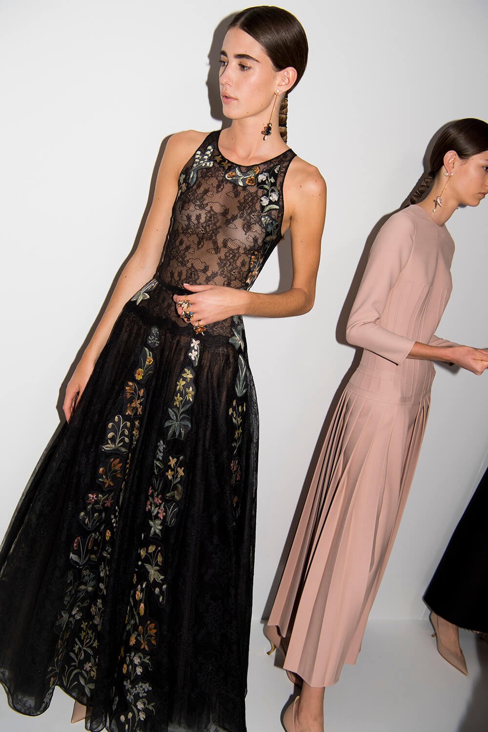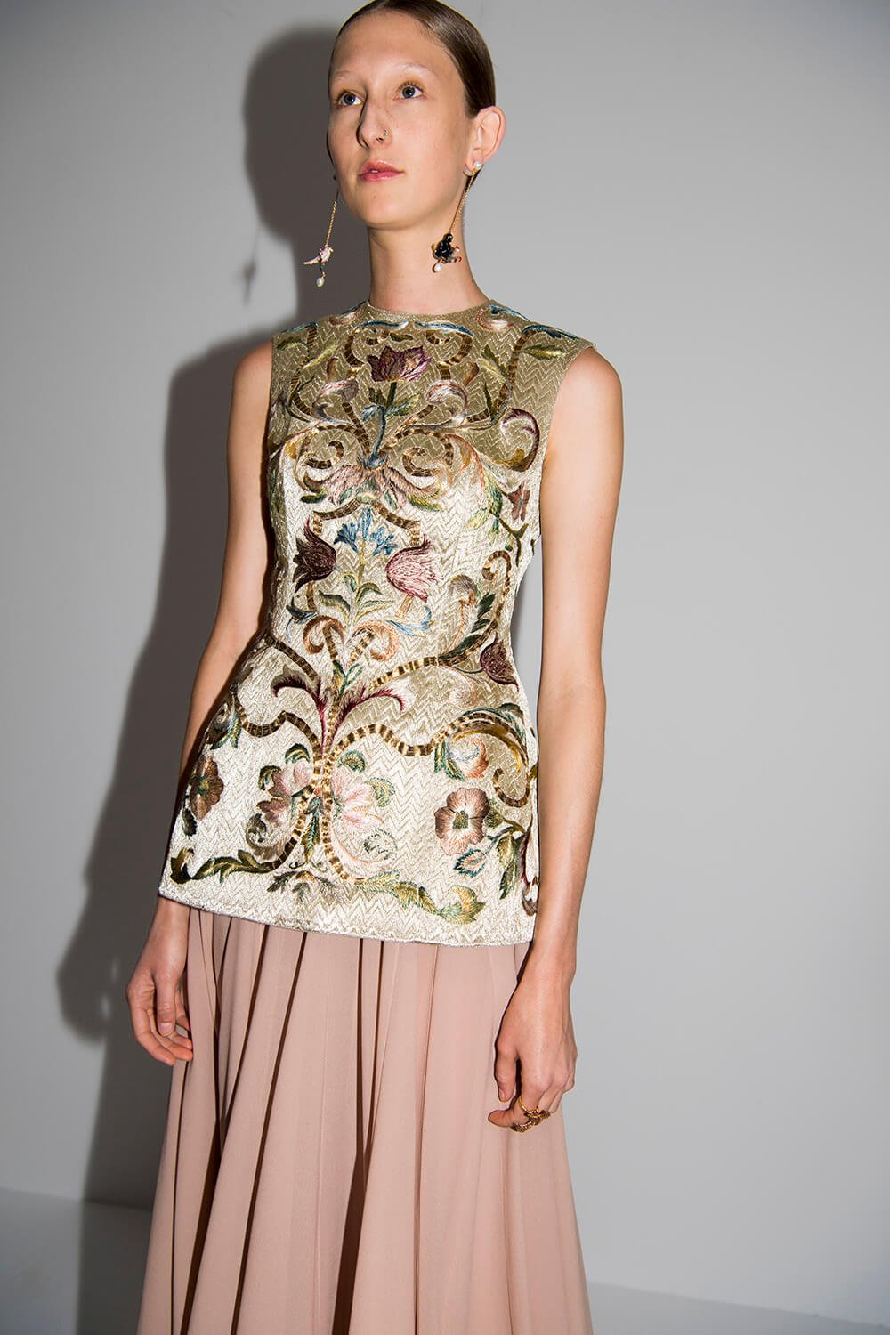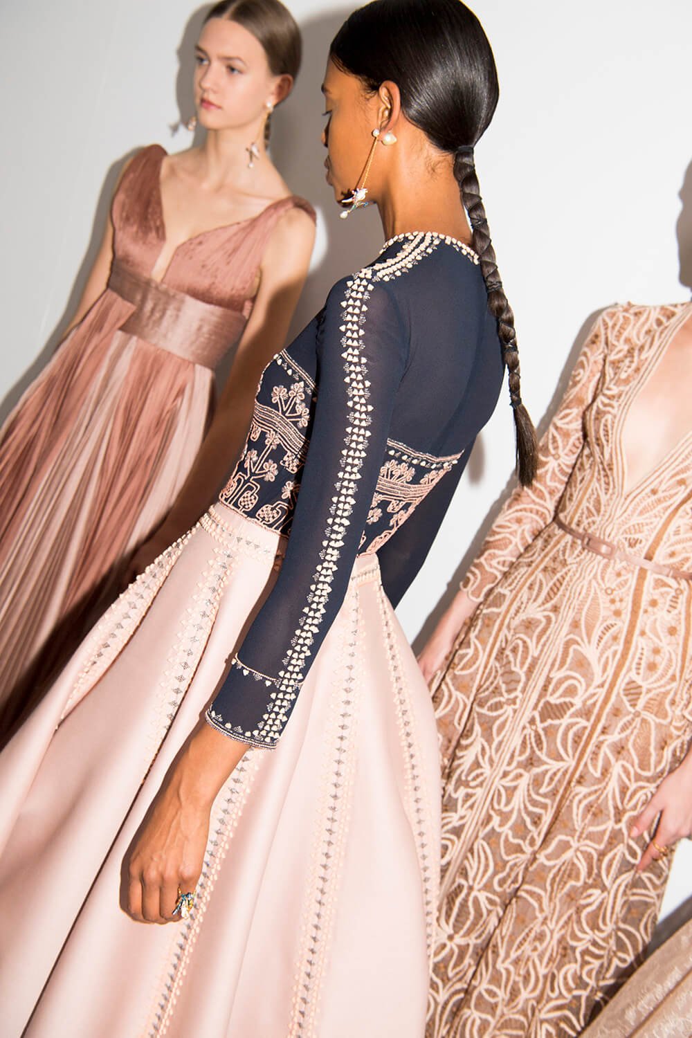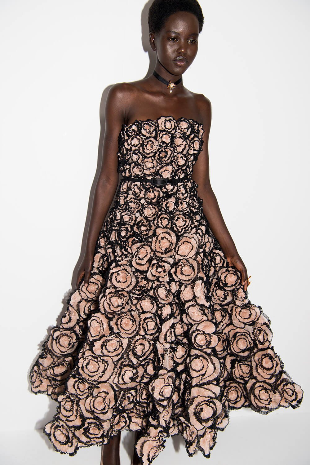 Maria Grazia Chiuri likes to ask questions. When she started at the house, her big one was how to handle the Dior legacy? “We have to speak about femininity, but what does that mean today?” In answer, her quest has been to put a youthful, feminist spin on the house’s feminine legacy. If Mr Dior has his ‘flower Women’ (as he referred to his muses) in the 1950’s she has her global army of empowered young women, looking for a vision of femininity that speaks to them. And whilst there are no slogan T-shirts at couture, (Chiuri saves that for Ready To Wear), there are still questions to answer. Namely, how to respect the age old institution of haute couture whilst making it feel modern and relevant? Chiuri went back the craft – the true integrity of couture – to find an answer. She lined the walls of her vast tented show space with toiles – the ghostly cotton prototypes of couture designs. With the atelier at the heart of it, she presented a collection of maestro cuts and haute techniques. The signature bar jacket came with pleated sleeves that gave the hourglass silhouette a dramatic flourish. Fine georgette was gathered into gracious floor sweeping gowns that had a balletic grace. The colours – honeyed neutrals – and the silhouettes were deceptively simple but the work it takes to get fabric to fall and move with such lissome lightness lies in the skills of the Dior atelier. There were typical couture flourishes. A bell shaped gown was covered top-to-bottom in intricate floral embroidery; one dress seamlessly transitioned from delicate chiffon at the top to a skirt of luscious feathers below; a coat depicting an abstracted woodland scene was made of hundreds of patch-worked pieces painstakingly stitched together. But the pieces that left the most lasting impression were unadorned. The show ended with six majestic ballgowns in heavy satin. Lean and minimal, they brought the air of modernity that Chiuri strived for. Take away the beads, flounces and frills and you get to the soul of couture. The purity of the silhouette, the exactness of the cut and the wonder of the craft were plain to see.