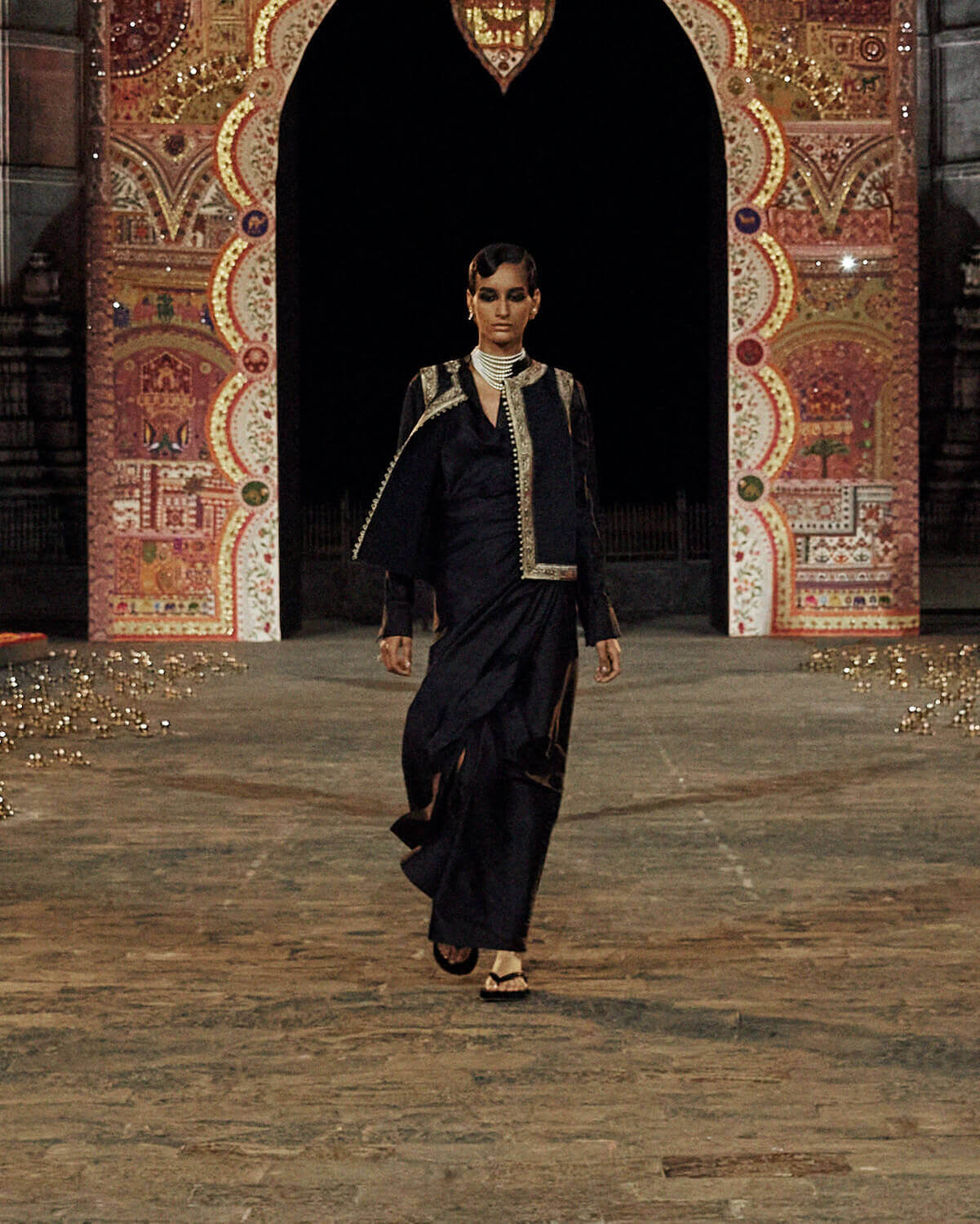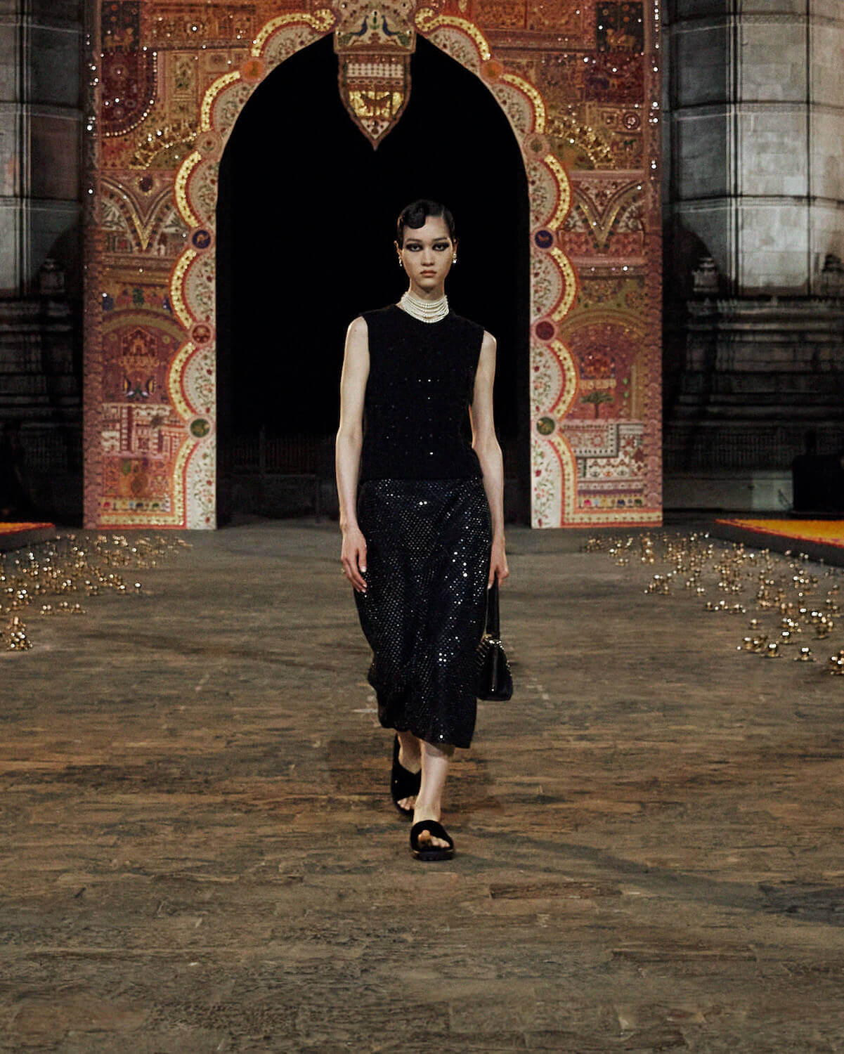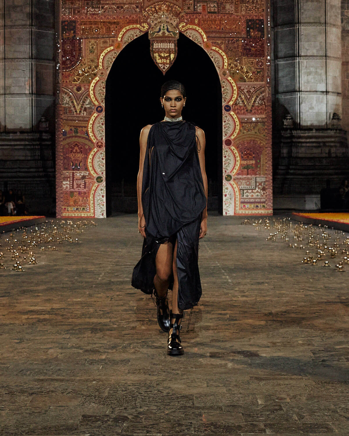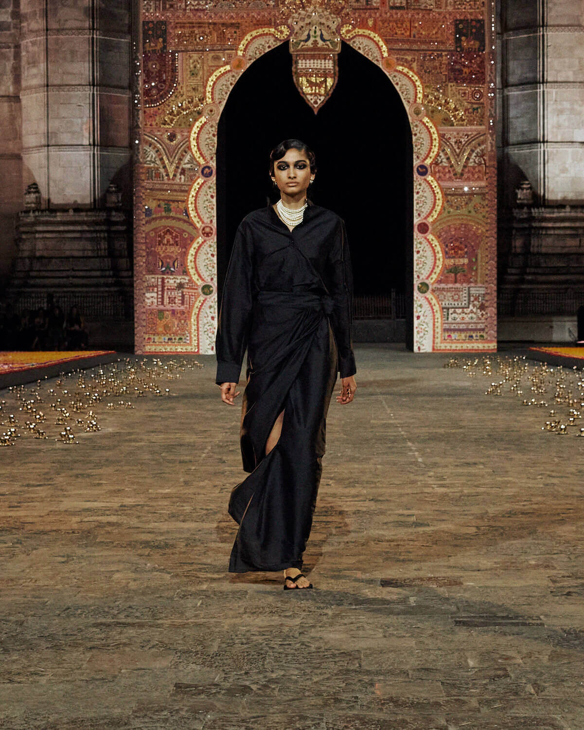 Maria Grazia Chiuri uses her travelling shows as an opportunity to collaborate deeply with local craftspeople. From North Africa, to Southern Italy or Southern Spain, her Dior is in dialogue with the places it visits, along with its people and unique crafts. A location like The Gateway to India is never simply a picturesque backdrop for fashion. It’s part of a richer story.