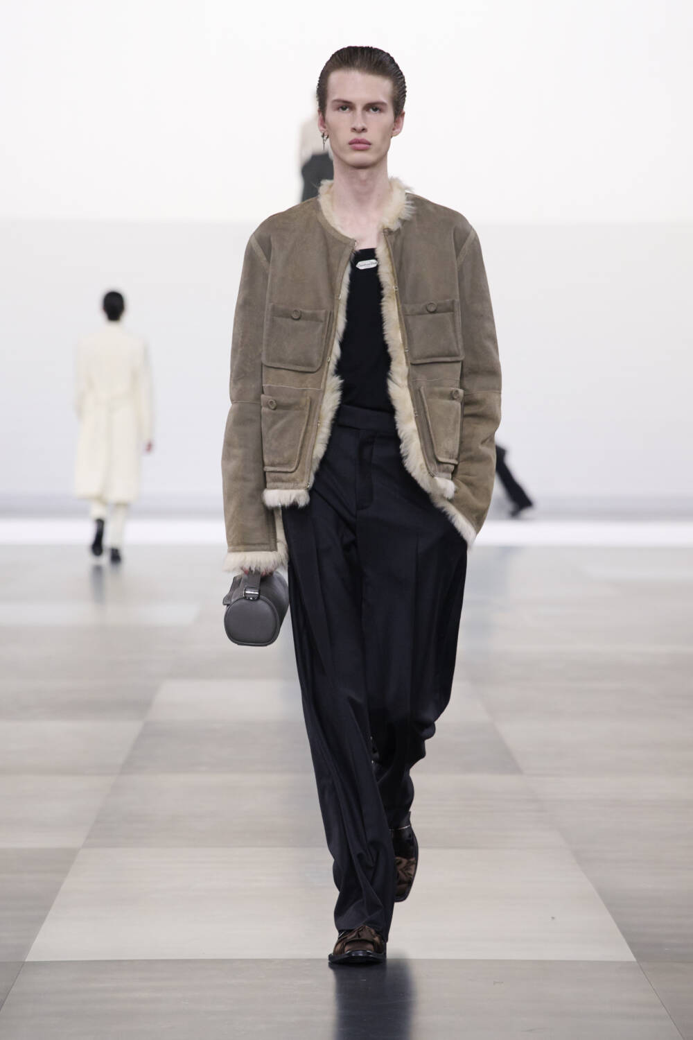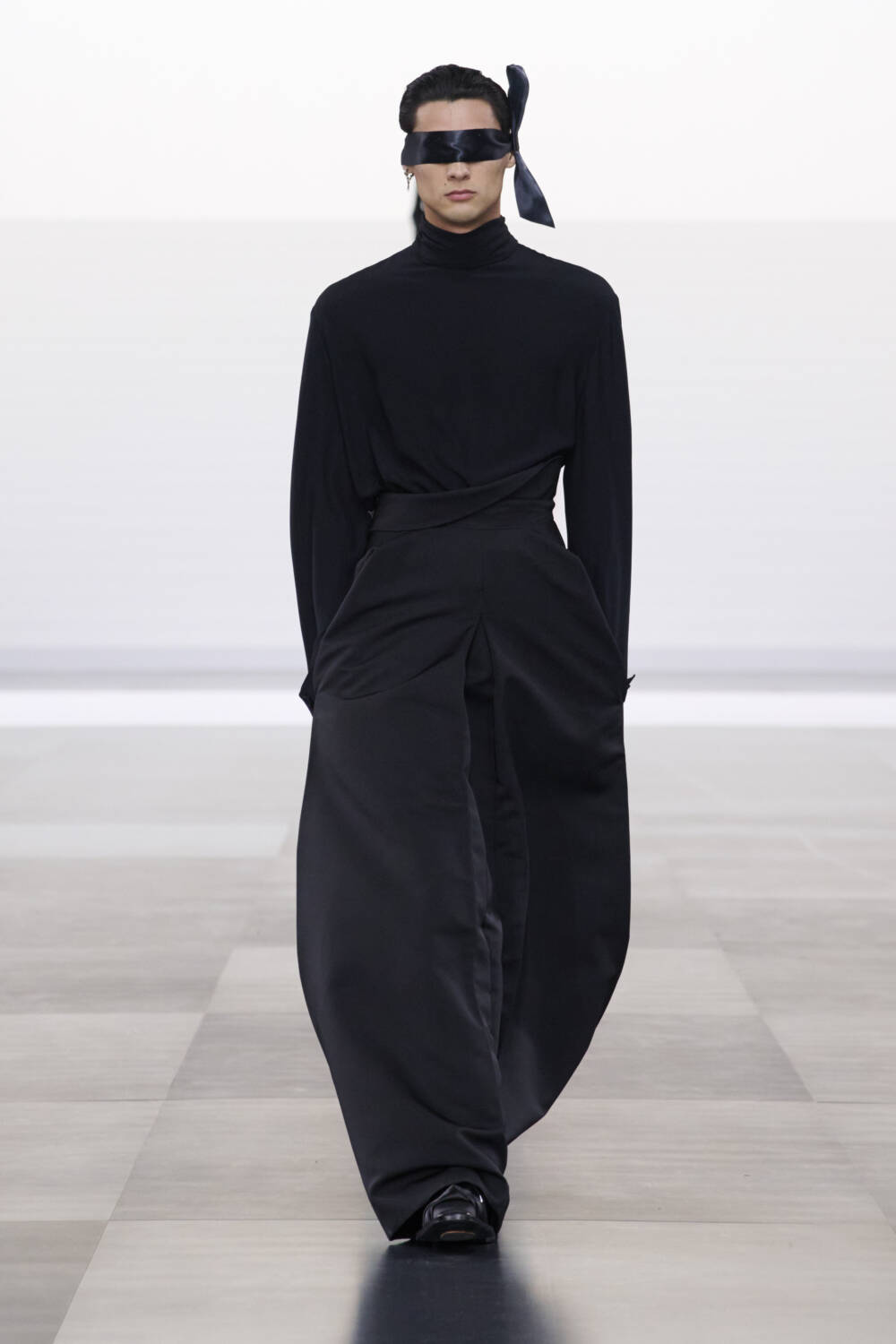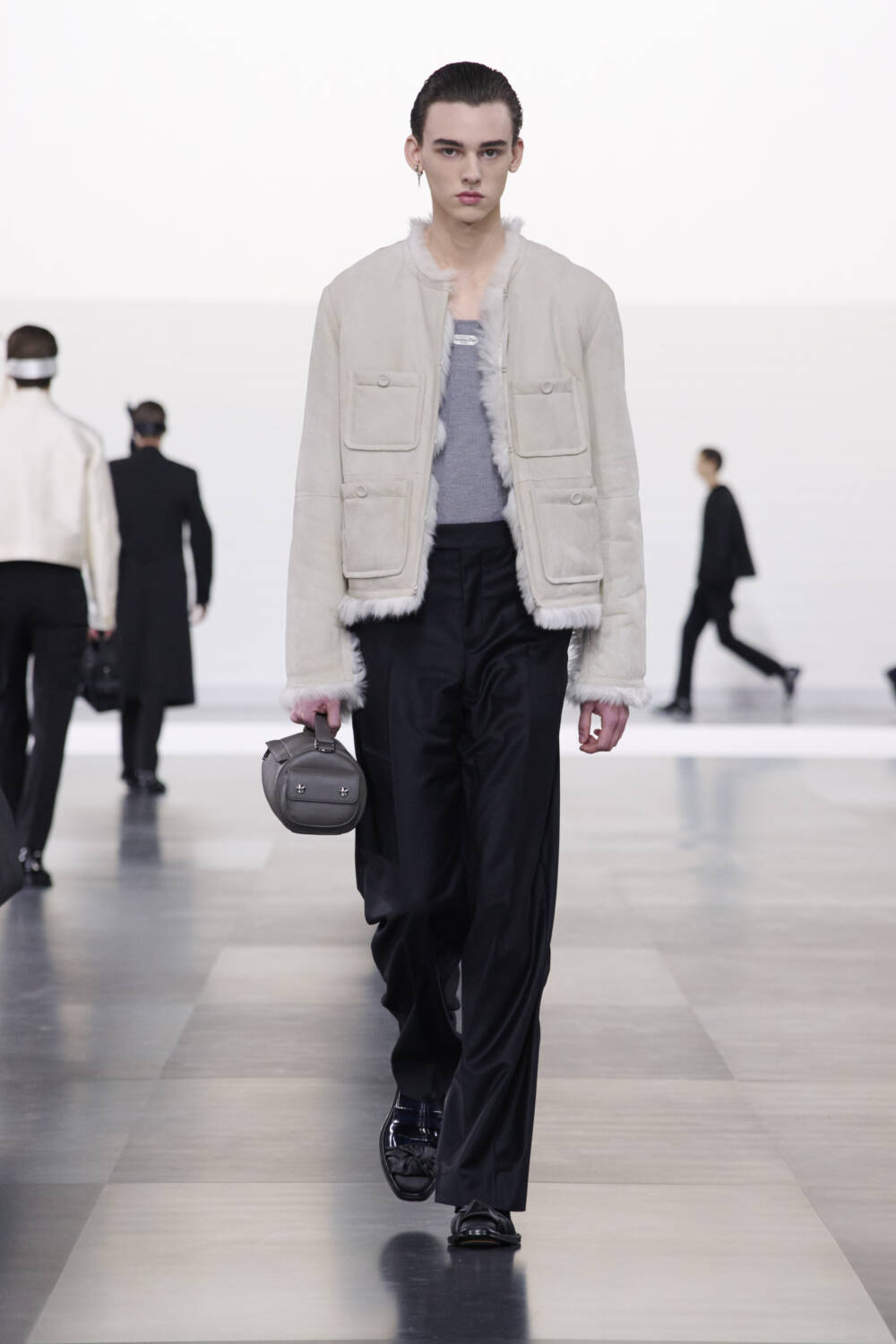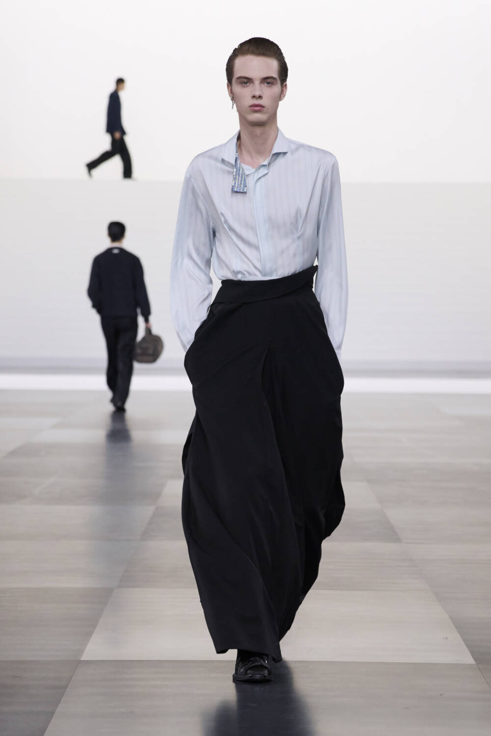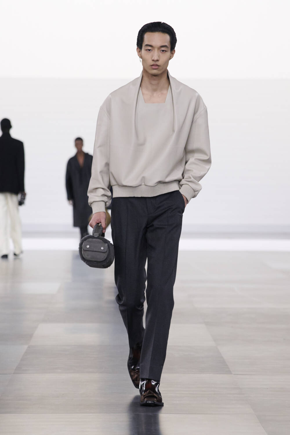 During his tenure at Dior, Kim Jones has been in a continuous design dialogue with Christian Dior himself, cleverly adapting and remixing the hallmarks of the haute couturier to bring an air of romance and grandeur to his modern menswear wardrobe. This season Jones turned to the Ligne H AW54 collection, drawn to its “graphic and angular” moments, “which felt eminently transferable into the men’s world”, said the designer.