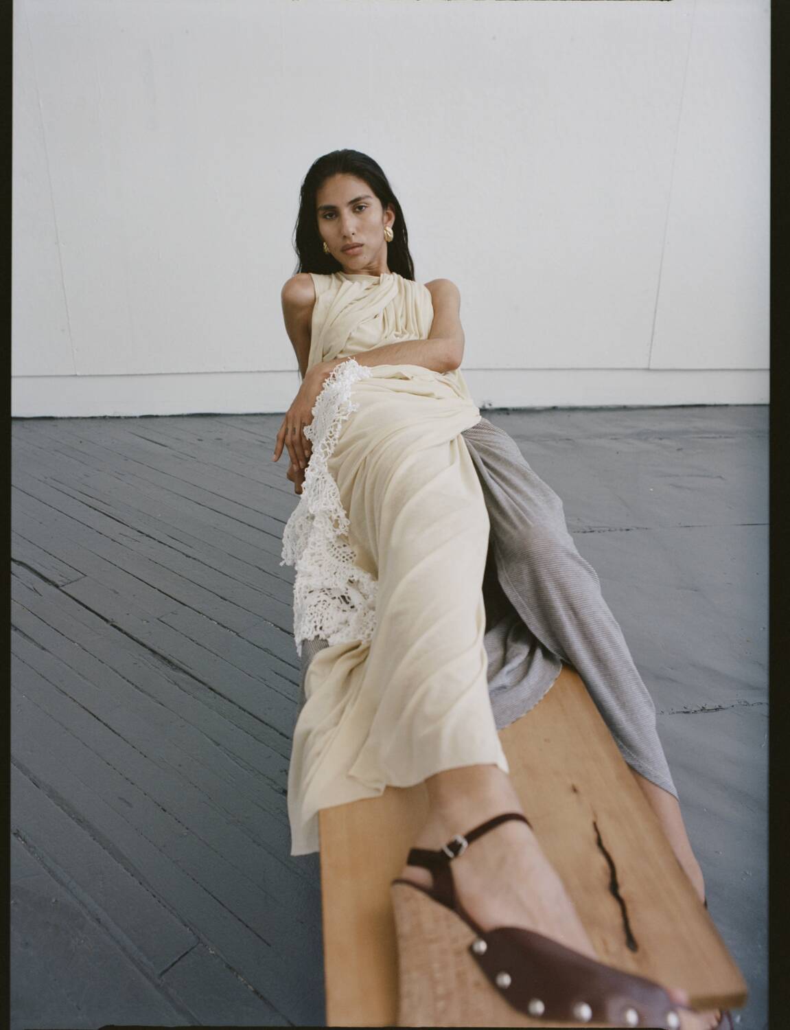 New York-based brand Diotima focused its SS25 collection on reconstructing the warm, ethereal memories of summer. Inspired by the concept of a vivid Caribbean dream, founder Rachel Scott embraced the brand’s core tenet of a seductive interpretation of Jamaican style.