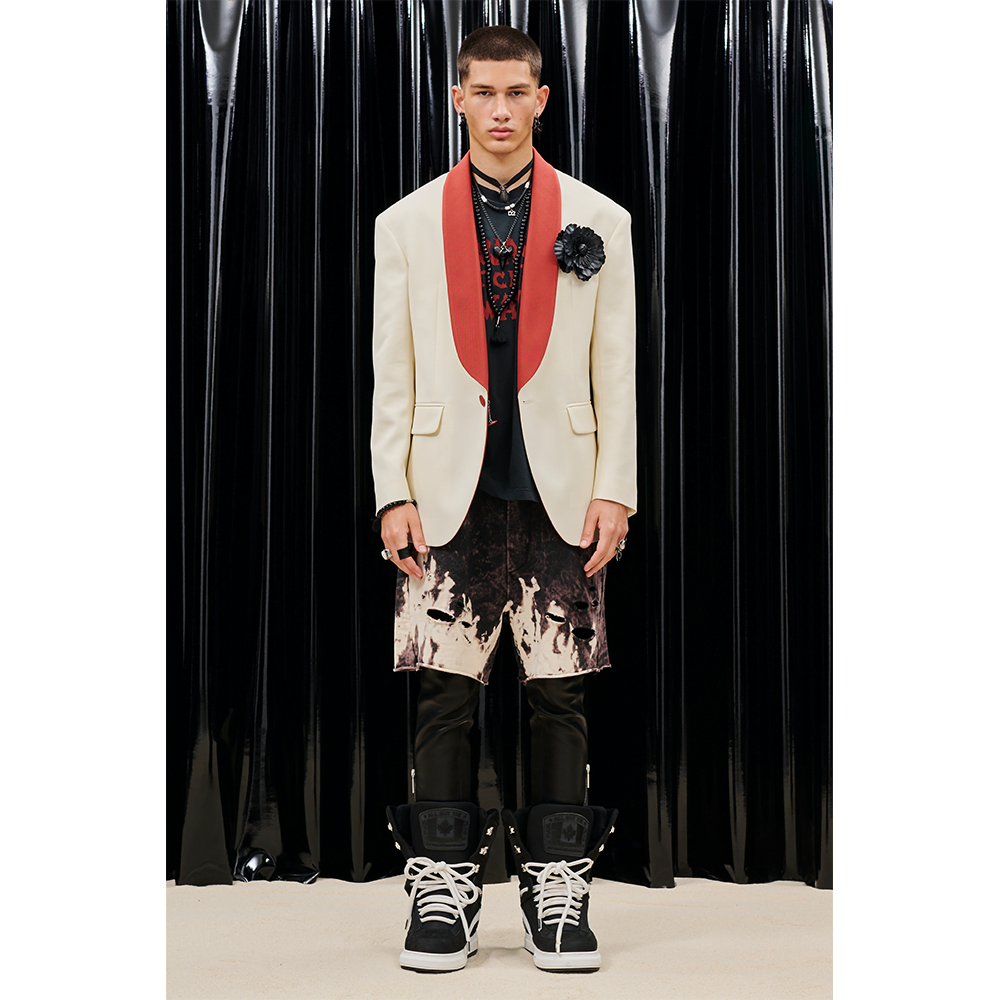 Surf’s up, dude! Dsquared2 is heading to a beach near you with a trunkload of gothic garms fit for your next edgy coastal vacay. The label’s latest co-ed pre-spring/summer 2023 collections act as an ideal wardrobe for rebellious wave riders and eerie nighttime explorers. No matter where you choose to tour next, Dsquared2 is ready to dress your back in a diverse offering that is encompassed by oversized basketball shorts, shredded tanks and seductive suiting.