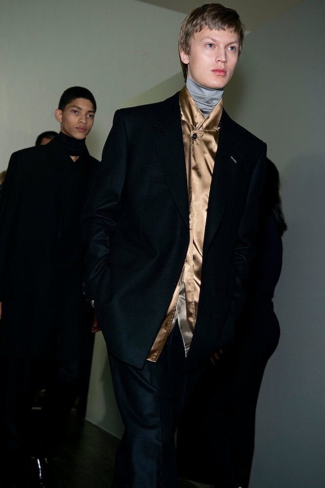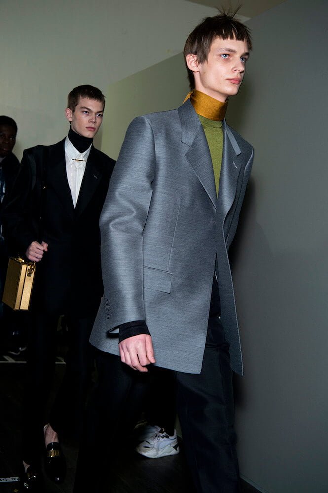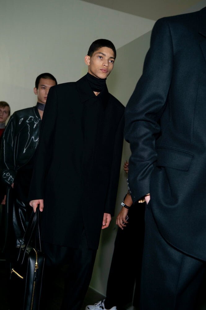 On the frow at Dunhill this afternoon sat Kano and Mike Skinner of The Streets, some of the finest musical exports to come out of Britain in the last two decades. Plonked next to them was James Massiah – a remarkable wordsmith leading the new poetry age – who lent his South London tongue to the show’s soundtrack. Alongside fellow Londoner Moses Boyd, the pair interchanged thoughts on identity, past lives and “feeling free to change your tune.” Change was a key pointer throughout the brand’s AW20 collection, with designer Mark Weston daring the Dunhill man to take a step outside of his comfort zone.