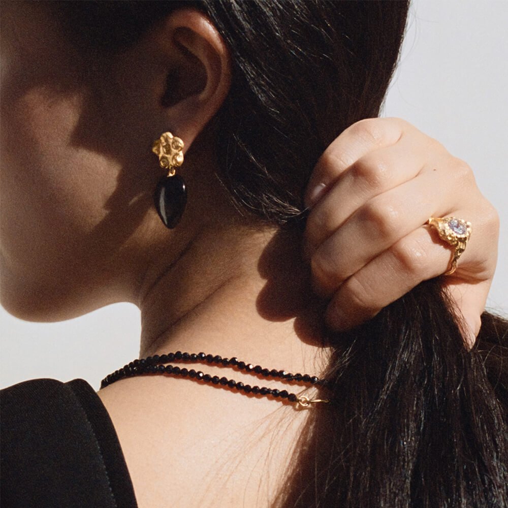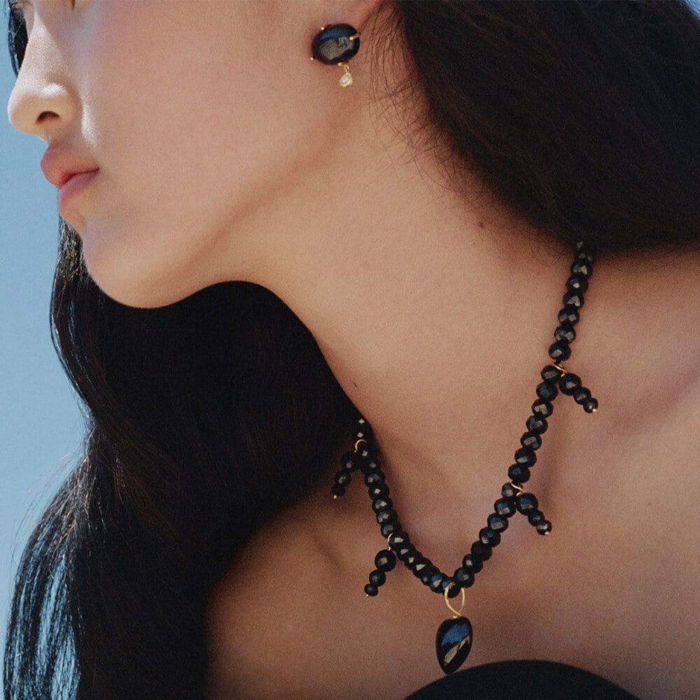 “I have worked with black spinels since I started. There is something mysterious that draws you in when you look at it. The way it catches the light, the way you can work with it and cut it so that gives it a completely different expression. The black heart from the collection is hand cut in a way where the light plays completely different from some of the necklaces in the collection. I love that balance of play in the jewellery. There is something powerful about the stone, it oozes brilliance. It is believed the stone is empowering, and I feel that when working with it.”