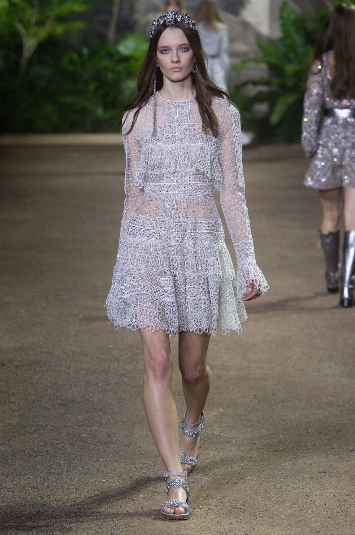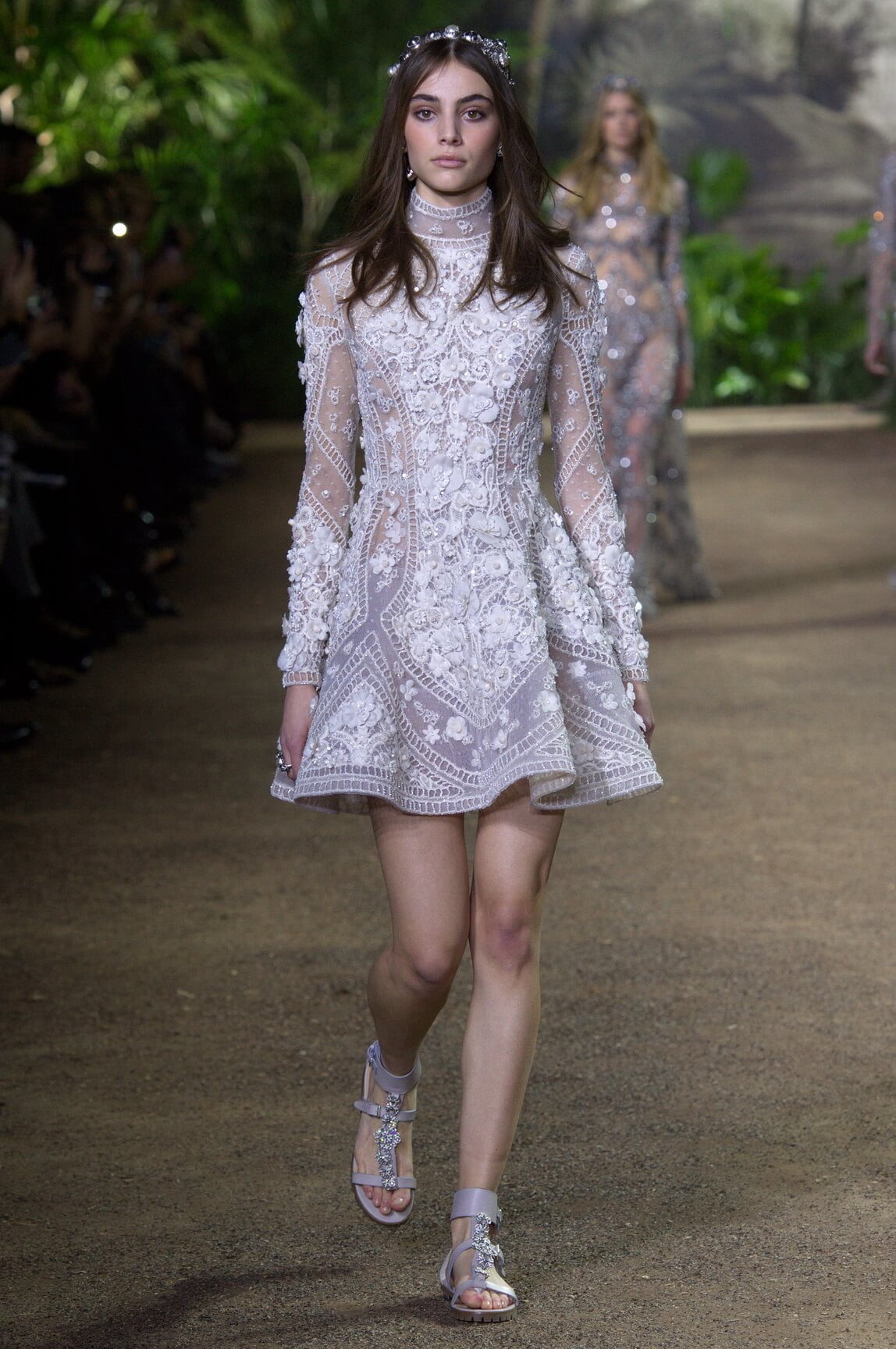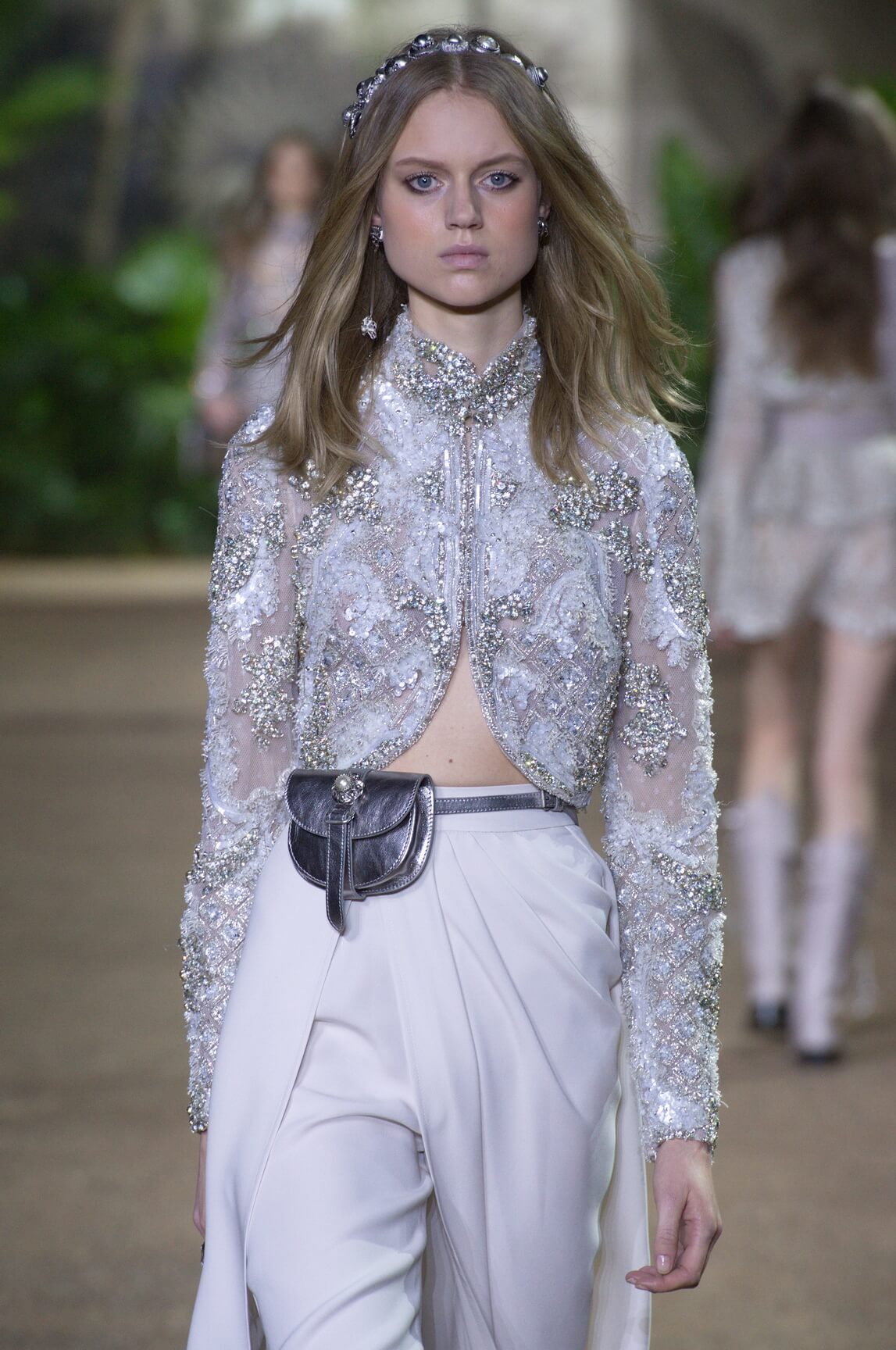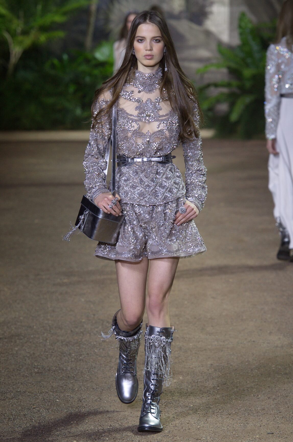 Elie Saab looked to India – Maharanis and Raj ladies, richly dressed in sumptuous layers of embroideries and lace – for his spring 2016 haute couture collection. That wound up transposing the riches of that subcontinent – embroideries, silks, exuberant sari drapes – into dresses that echoed the finest French haute couture. The finale wedding gown, a glittering golden crinoline modelled by Anna Cleveland and draped with a whisper-find tulle veil, was the sublime summation of the approach. The colour palette was muted, shades of white, grey, platinum glitter and a soft Indian Ocean blue the subdued canvas to show off the toiletries for which Saab is internationally renowned, and indeed coveted. This season, there was much ado about fringing, adding un peu d’animation to slender silhouettes with a hint of the Edwardian.