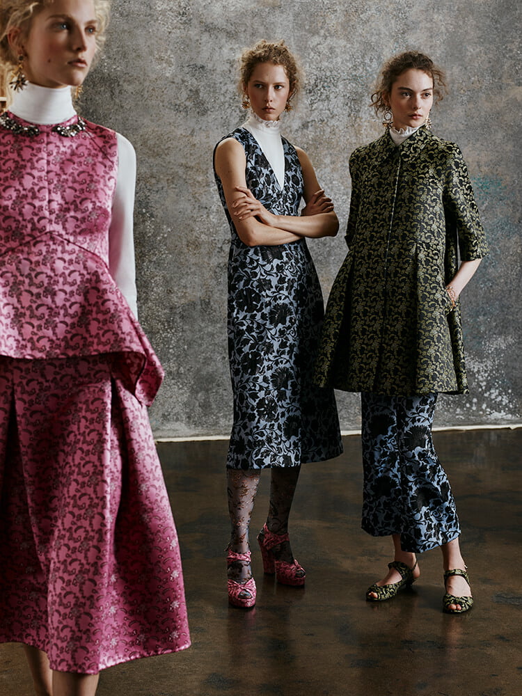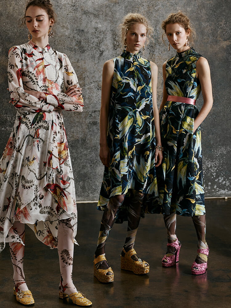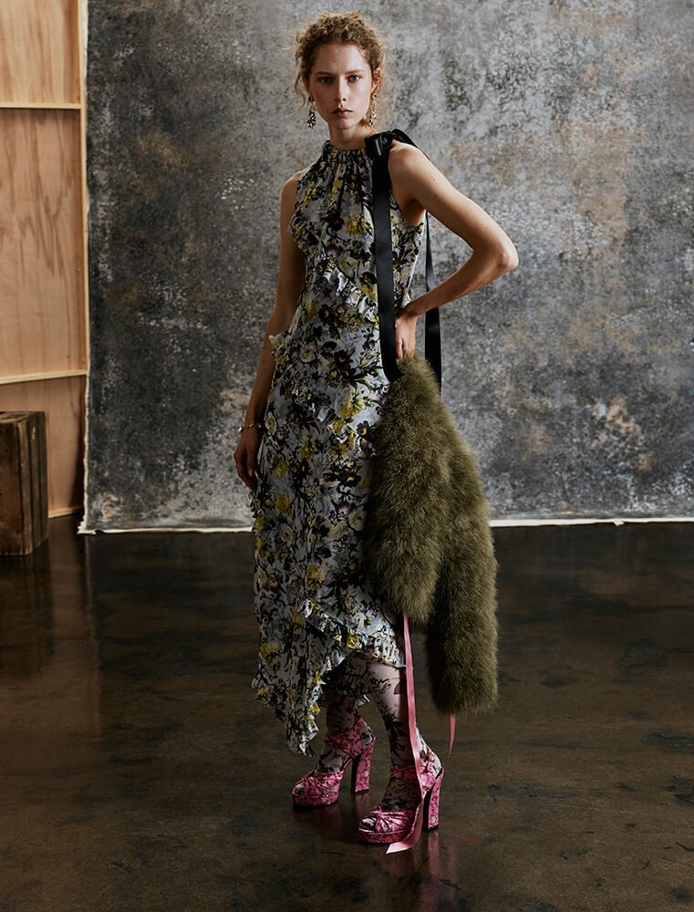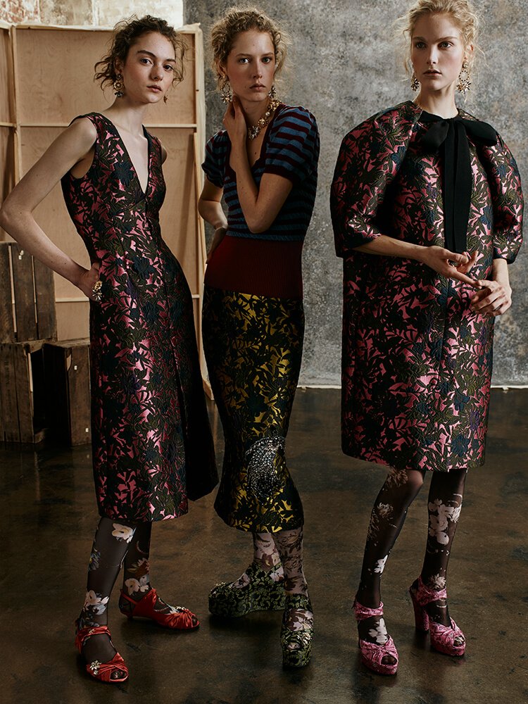 Hello! I’m back (from obscurity) to tell you something obvious. It’s cold. It’s really fucking cold. So cold that I am currently shrouded in my coat. Not because it is cold in Ten Towers, but because I’m a drama queen. But therein lies the problem. How do I show off my fab fashions when they are concealed by my equally fab coat? The fab-ness of said coat tends to wear off quickly when you wear it every day to survive the perishing cold. Well, look no further because Erdem has the answer to that conundrum with his Pre-Fall collection. Well, kinda. Cast your eyes upon the fantastic offerings above. Sparkles, embroidery, floral prints, pussybows, more sparkles. How could anybody miss those, even underneath a big winter coat. And speaking of coats he’s done those too. Big, colourful, furry creatures that you’d never want to take off. Even in the summer. So for anybody reading who is stuck on what to get me for Christmas, it’s this. All of it. Thanks Erdem.