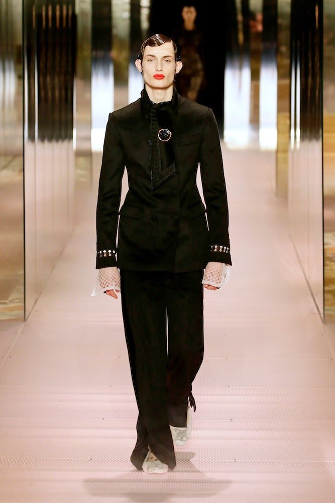 What a way to start. Demi Moore in an off-the-shoulder, black silk tuxedo christened Kim Jones’ new era at Fendi. His first Couture show for the house will go down as one of fashion’s most epic debuts.