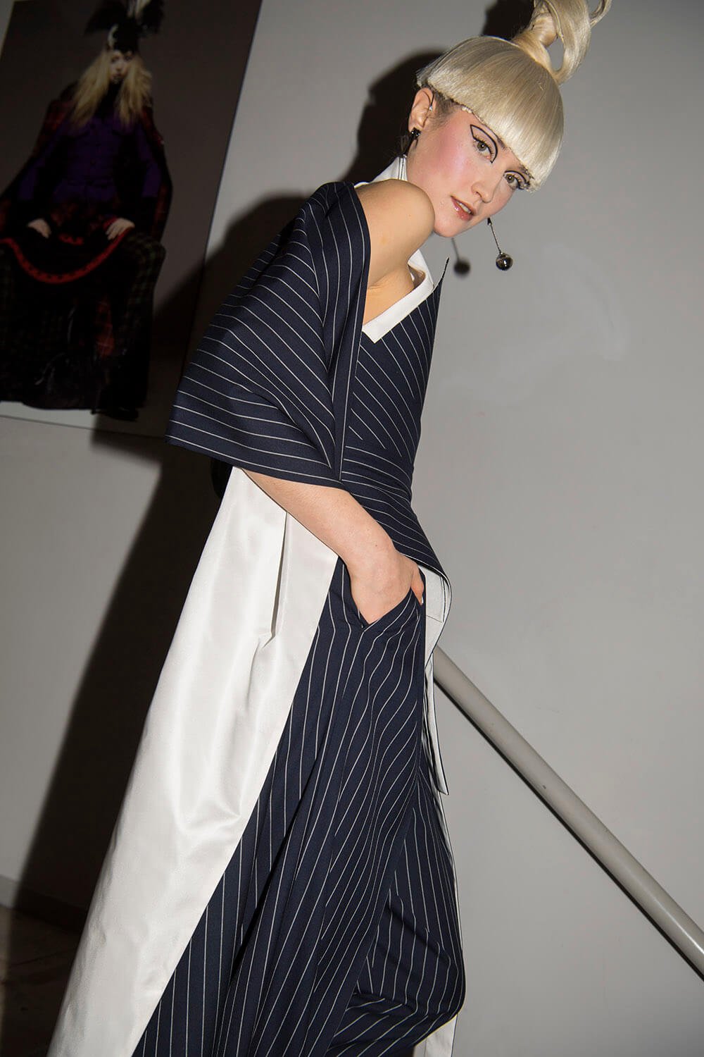 Slashed and sliced meticulously, from waists on jackets to ribbon dresses to detail on boots. Clever cutting, clever revealing and concealing. It was refined right through the asymmetric tailoring with one shoulder jackets and waistcoats, totally lean and clean to the coloured tiered fringing sashaying. It was contemplative Gaultier, and although we’d like to quote Madonna here, really it was more of a Jean-Michel Jarre affair. Ambient, modulating synthesised vibrations. Slinking down that runway to the sounds. Simple. Controlled. “Even though I like the fashions of the past and am constantly looking to the future, my main influence is what’s happening today,” he said. “Fashion must correspond to the aspirations of the moment and reflect current events.” Because right now we want to take charge. And so it was handled with care, in the most Gaultier way possible. As Garth informs us, “They have the same hair style as Milk from Ru Paul Drag Race All Star.” Provocatively considered.