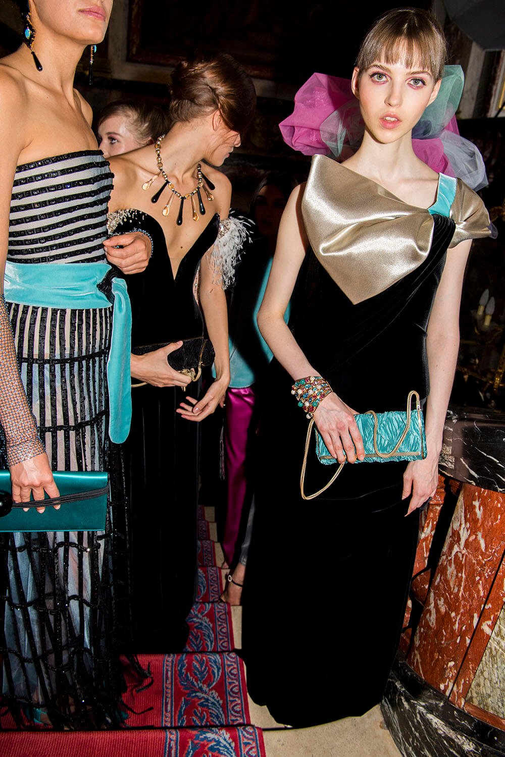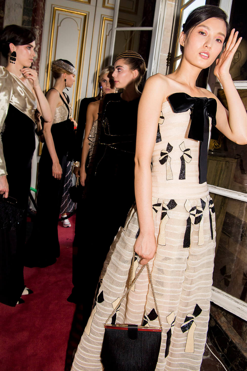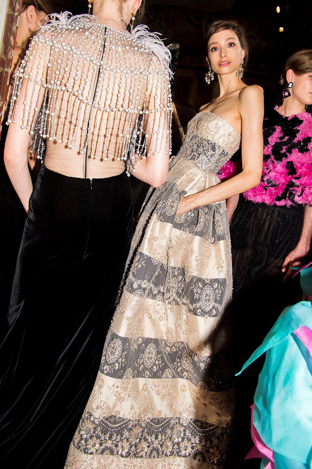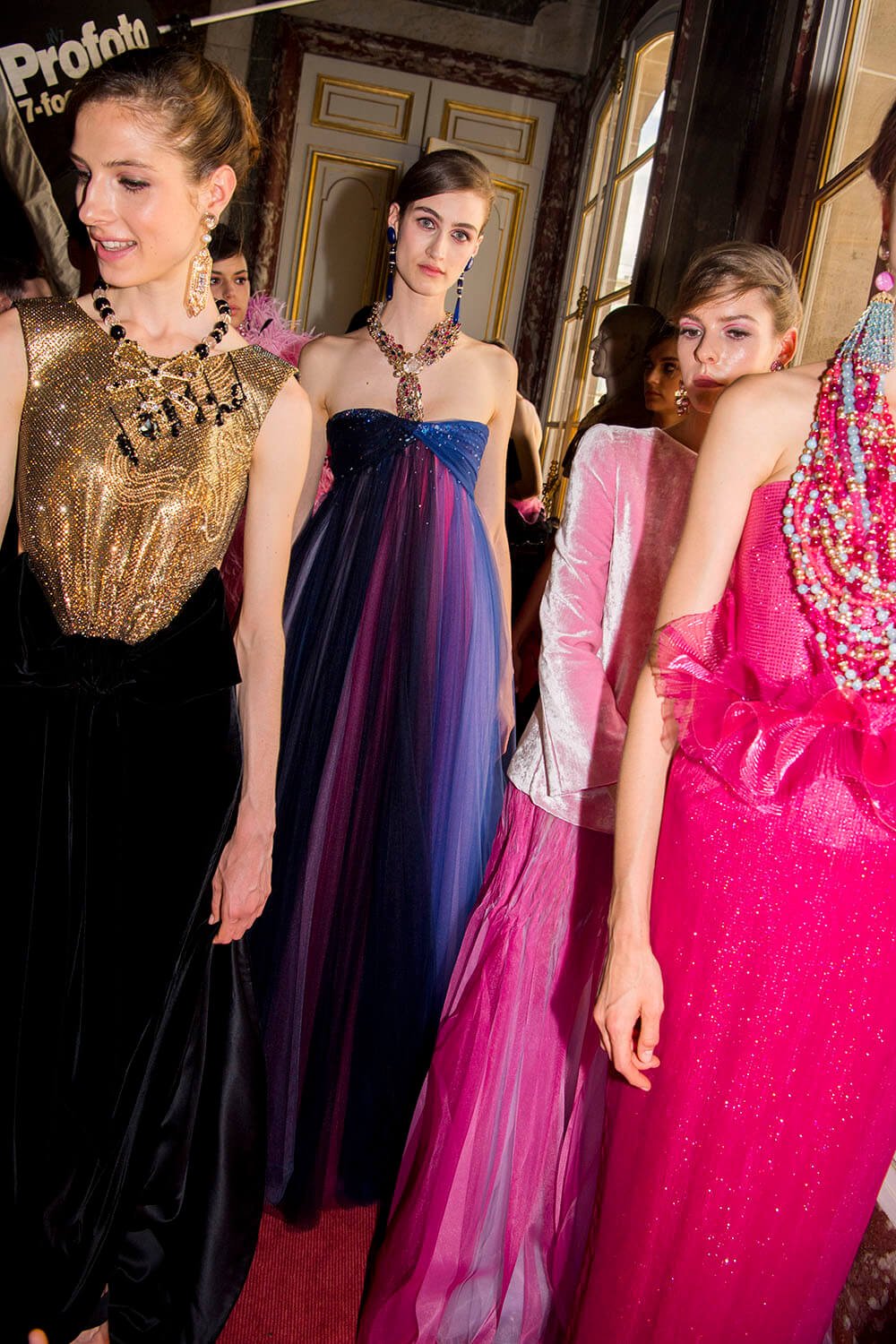 Mr Armani was on a mission. “Conveying to the younger generation the true meaning of couture,” was the maestro’s intention. This 94-look collection was an epic exercise in show and tell. This is how it’s done, kids. Haute elegance, haute refinement, haute guest list (Hi! Tina Turner and Elizabeth Debeki). Presenting salon style (up close and personal) at the Italian Embassy (marble for days), Armani flexed his couture muscles. Every piece was a masterclass in cut, fabrication, detail, refinement and taste. The show covered all the bases. There was effortless daywear for the pulled together trouser-suited Alpha-woman and a whole section devoted to devastatingly chic black velvet gowns. Armani has his moments of play – a fantastical pink fuchsia feather cape nearly stole the show. He also had his moments of levity, opening with a passage of precision cut jackets. Armani served-up high romance with full-skirted gowns made from hundreds of metres of gathered tulle and fashioned pretty pink princess dresses with nipped-in waists and generous skirts. There were countless red carpet “Wow!” moments. Models slunk through the embassy’s grand salons in sinuous columns encrusted with glimmering crystals and beads. What came to the fore was the discipline of Armani’s taste and his commitment to elegance. As he took his bow, the lithe 83 year old designer bent down to pick a fallen feather off his immaculate runway. He’s a perfectionist and with this collection it really showed.