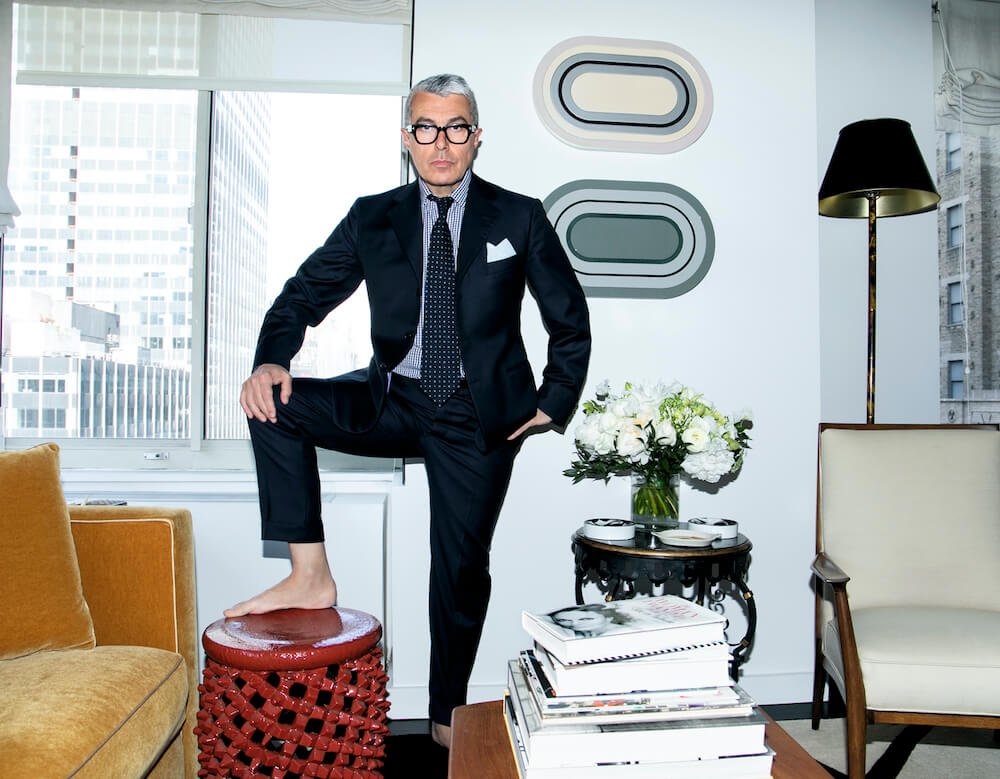 “I like the location in Turtle Bay, Manhattan, and I have beautiful light. I’ve kept a place here for 20 years on the 26th floor. In Europe we don’t have this eagle’s view. I don’t have a terrace – I would be terrified – but I think at this point in my career I deserve the light. I am surrounded by the things I like in New York. My home is almost like a flea market. It doesn’t matter if it’s a little puppet I bought at the vintage market or a nice painting or a nice chair, I don’t care if my things are co-ordinated, but it cheers me up when I wake up being surrounded by the objects that I like. That, and good Porto sheets.”