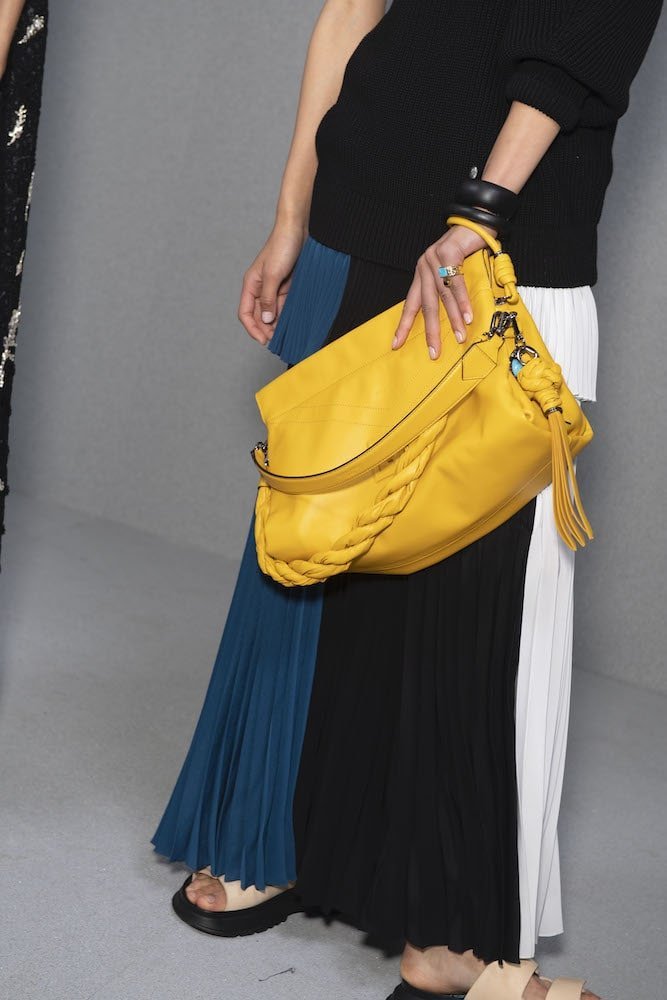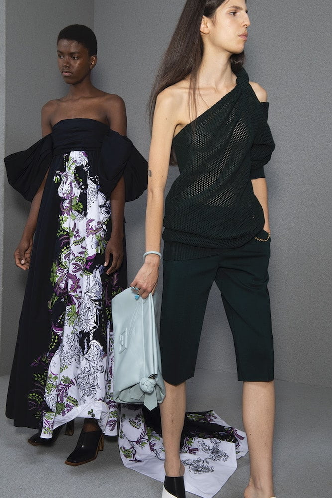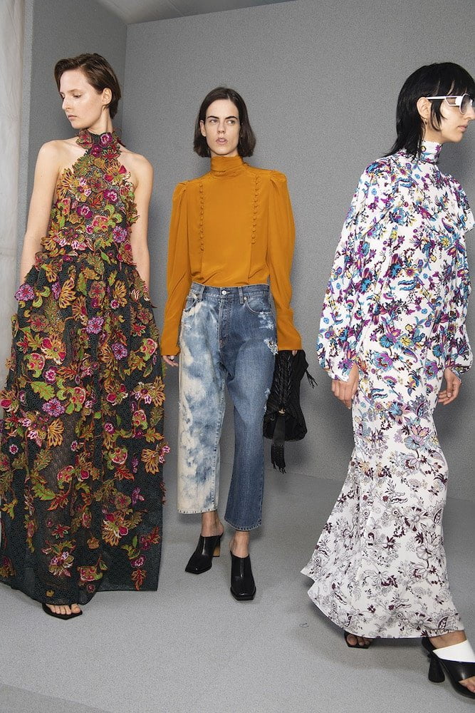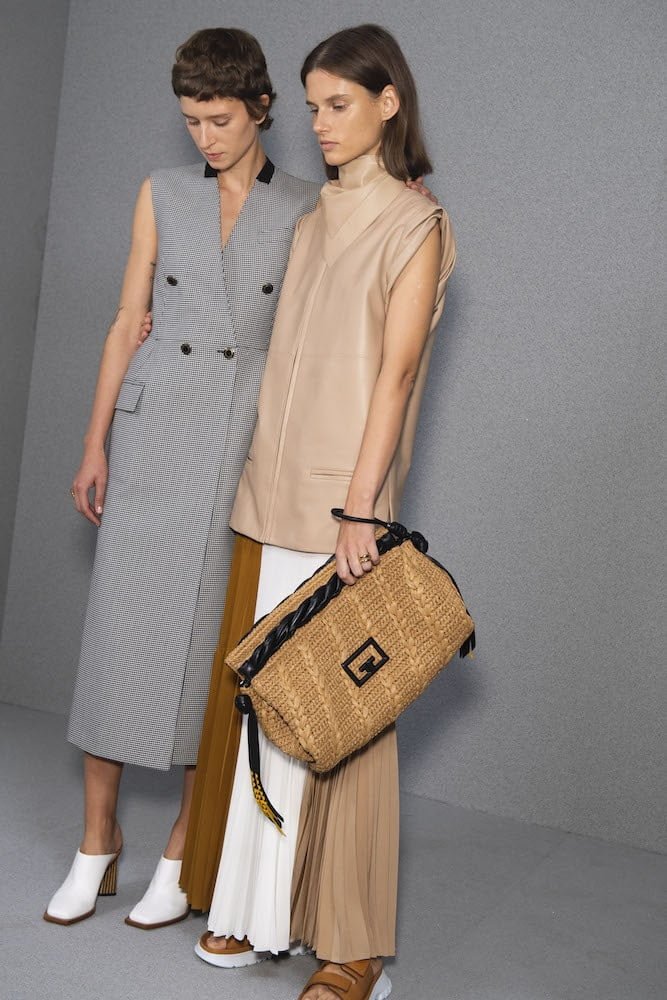 The clue to the big story for Givenchy’s Clare Waight Kellerwas on the invitation: a swatch of frayed denim. The designer’s SS20 collection featured several pieces in upcycled denim. Denim hot pants tailored coats, boyfriend jeans and maxi skirts brought a grounded reality to this show and a sense of the individual. When they reach the shops, each patched-together piece will be different from the next. The designer explained that her intention was to bring a sustainable element to the collection and she pointed out that the jeans are all 1990s vintage. She drew heavily on memories of that time when she was in New York, working with Calvin Klein, in his Kate Moss Obsession-era pomp. The collection was called NY Paris 1993 and the designer pitched it as a conversation between Klein’s sophisticated minimalism which set the tone for that era and Parisian couture.