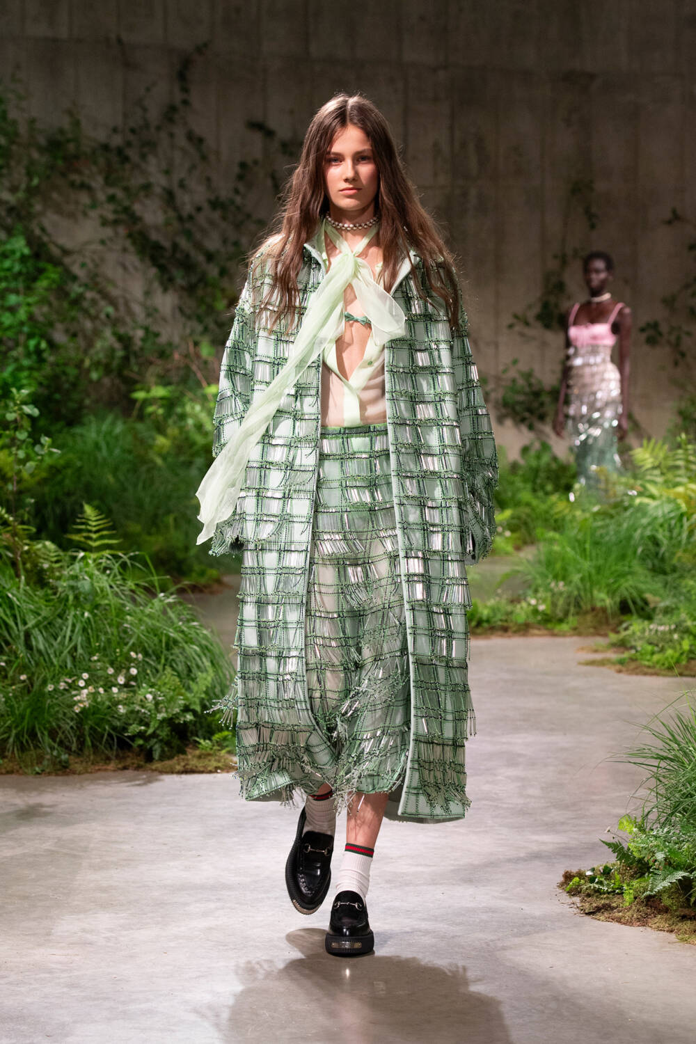 “Englishness with an Italian accent,” said Gucci’s Sabato De Sarno of his first destination show for the Italian mega brand. Gucci’s Cruise ’25 was held in the “tanks” of London’s Tate Modern, where the concrete vastness of the underground space was transformed, over five days, into to a lush garden by an army of horticulturalists, (with all the plants donated to community projects after the show).
