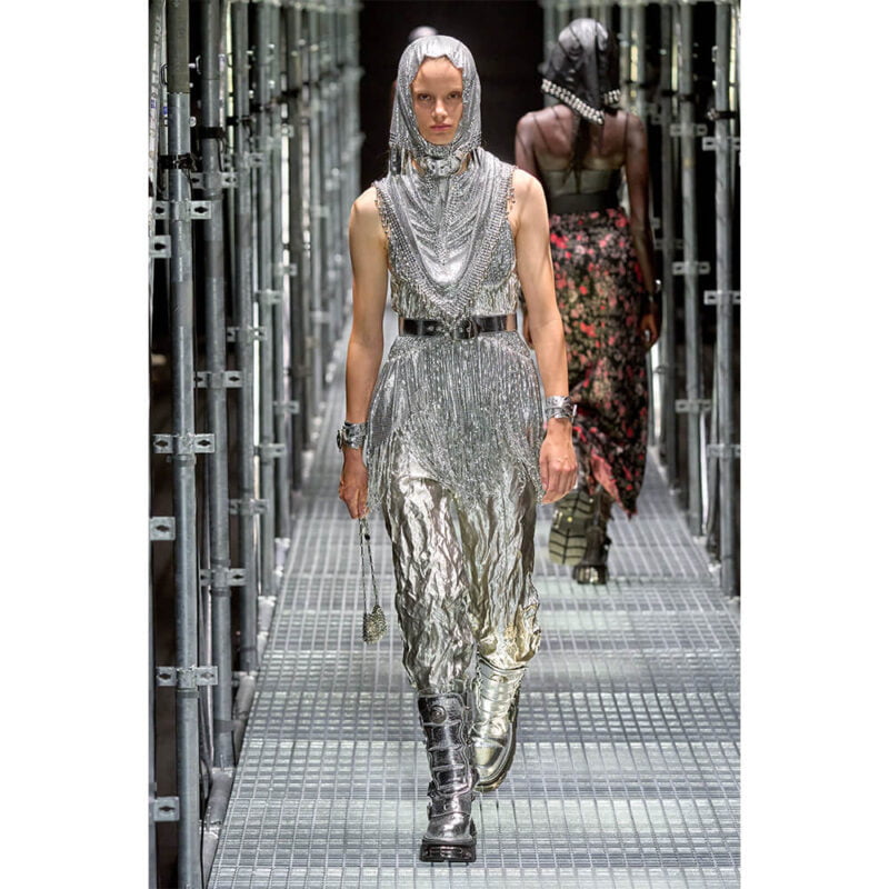 Why be a damsel in distress when you can save the day yourself? Like these Paco Rabanne chainmail and beaded pieces, you can transform into the bravest figure at the ball; a hero in heavenly style.