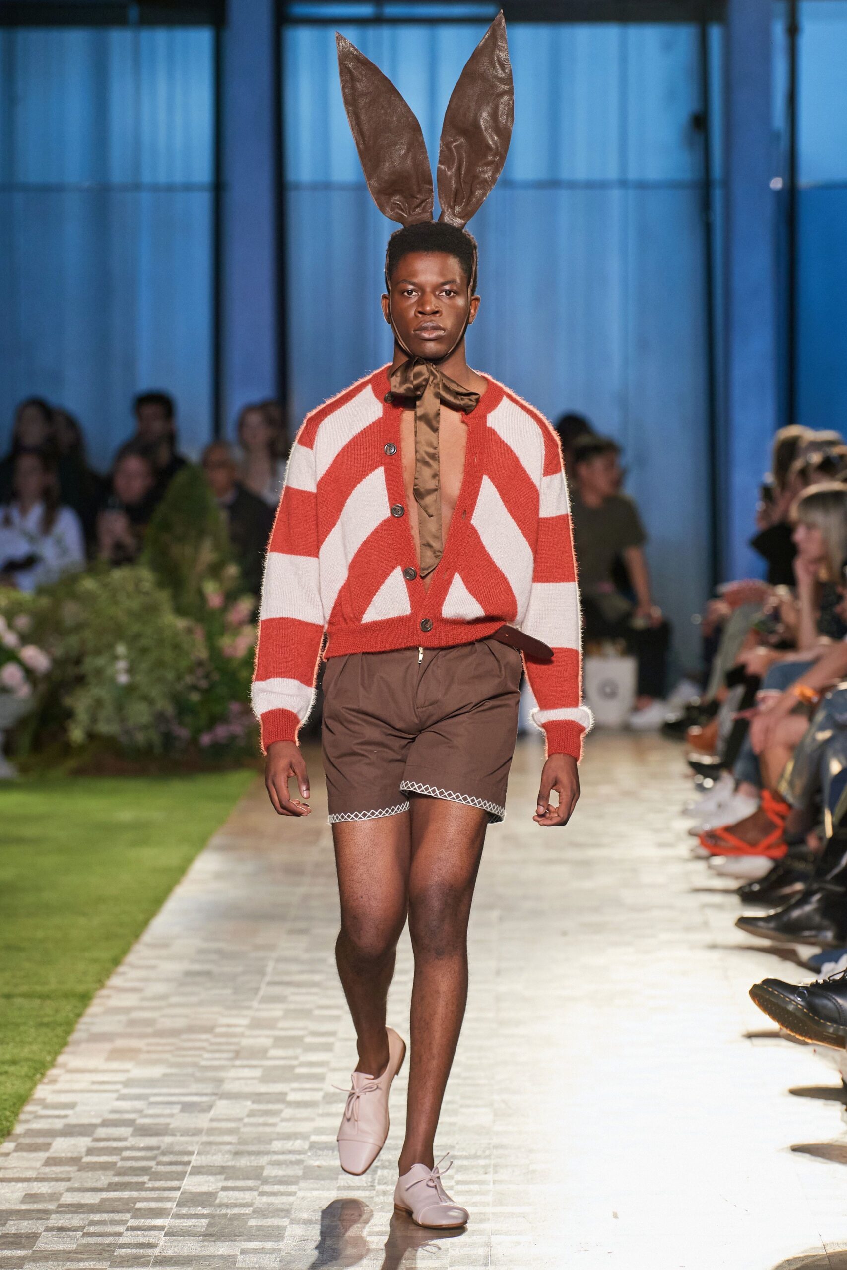 Newly appointed CFDA director Thom Browne’s SS23 collection was an avant garde affair and with this pompous periwinkle look, you’ll be granting everyone’s wishes. Like the fairy godmother from Cinderella, Thom Browne will have you bibbity-bobbity-booping and bopping around all the parties.