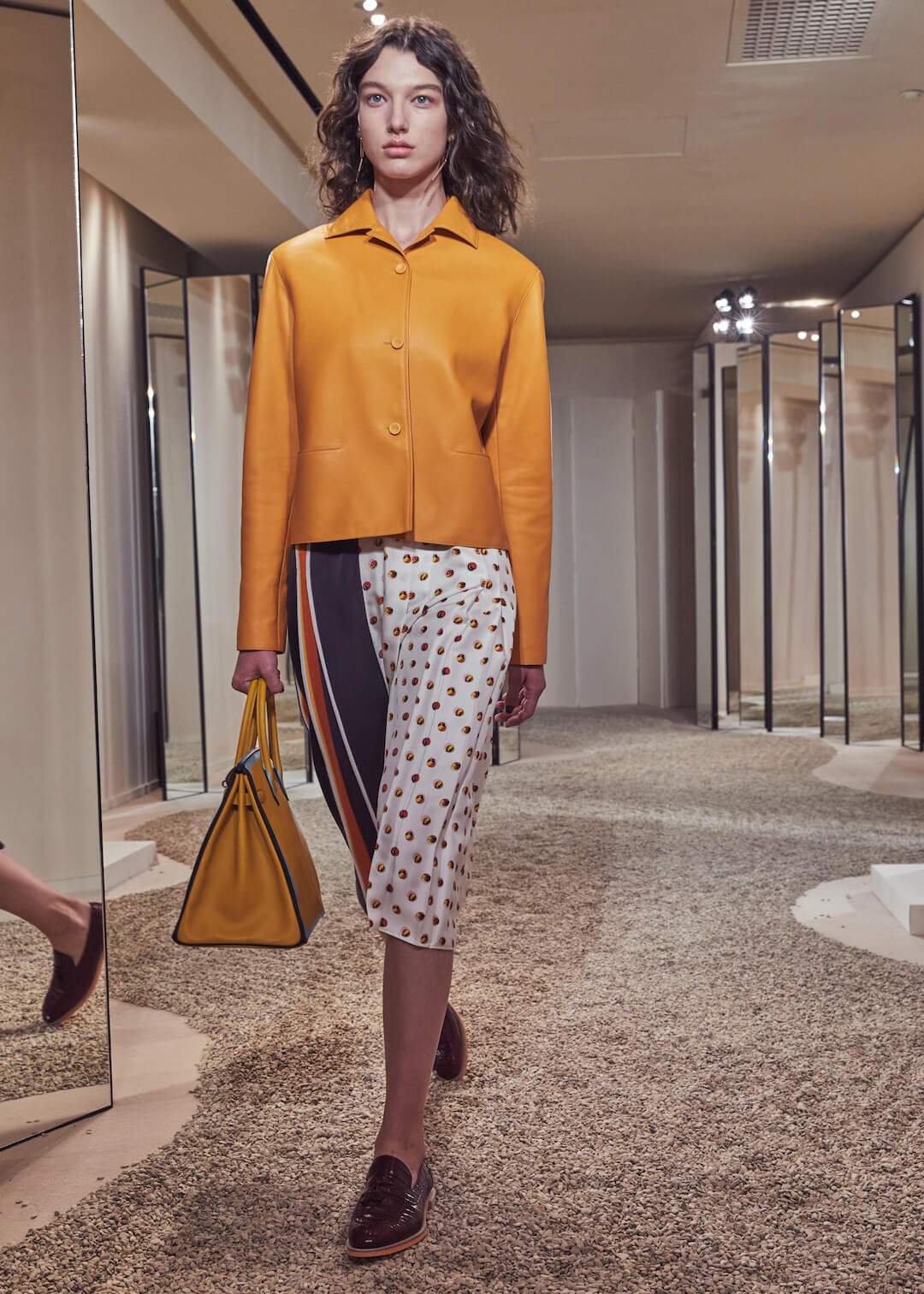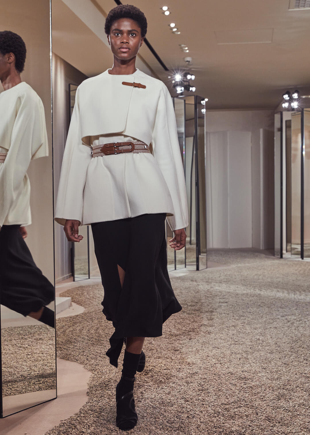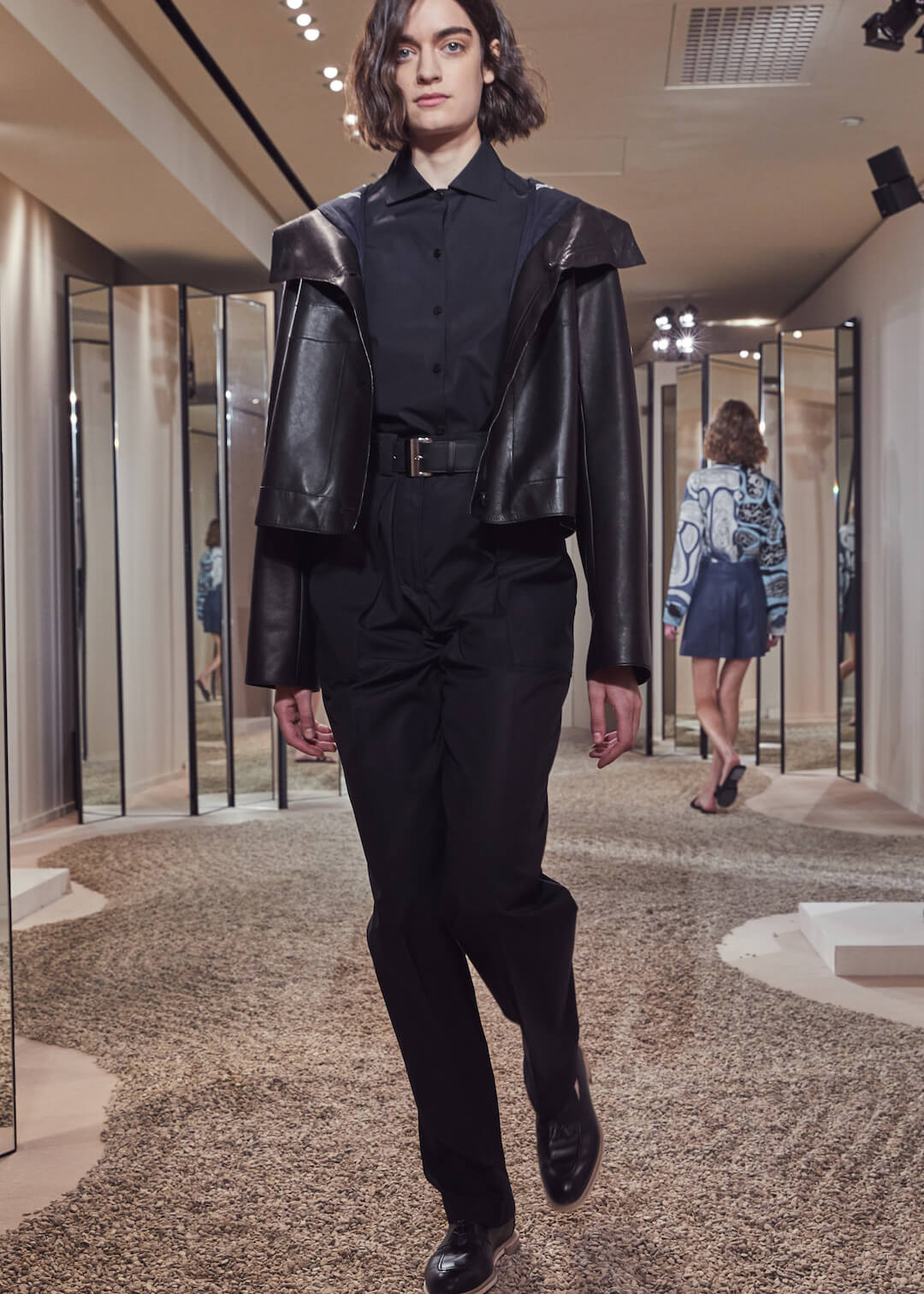 But what Nadège Vanhee-Cybulski is so adept at as Artistic Director (the first woman in the role) is taking the things that Hermès is known for – incredible leather, for one, those silk scarves, accessories – and refiguring the clothing that isn’t far from everyday life into something wholly, eye-wateringly luxurious. And it’s that mix that gives her womenswear an ease that is so appealing – to the casual viewer and the customer alike. The woman next to me was one of those – she’d flown in from Germany especially – circling away furiously at the looks she wanted to buy. And what better measure of a luxury house’s success than that? The will to buy buy buy? Nadège may not present clothes with fanfare – but she’s on to a very good thing.