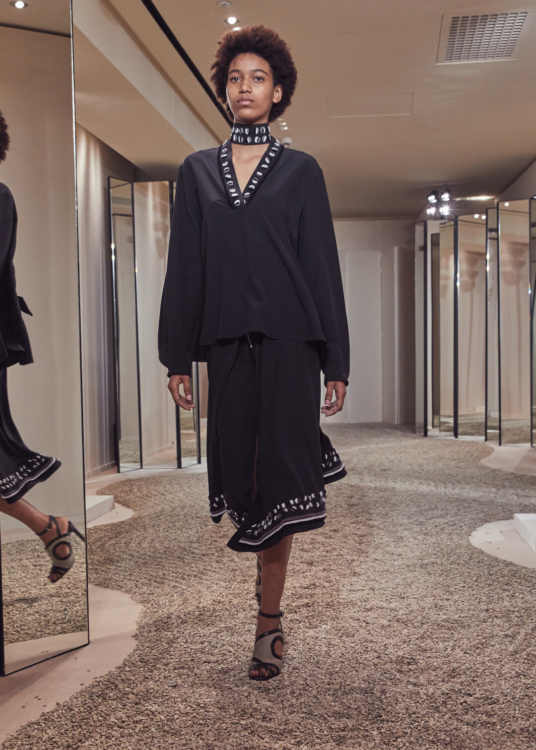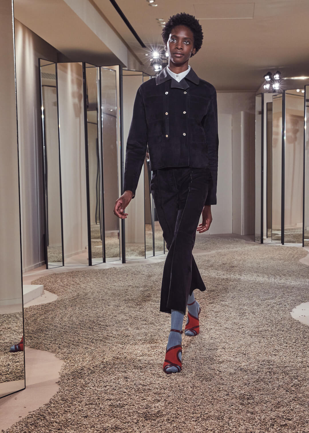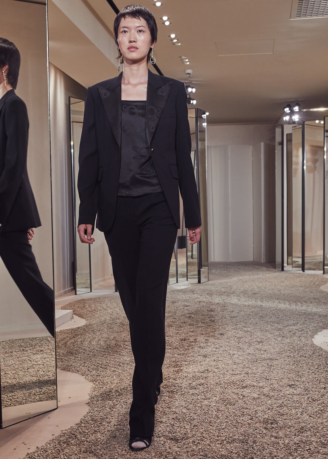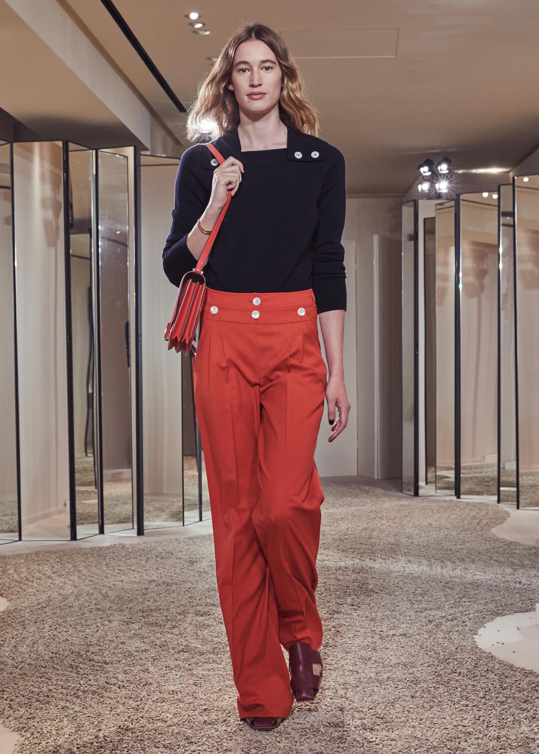 But what Nadège Vanhee-Cybulski is so adept at as Artistic Director (the first woman in the role) is taking the things that Hermès is known for – incredible leather, for one, those silk scarves, accessories – and refiguring the clothing that isn’t far from everyday life into something wholly, eye-wateringly luxurious. And it’s that mix that gives her womenswear an ease that is so appealing – to the casual viewer and the customer alike. The woman next to me was one of those – she’d flown in from Germany especially – circling away furiously at the looks she wanted to buy. And what better measure of a luxury house’s success than that? The will to buy buy buy? Nadège may not present clothes with fanfare – but she’s on to a very good thing.