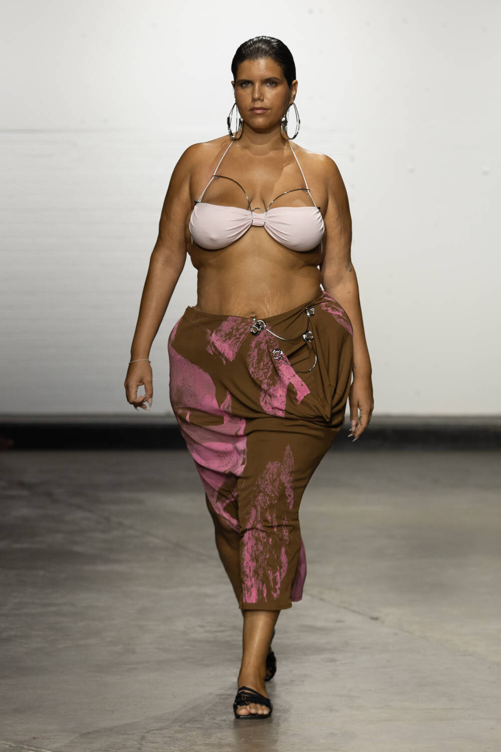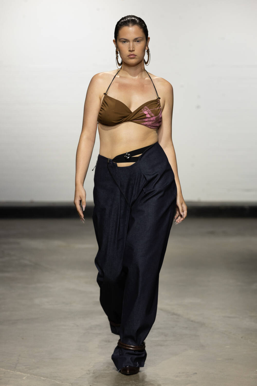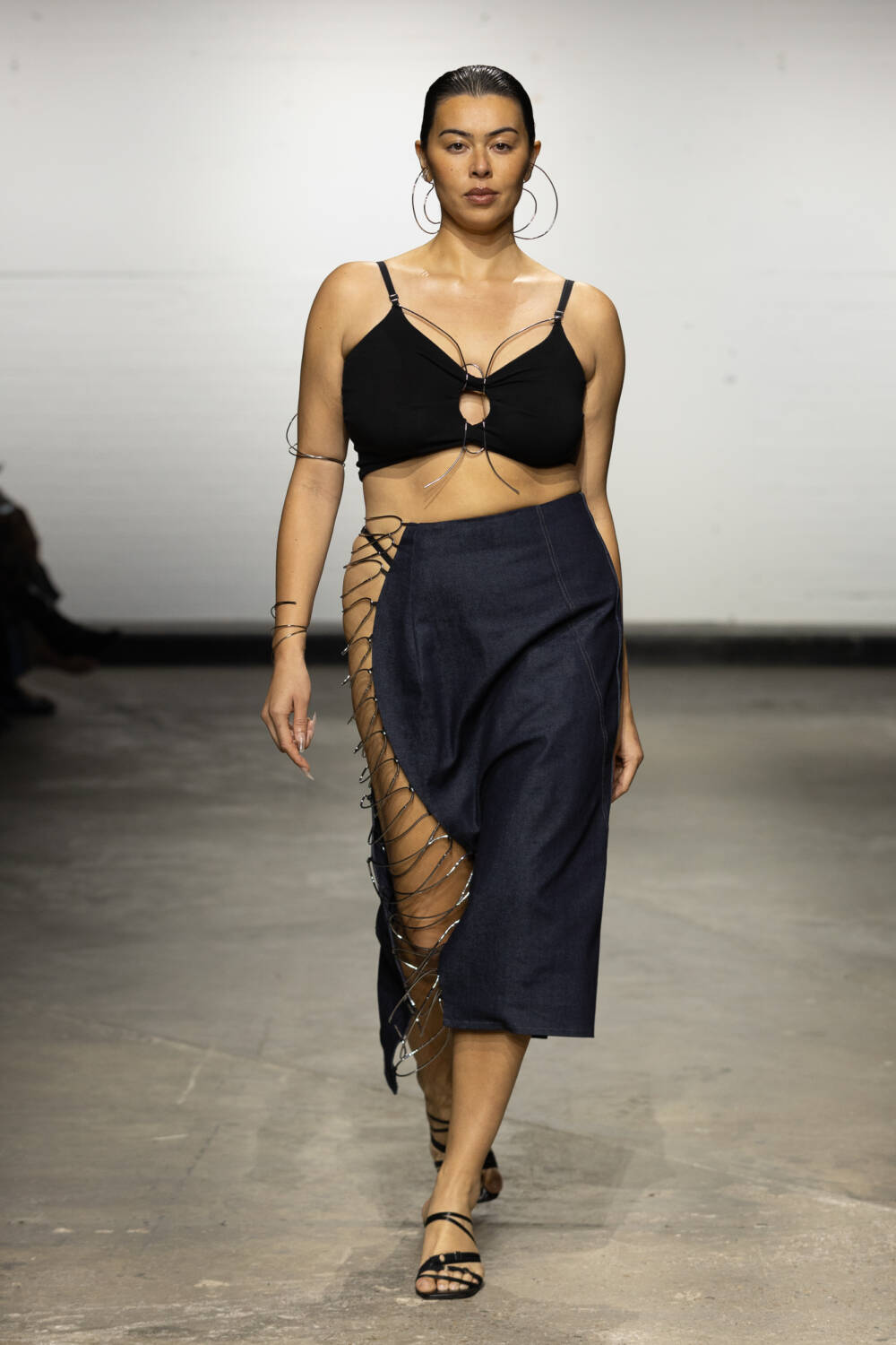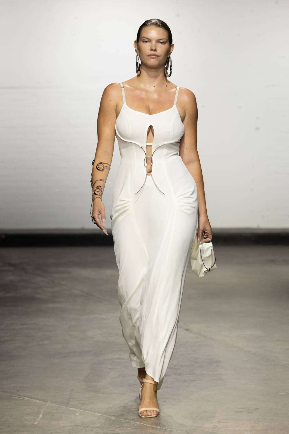 Set to a booming bassline of Brazilian beats, the collection was a sophisticated blend of flowing jersey dresses, sleek hooded bodysuits à la Grace Jones and more casual denim skirts and wide-leg trousers. All spliced and reconnected with signature sculptural hardware, this season created in collaboration with Brazilian jewellery designer Carlos Penna.