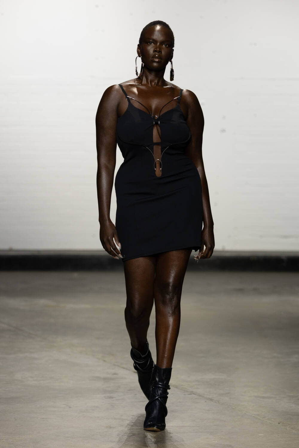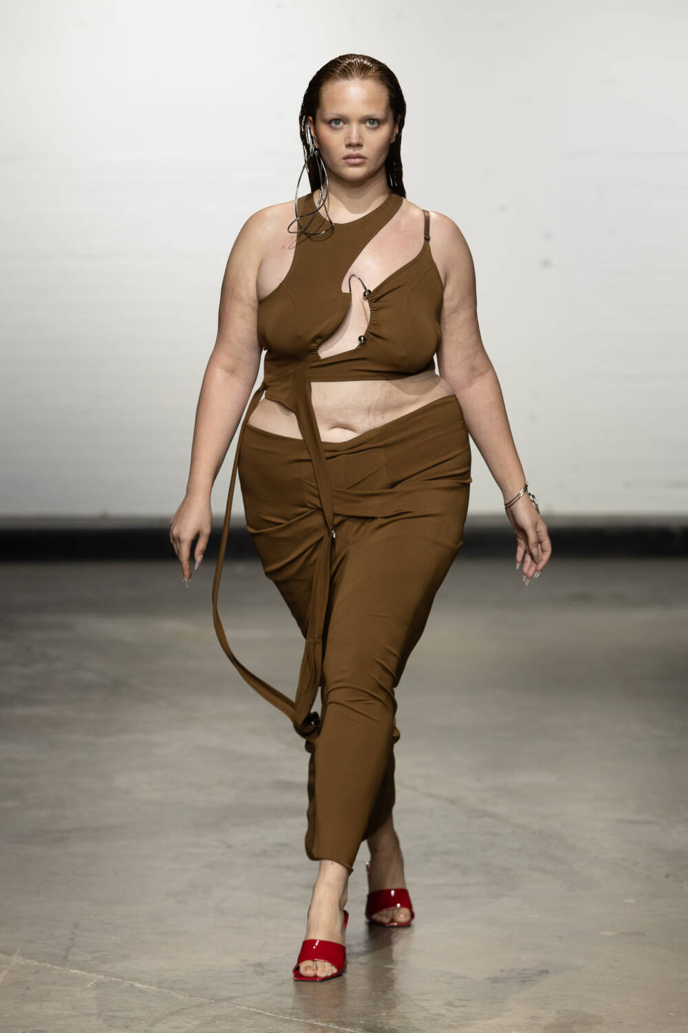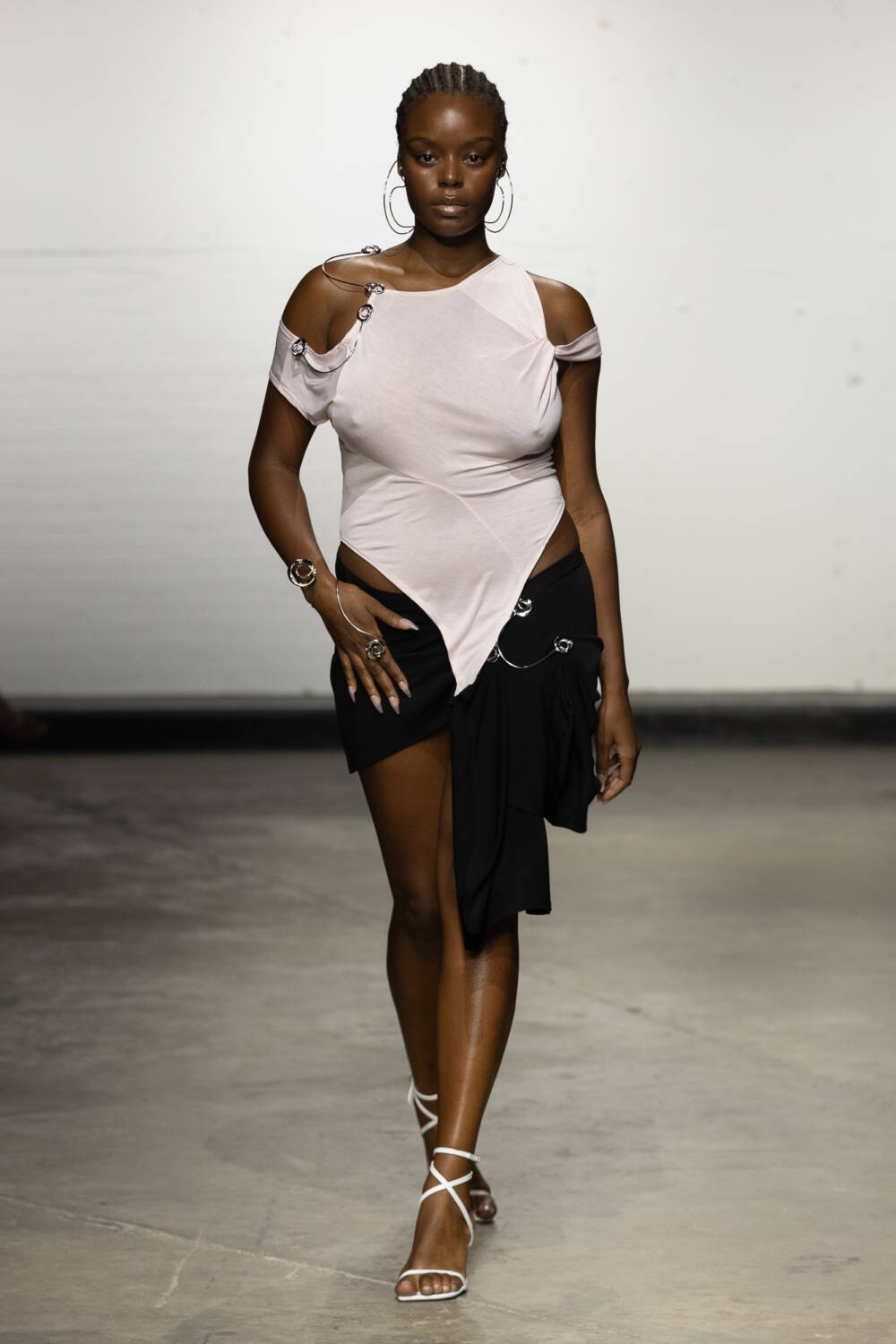 Set to a booming bassline of Brazilian beats, the collection was a sophisticated blend of flowing jersey dresses, sleek hooded bodysuits à la Grace Jones and more casual denim skirts and wide-leg trousers. All spliced and reconnected with signature sculptural hardware, this season created in collaboration with Brazilian jewellery designer Carlos Penna.