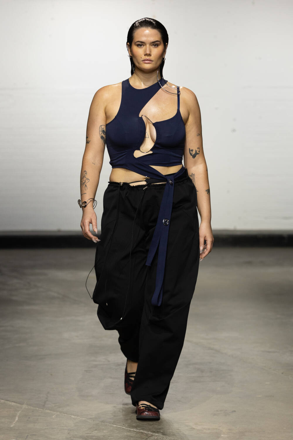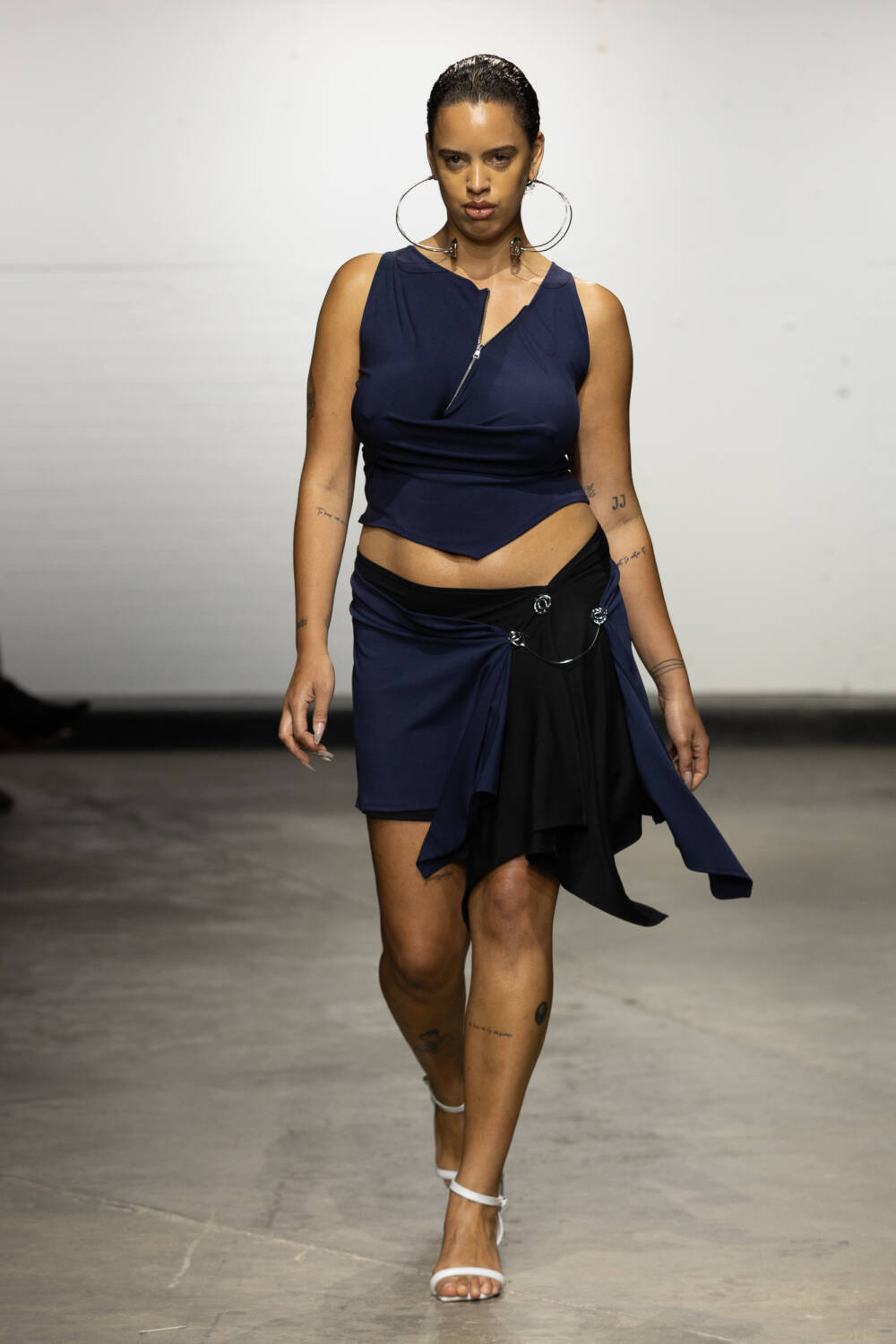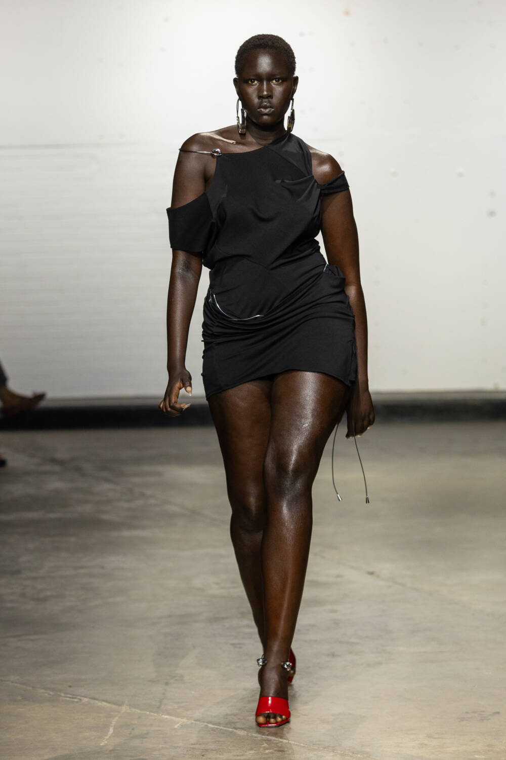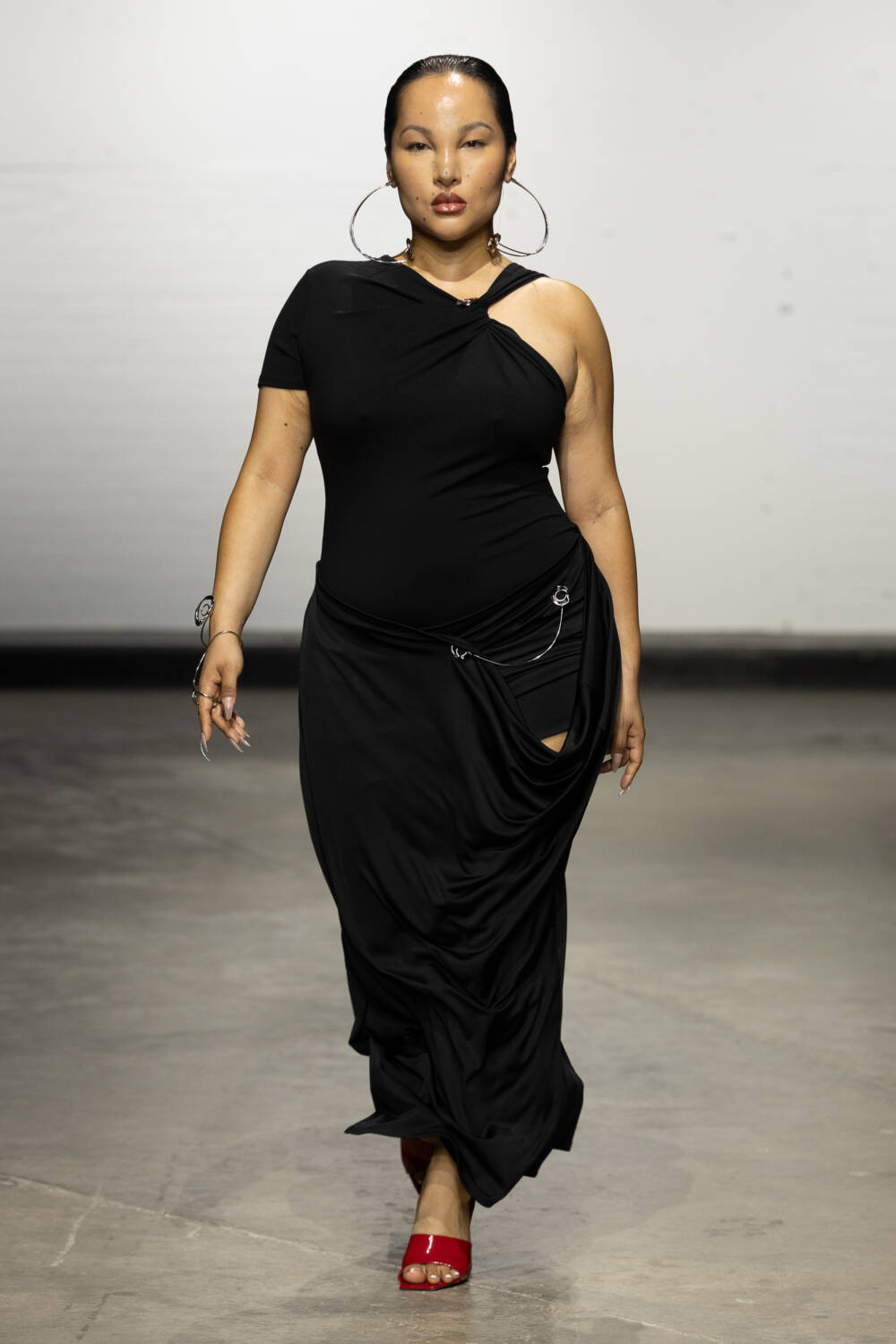 Set to a booming bassline of Brazilian beats, the collection was a sophisticated blend of flowing jersey dresses, sleek hooded bodysuits à la Grace Jones and more casual denim skirts and wide-leg trousers. All spliced and reconnected with signature sculptural hardware, this season created in collaboration with Brazilian jewellery designer Carlos Penna.