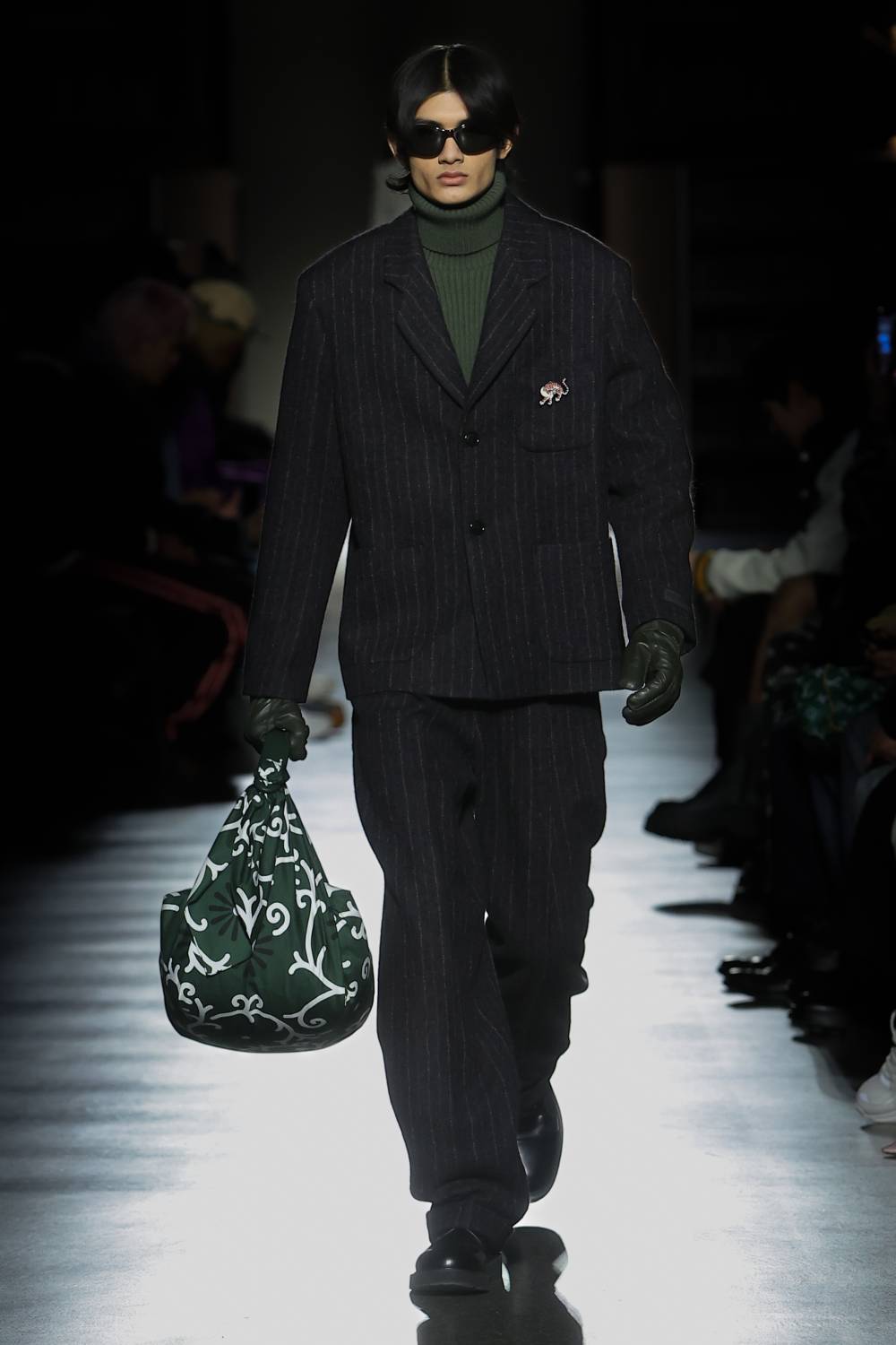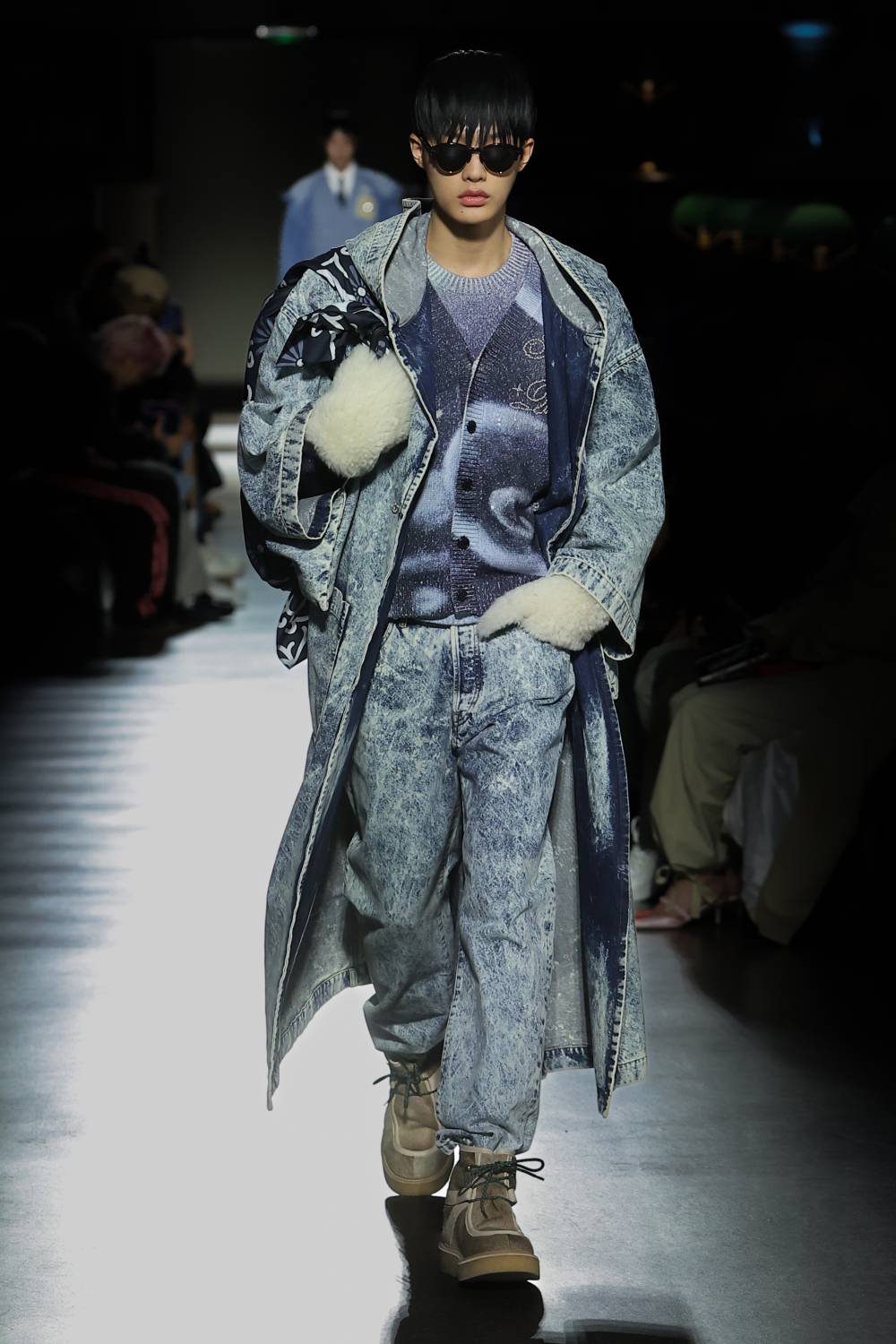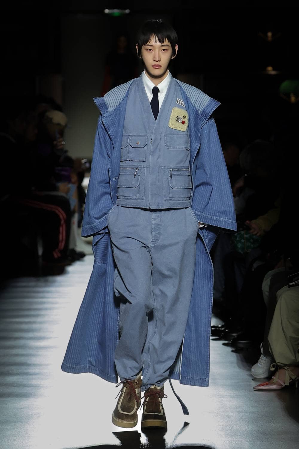 Nigo also paid homage to the Western-meets-Eastern sounds of late musicians Ryuichi Sakamoto and Yukihiro Takahashi (who both died in 2023) of the Japanese electronic band Yellow Magic Orchestra (YMO). The duo adapted ‘gakuran’ school uniforms for the stage; Nigo adapted them for the runway. It was fitting then, that Cornelius – who played with YMO during their final tour – composed the show’s soundtrack. It was a poignant, full-circle moment.