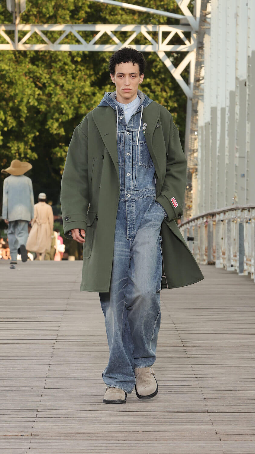 Pivoting between Eastern and Western codes, he reinterpreted Japanese staples such as the judo uwagi and seigaiha – an ancient wave print – which are recontextualised as a chore jacket and an indigo rendition respectively. Japanese graphic artist Verdy even reimagined the Kenzo logo with his signature swashed font.