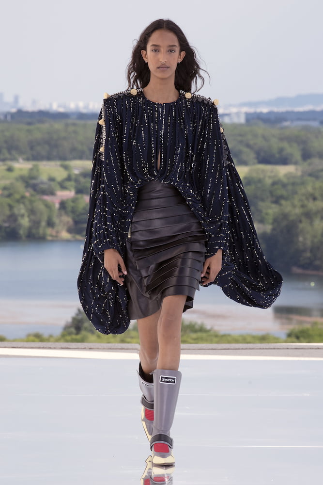 Ghesquière’s fascination with space and time infuses everything he does. He talked of stargates and imaginary portals and described himself as a “ritual futurist”. Inspired by the dawning new age of space tourism, the designer imagined what future space visitors might wear for an interplanetary cruise and the mood was resolutely upbeat. The collection thrilled with joyful colour and jubilant energy.