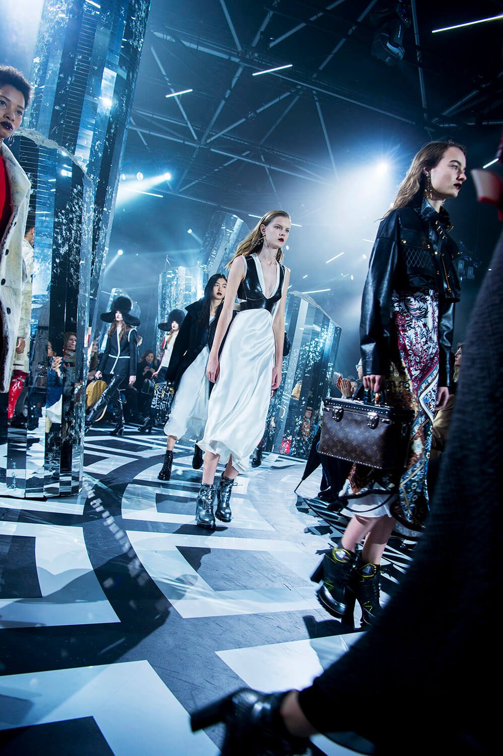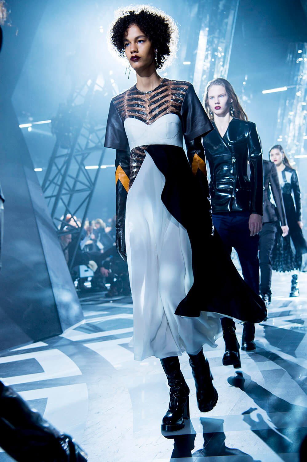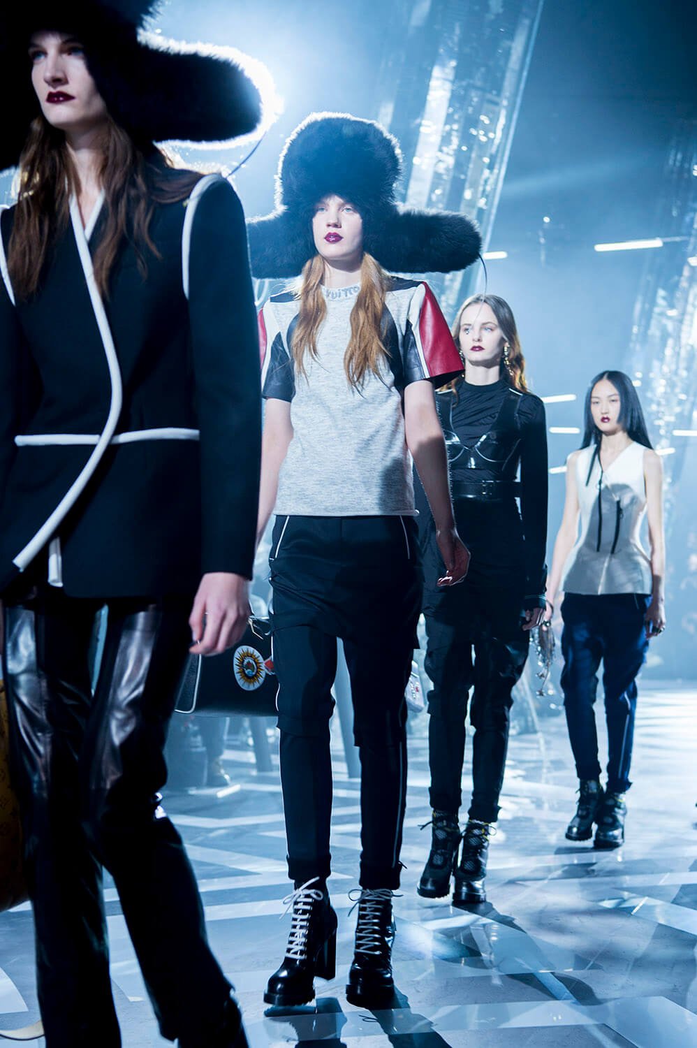 Nicolas Ghesquiere is a futurist, a forward-thinker. That’s what we make our pilgrimage every March and October, to the Foundation Louis Vuitton, to see: the future of fashion. He never disappoints. This season, Ghesquiere re-erected Atlantis (no big deal) inside a series of black tents, while the rains poured torrential outside. The clothes he showed were fit for a modern warrior-cum-explorer, cross-bred with a supermodel obviously, in stomps-soled high heels, bias-cut dresses and scarf-wrapped handbags like precious jewels uncovered from some archeological dig. Or indeed, a delve several thousand leagues under the water. We loved the multicoloured Louie Louie scarf print dresses, the staple details, the kinky long leather gloves with pieced in colours like motocross leathers. In fact, we sort of loved everything.