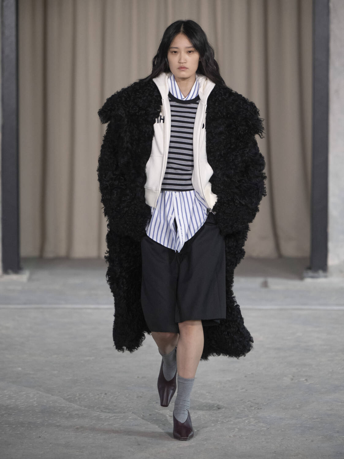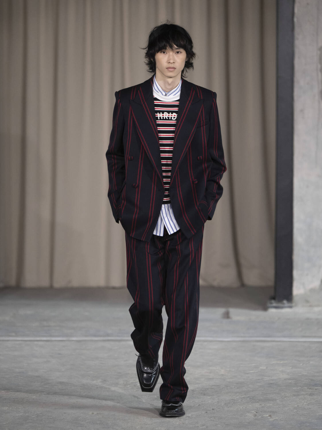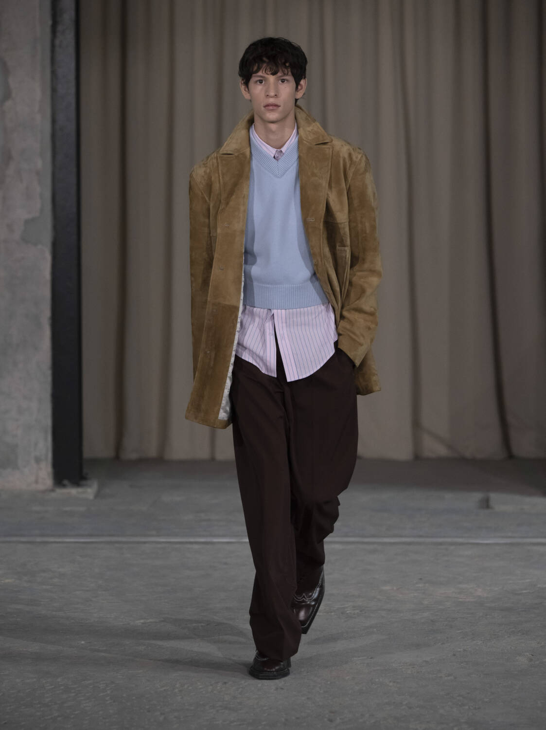 Fletcher twisted British dress codes into something bold and new. Playing with certain storied elements of the wardrobe, he breathed new life into garments, offering a more contemporary reinterpretation. Contexts are reconfigured and layering was an act that was less about pairing, more about juxtaposition.