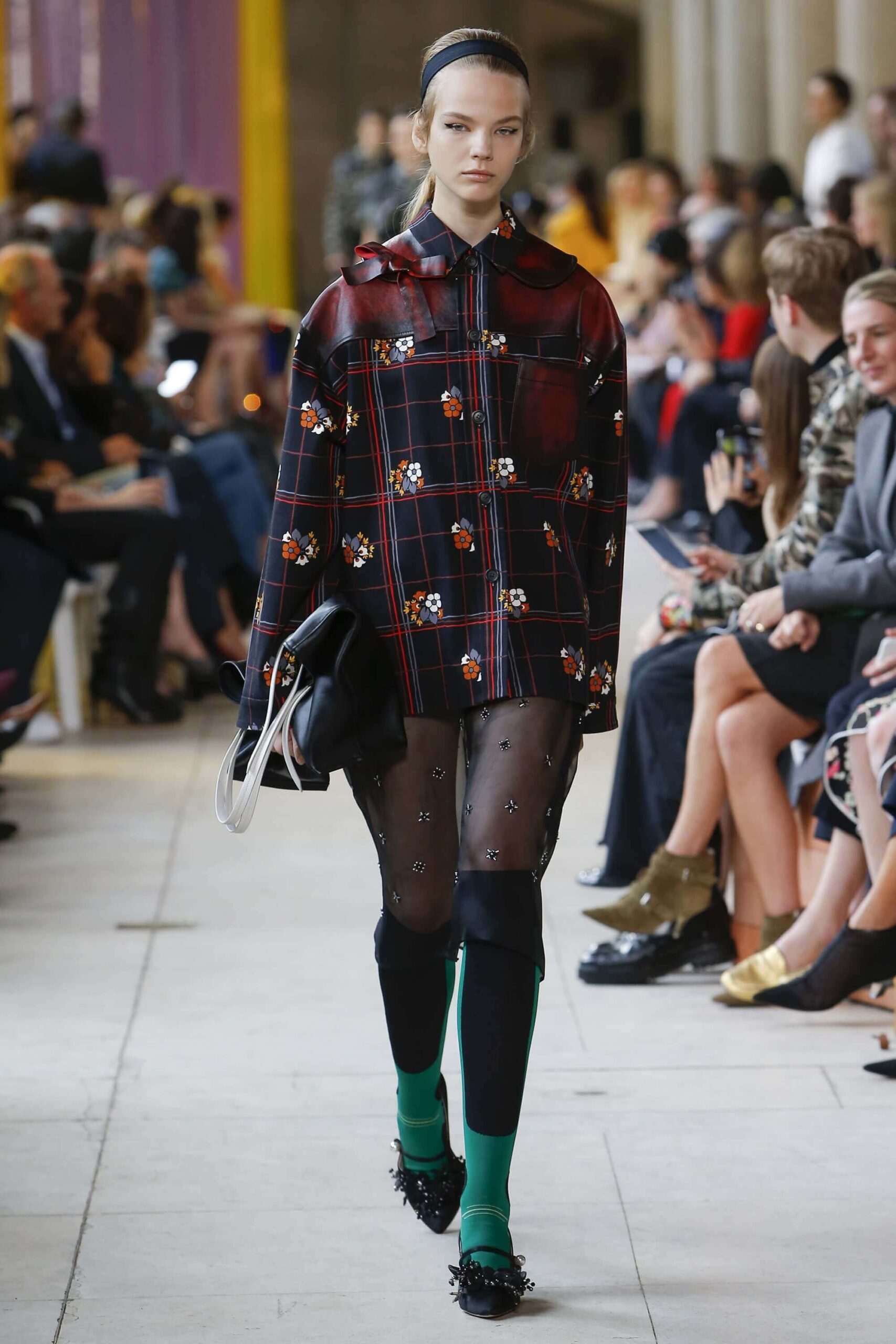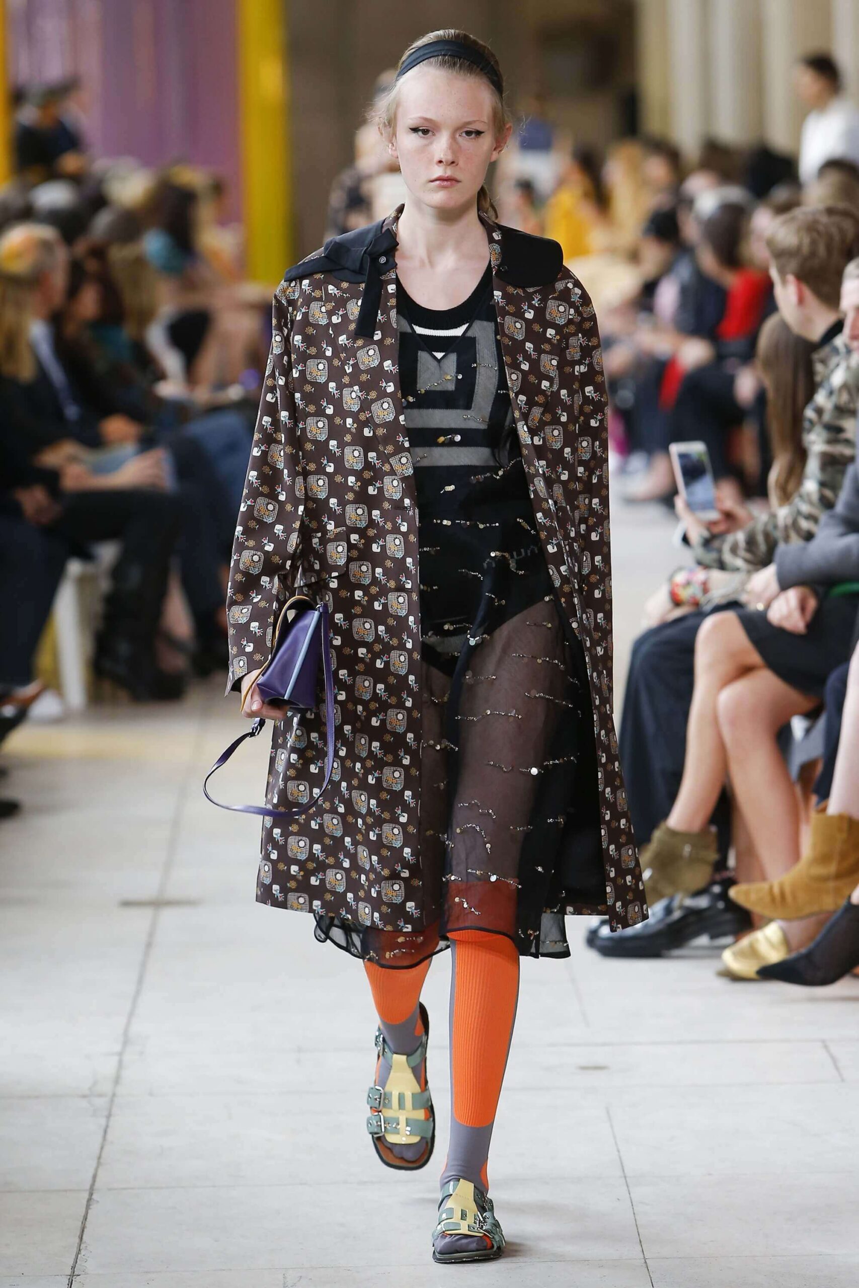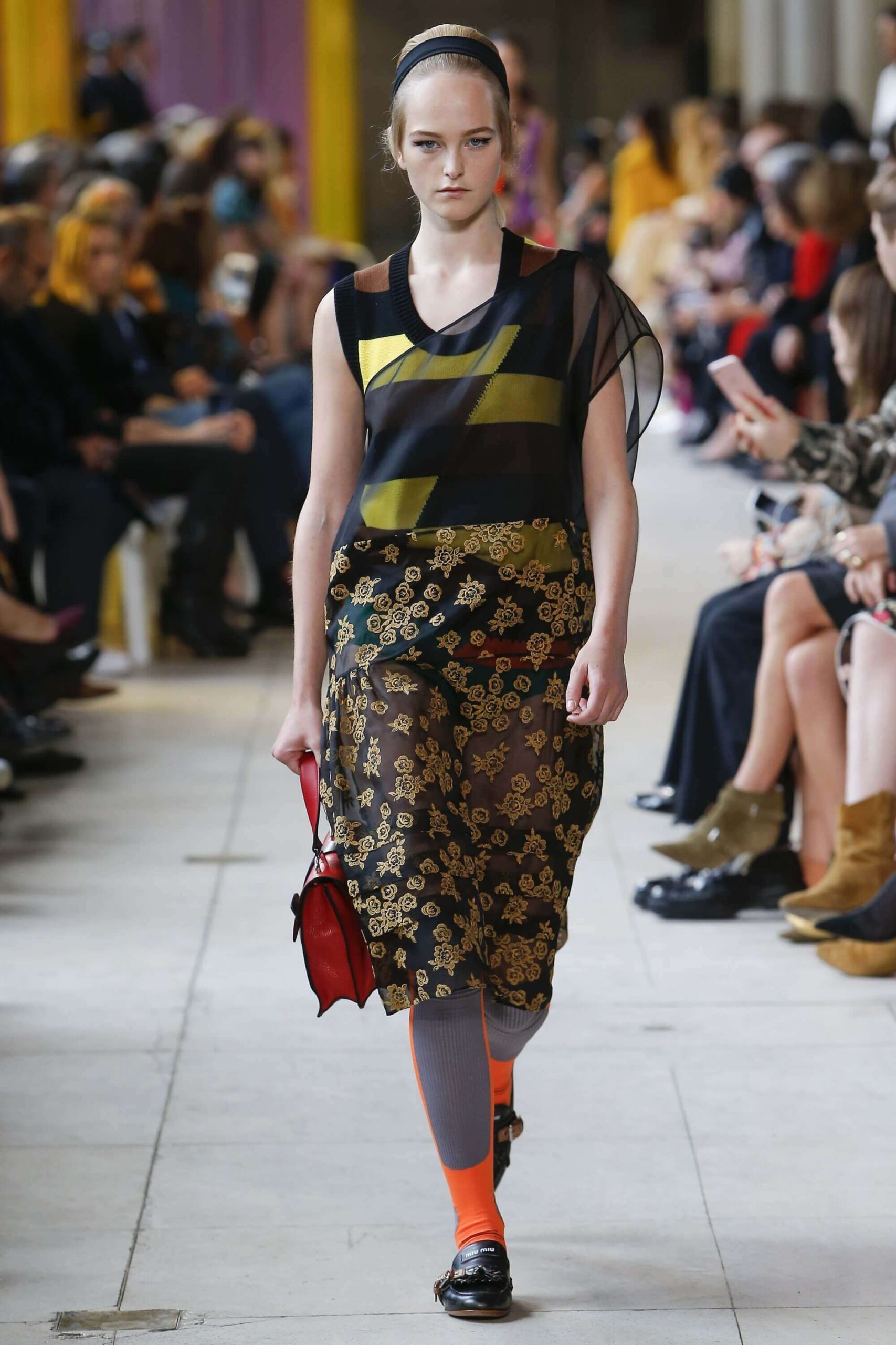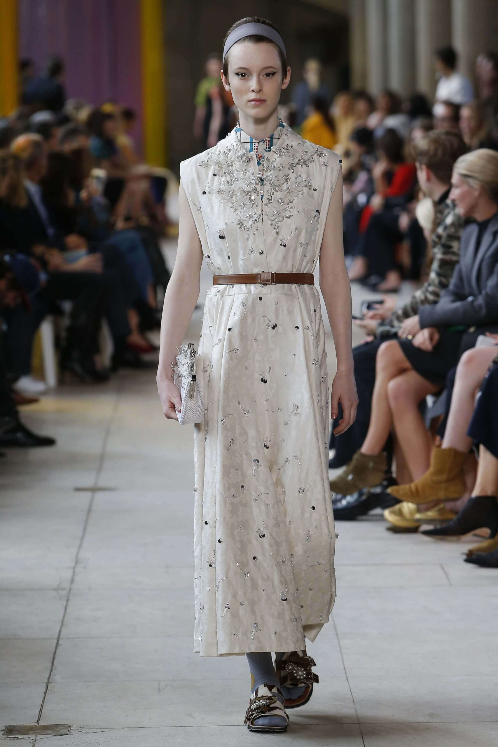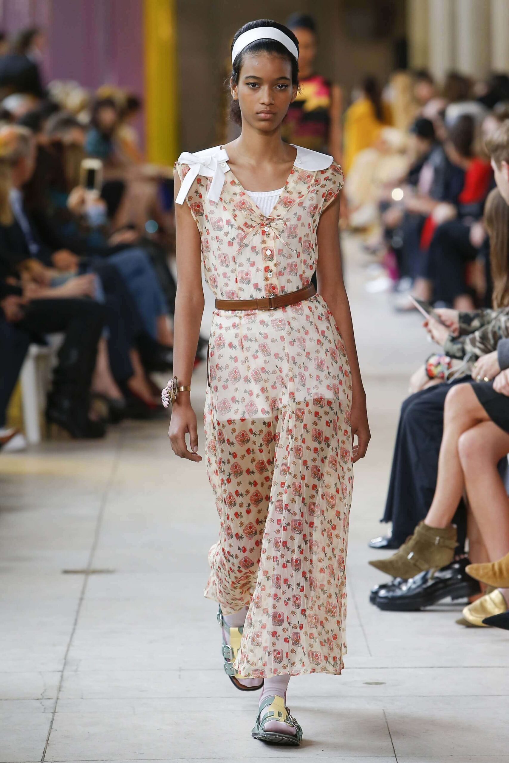 Her best friend was waiting for her in her brother’s grey trousers and school blazer – she was the coolest girl in Miu Miu’s gang. And then that girl they didn’t really like but she passed for 21 and could buy them beers came bearing Buds in a granny’s sofa print house coat, brown tights, three-strap buckle open toe flats sandals and an Alice band hair do number. All smart, all savvy, all dressed to the nines. If things got cold Miu Miu would pull on her boyfriend the biker’s sleeveless leather gilet. He’s sooooo hot! Now where’s that bottle of Bud?