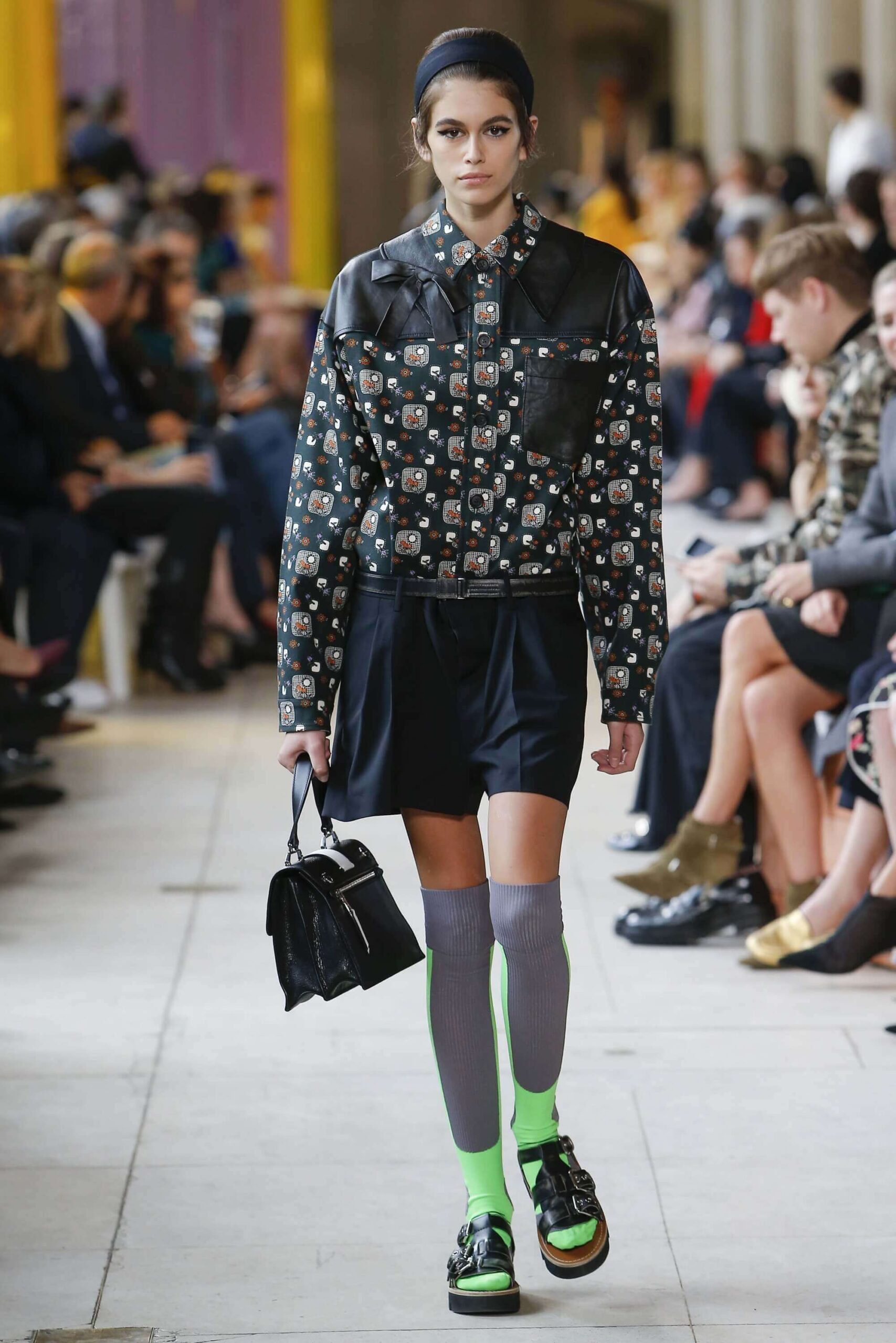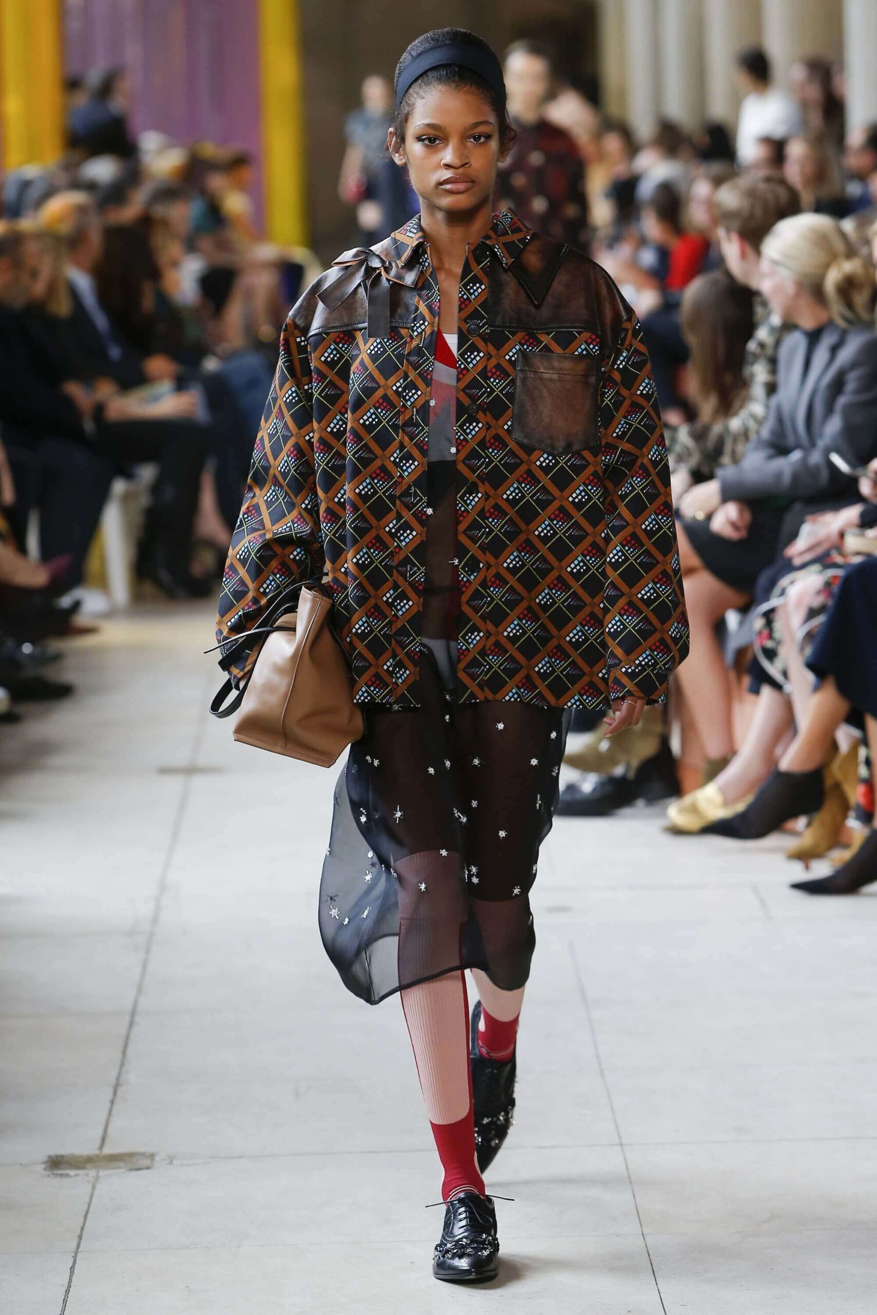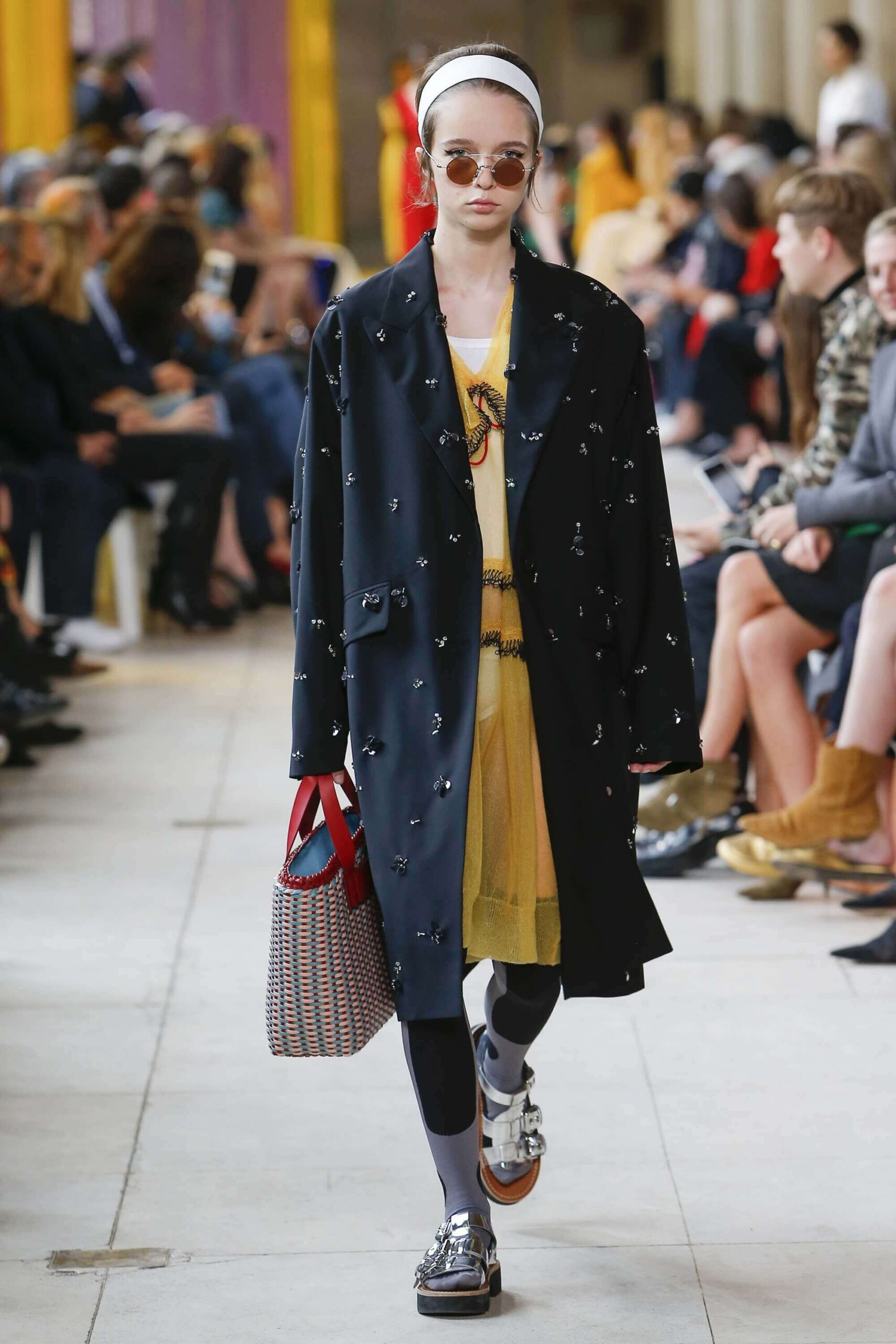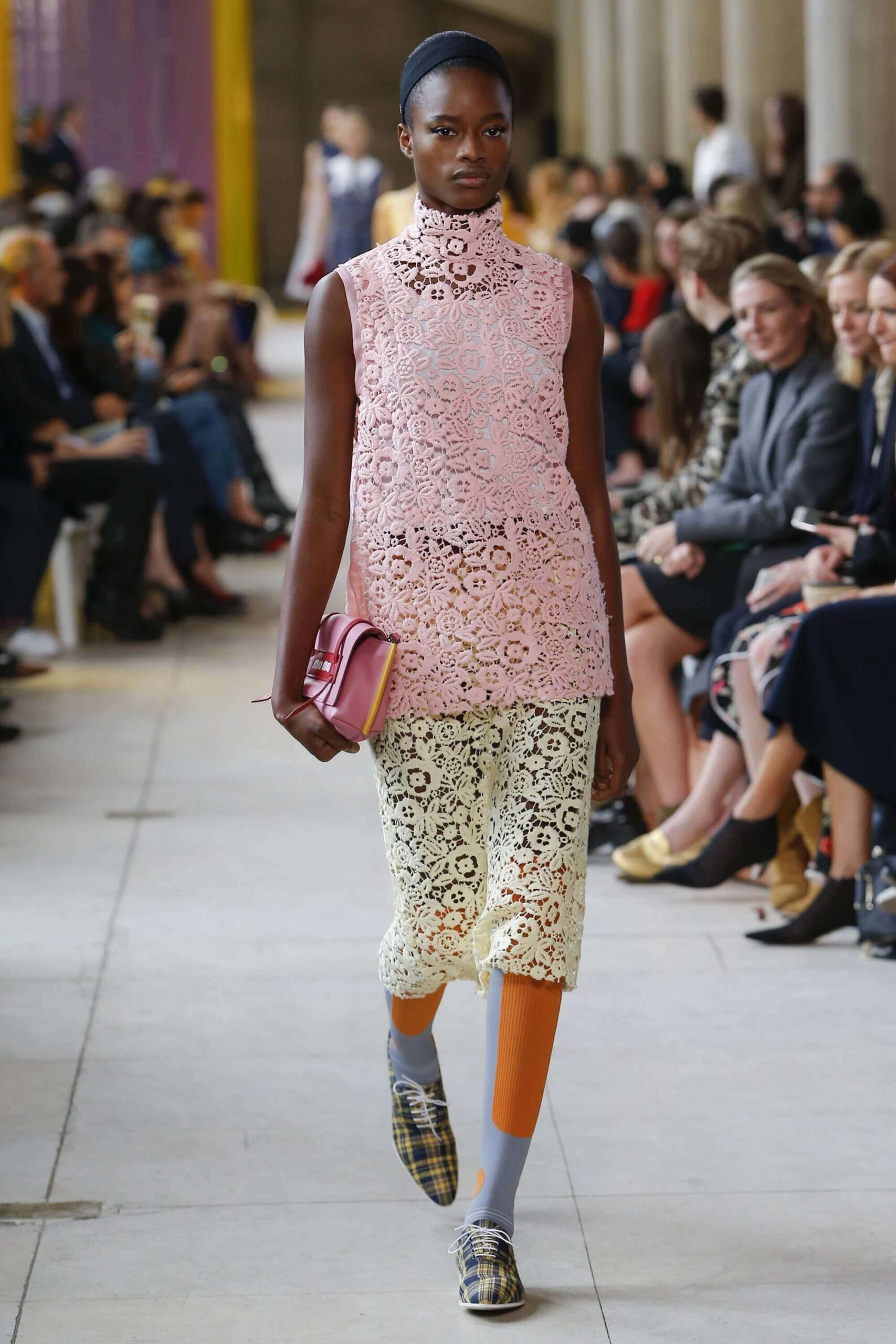 Her best friend was waiting for her in her brother’s grey trousers and school blazer – she was the coolest girl in Miu Miu’s gang. And then that girl they didn’t really like but she passed for 21 and could buy them beers came bearing Buds in a granny’s sofa print house coat, brown tights, three-strap buckle open toe flats sandals and an Alice band hair do number. All smart, all savvy, all dressed to the nines. If things got cold Miu Miu would pull on her boyfriend the biker’s sleeveless leather gilet. He’s sooooo hot! Now where’s that bottle of Bud?